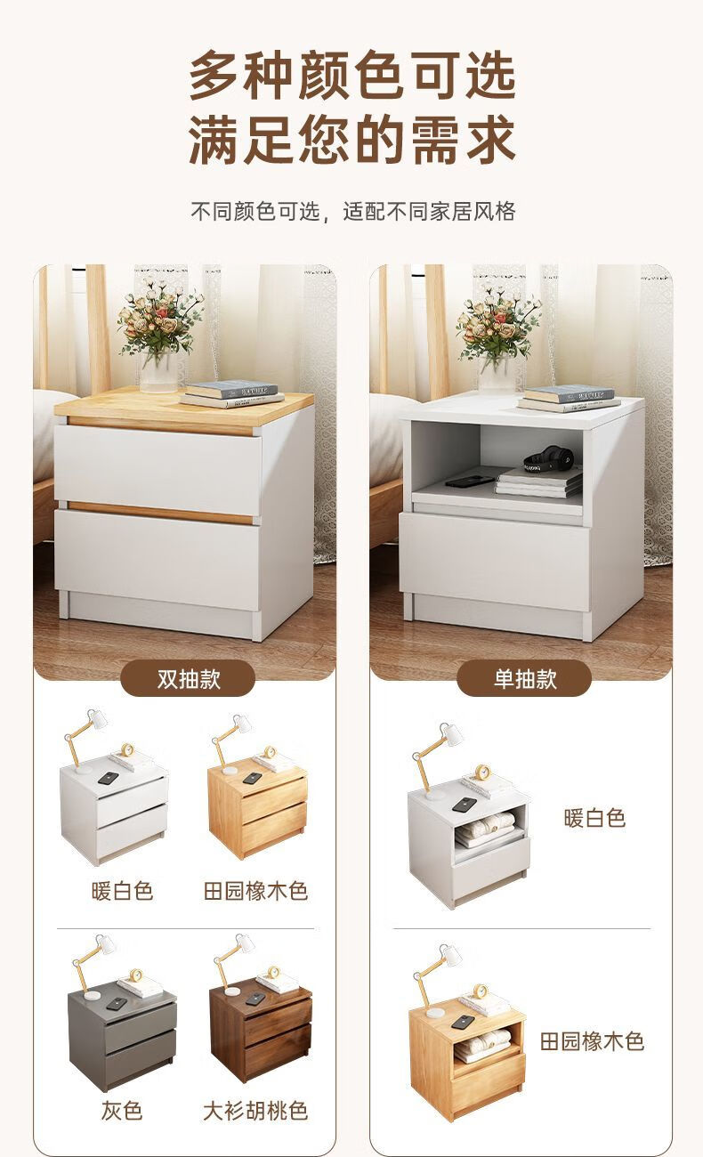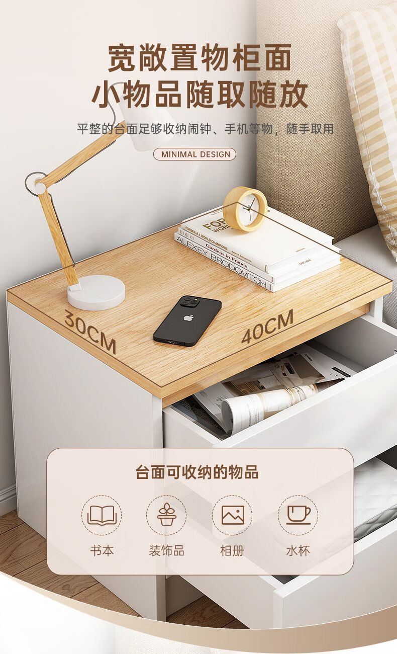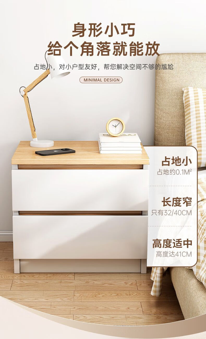 Yilande simple bedside table bedroom modern simple storage bedside table small apartment storage cupboard bedside table 40cm wide A double drawer 40*41*45cm black base-A