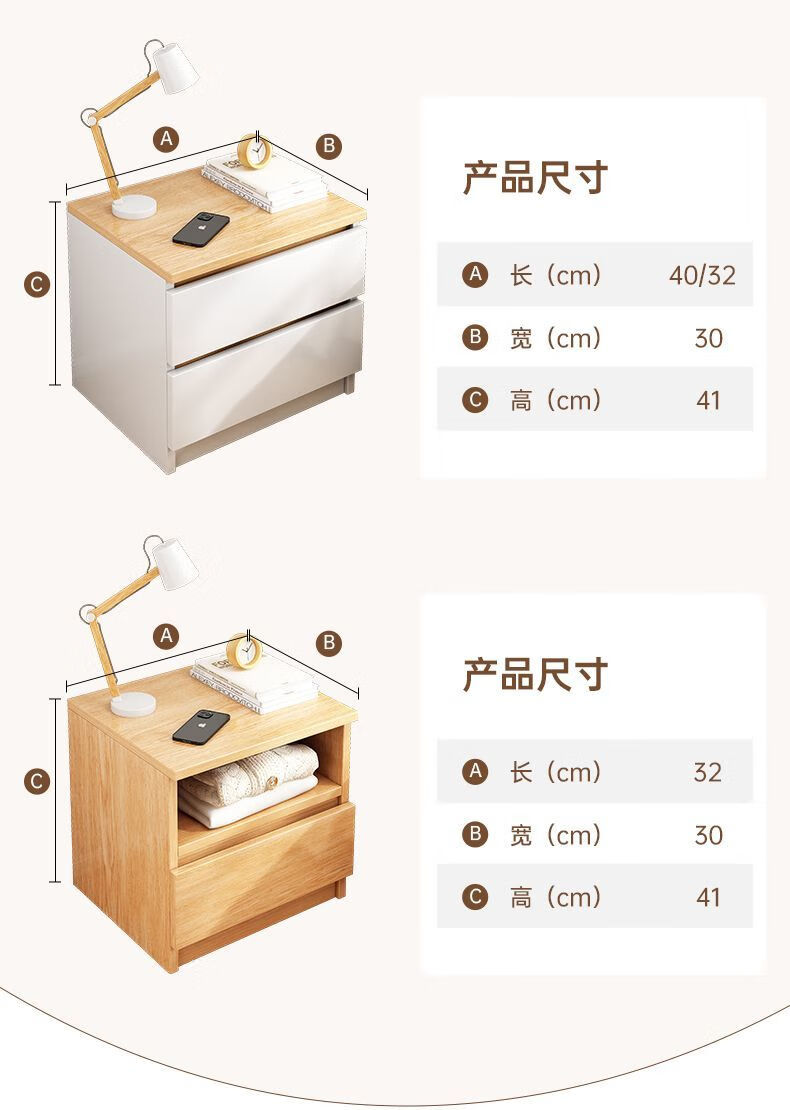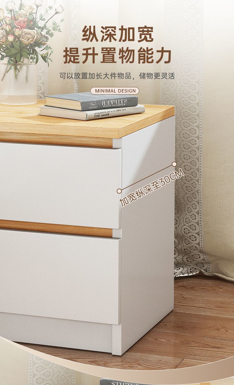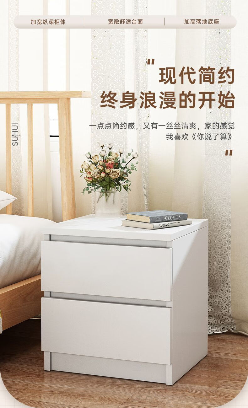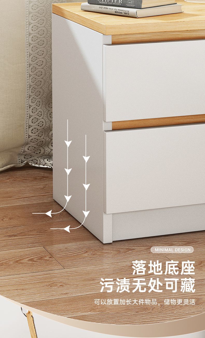 Yilande simple bedside table bedroom modern simple storage bedside table small apartment storage cupboard bedside table 40cm wide A double drawer 40*41*45cm black base-A