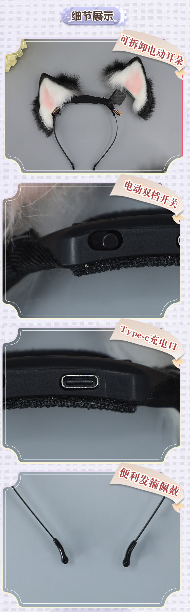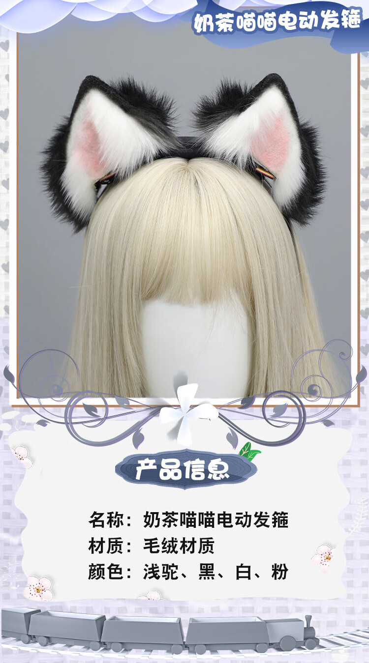 MOYAN Rechargeable Simulated Animal Ear Headwear Props Removable Headband Movable Cat Ear Hair Accessories Electric Cat Ear Hairband Electric Milk Tea Meow Meow Earmuffs - Black B06-202 (motor not included)