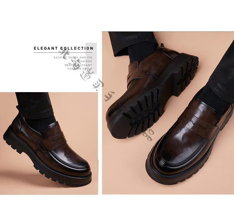 SUSTYLE luxury high-end brand high-end men's cowhide business commuting casual formal leather shoes one-leg soft-soled comfortable shoes brown 38