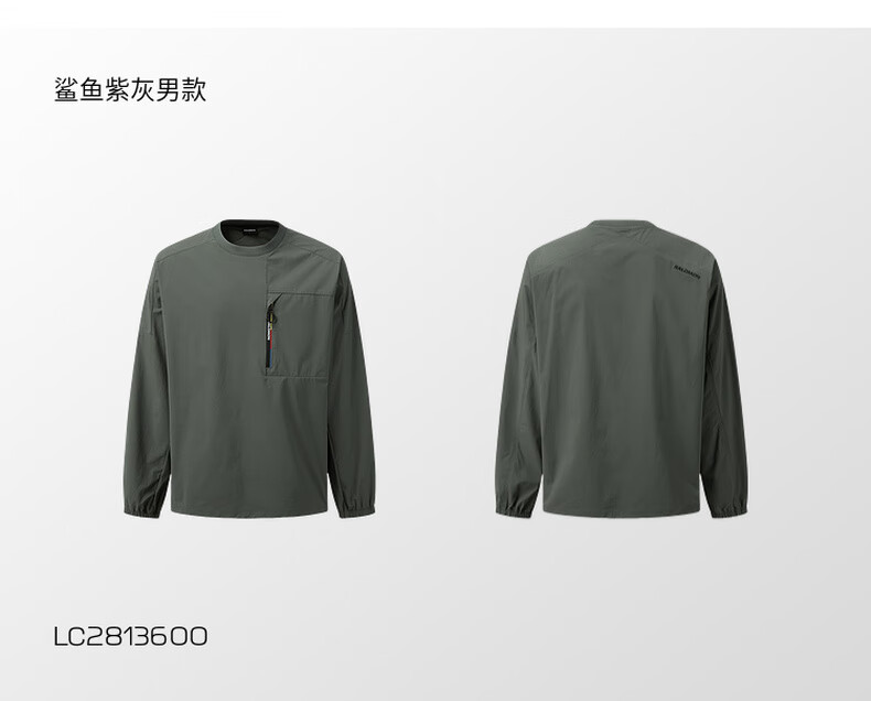 Salomon Men's Outdoor Sports Trendy Casual Urban Fashion Sweater BLAST WOVEN LS PKT TEE Shark Purple Gray C28136 2XL