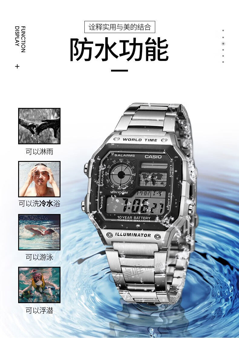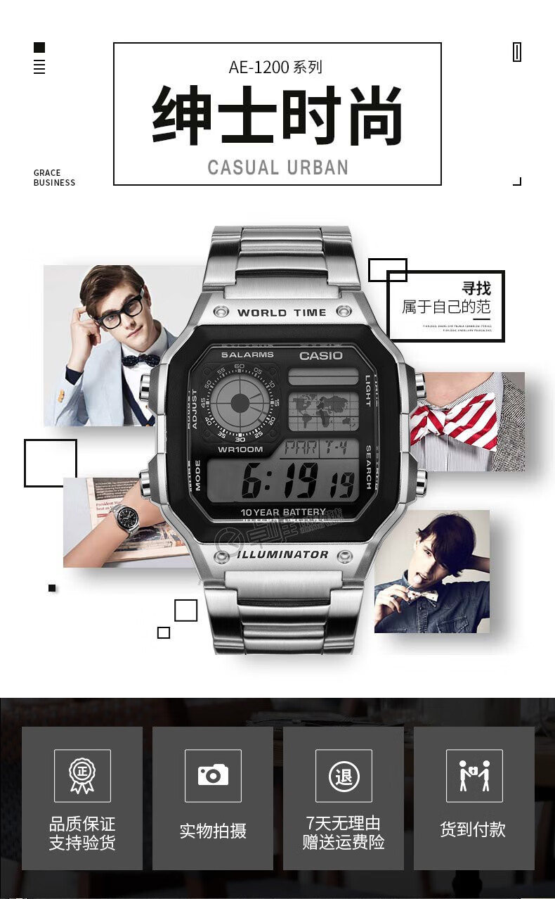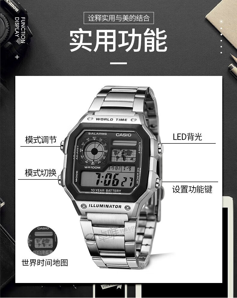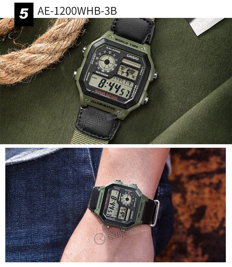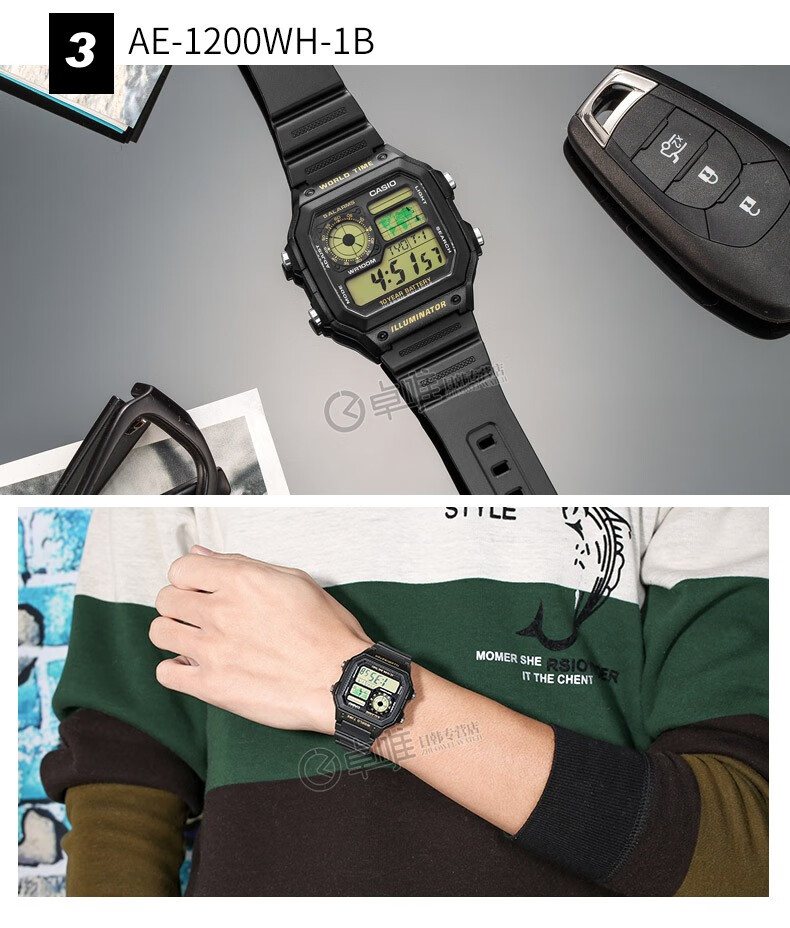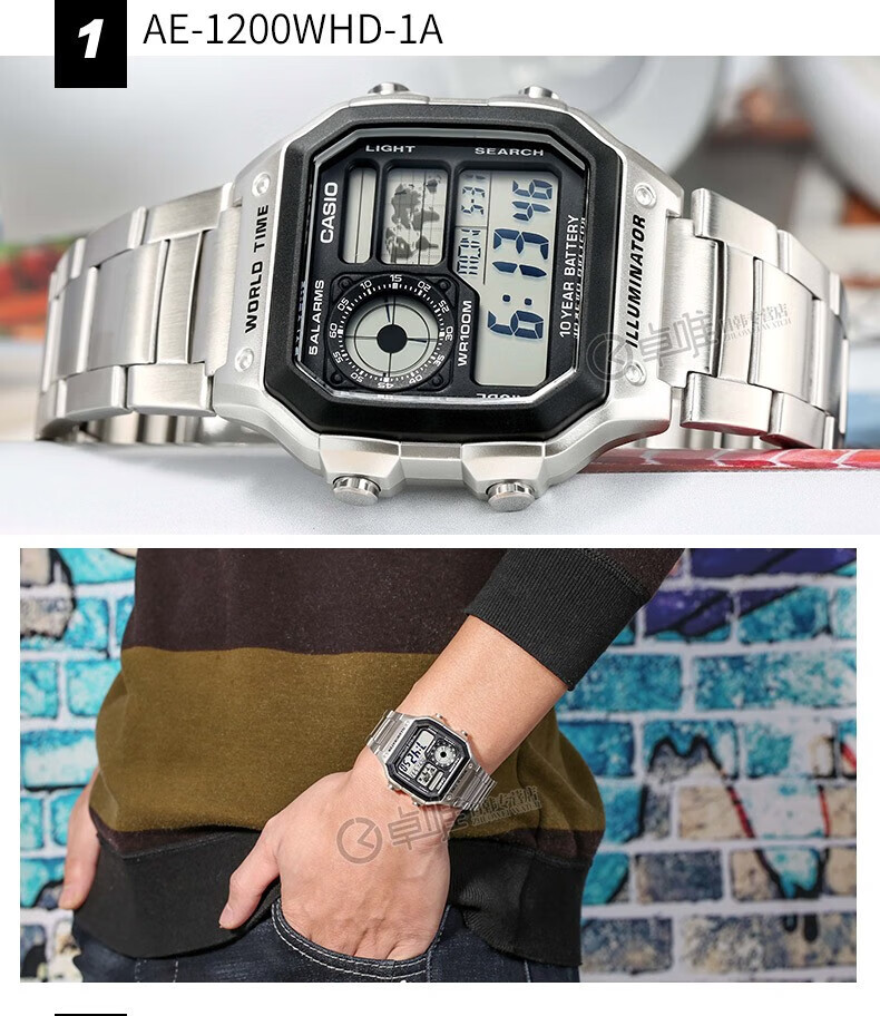 Casio (CASIO) Casio small square watch (CASIO) electronic watch small square men's Anxin Kuangbiao same style student sports watch AE-1200WH-1AV