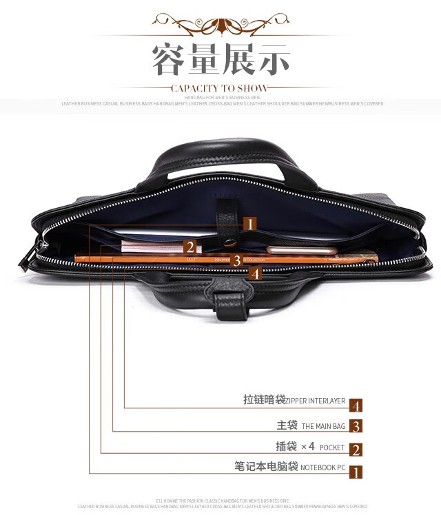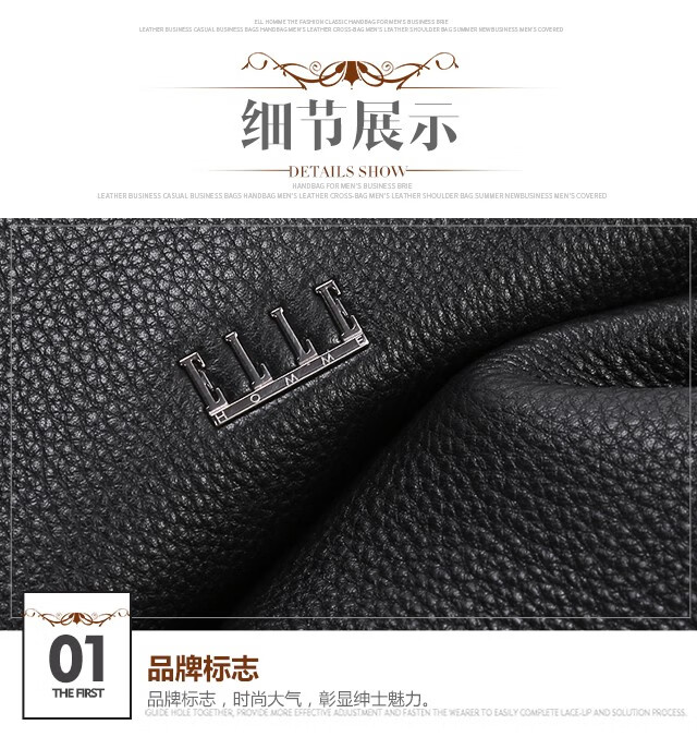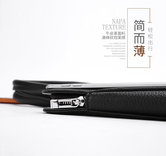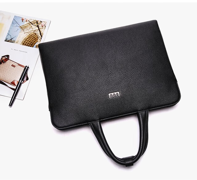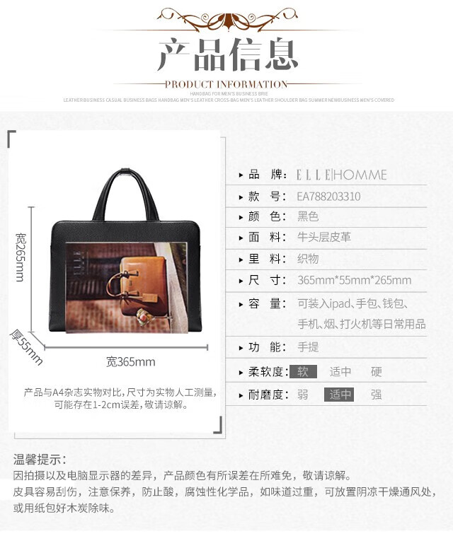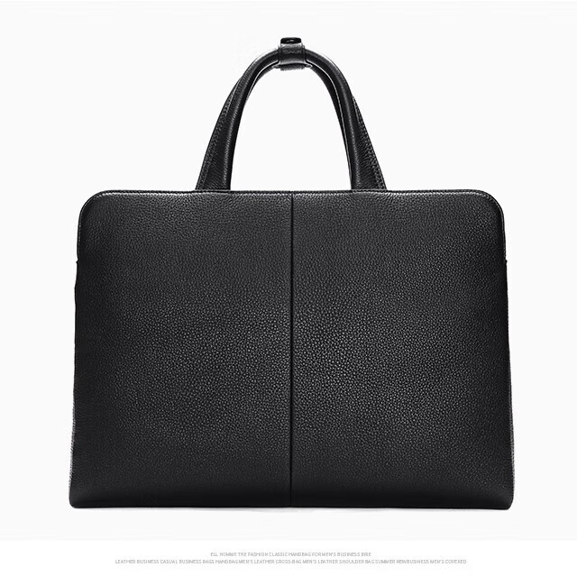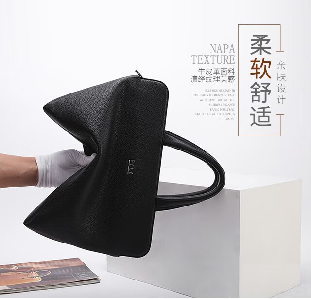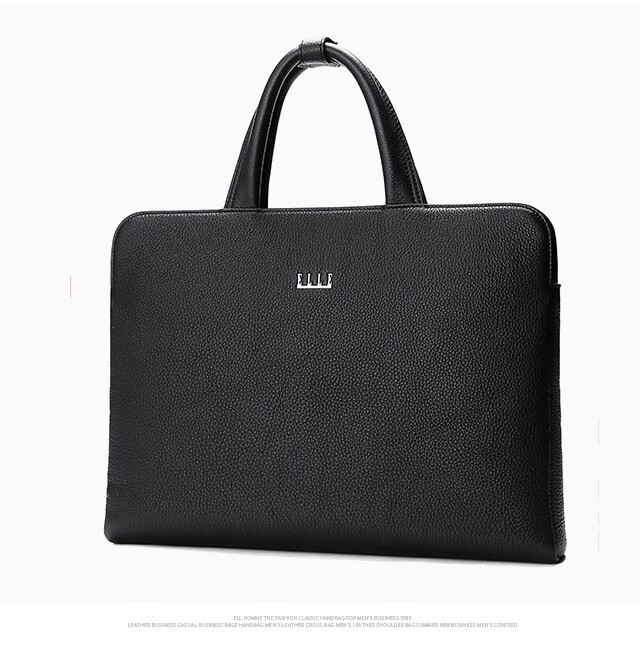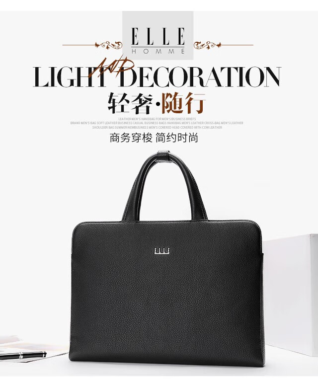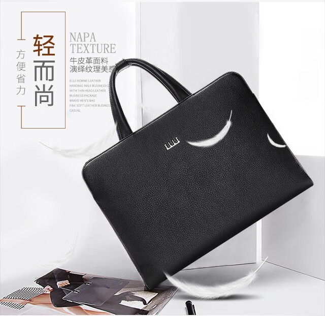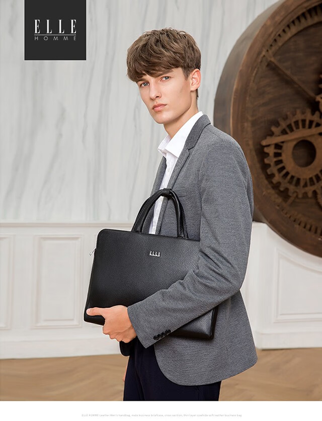 ELLE HOMME men's bag handbag horizontal style business briefcase first layer cowhide men's bag birthday Valentine's Day gift for boyfriend black EA788203310 medium bag 12 inches