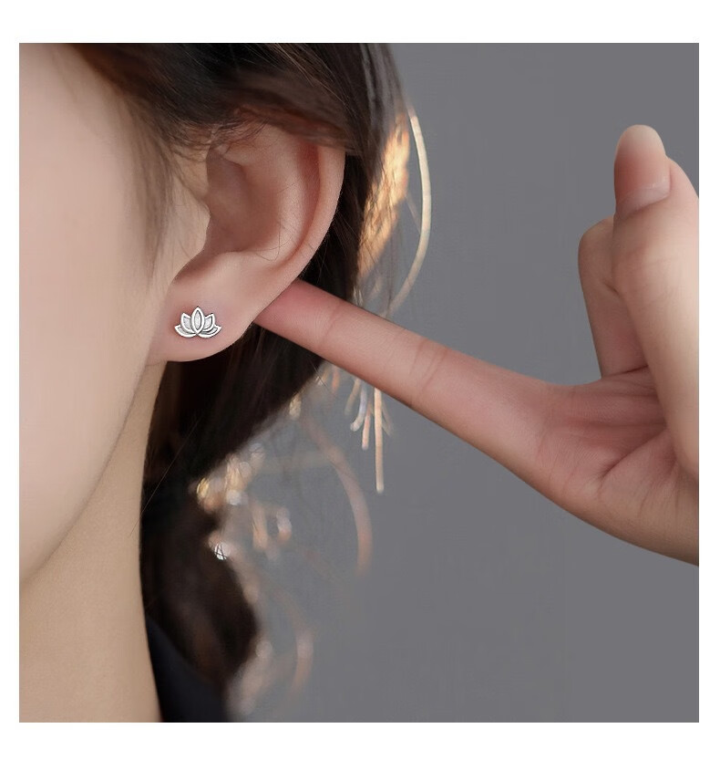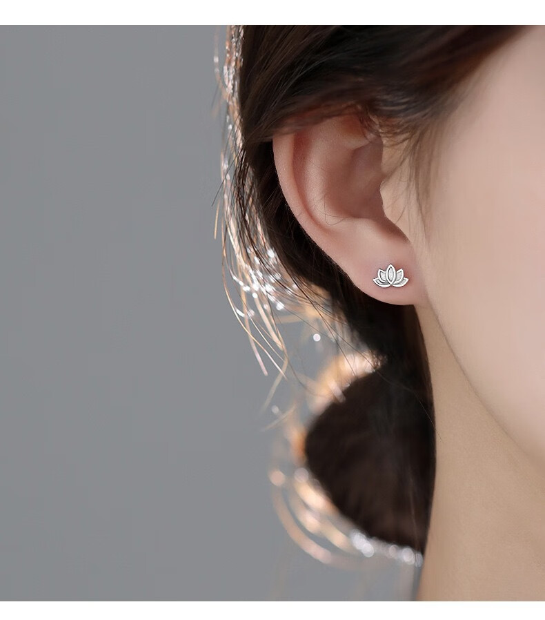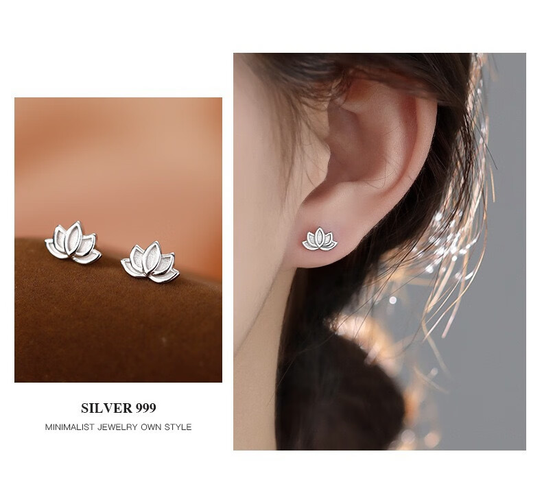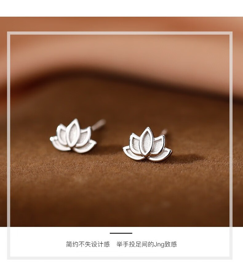 Jiuweiya S999 Pure Silver Earrings Women's Lotus Earrings High-end National Trendy Design Lotus Earrings for Ear Hole Earrings S999 Pure Silver Lotus Earrings Gift Box
