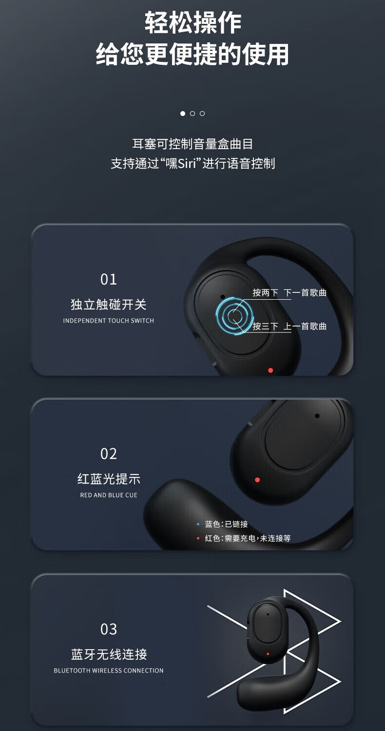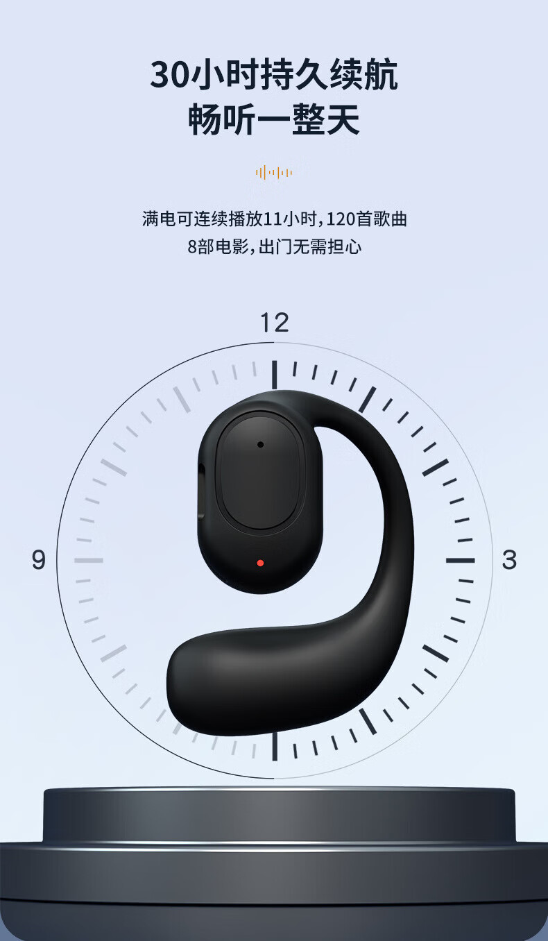 Hemuzhou one-point purchase car Bluetooth headset wireless ear-mounted air conduction running sports touch call super long standby black call number + super long battery life