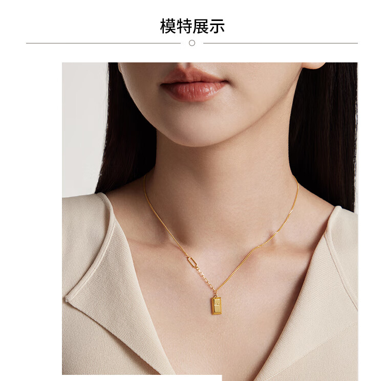Chow Tai Fook Rich Small Gold Bar Necklace Women's Pendant Gold Set Chain (labor cost 880) F226470 40cm pure gold about 7.40g