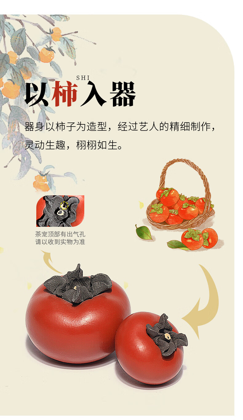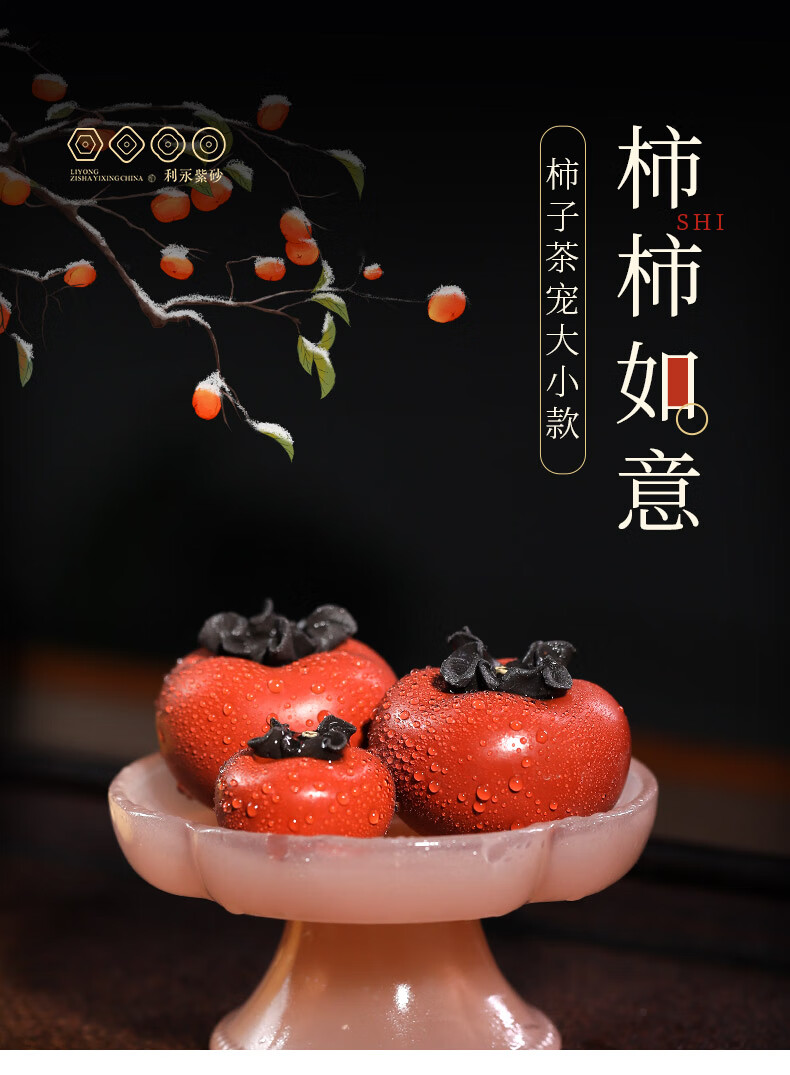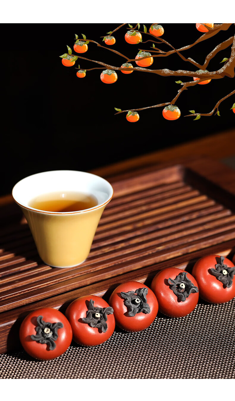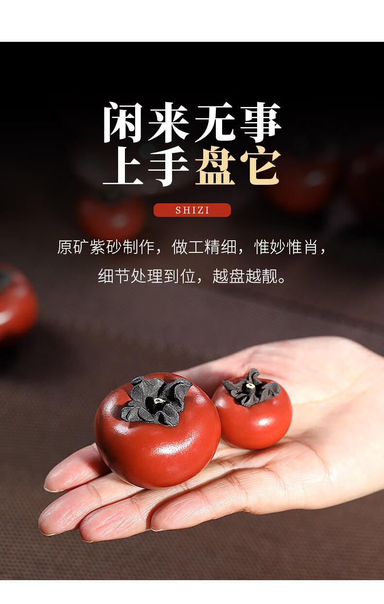 Centenary Liyong Yixing handmade purple clay tea pet ornaments raw ore section mud powder slurry persimmon tea play sculpture Kung Fu tea set accessories a pair of persimmons (1 large 1 small)