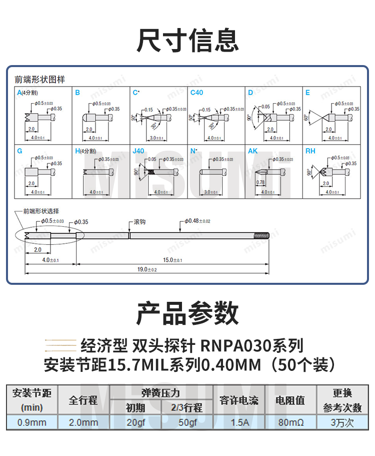 Economical MISUMI probe NP20 series (pack of 50) MISUMI C-NP20-AK (pack of 50)
