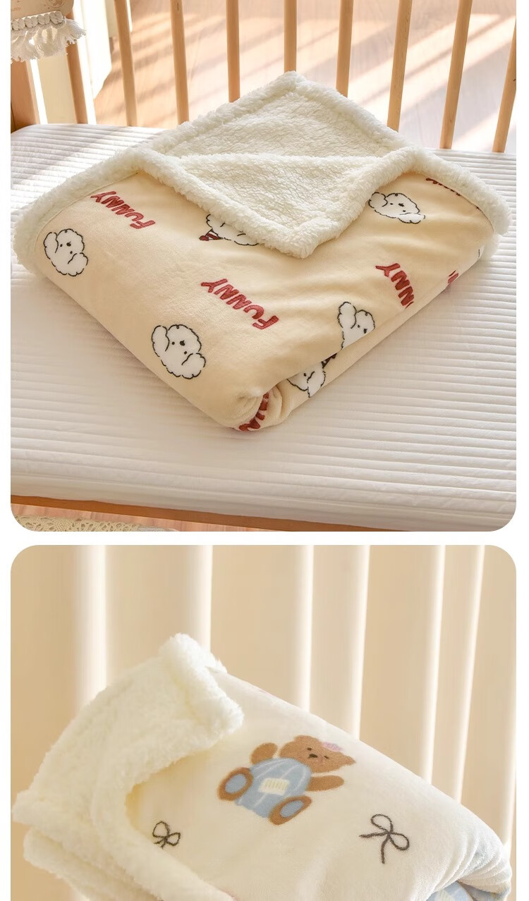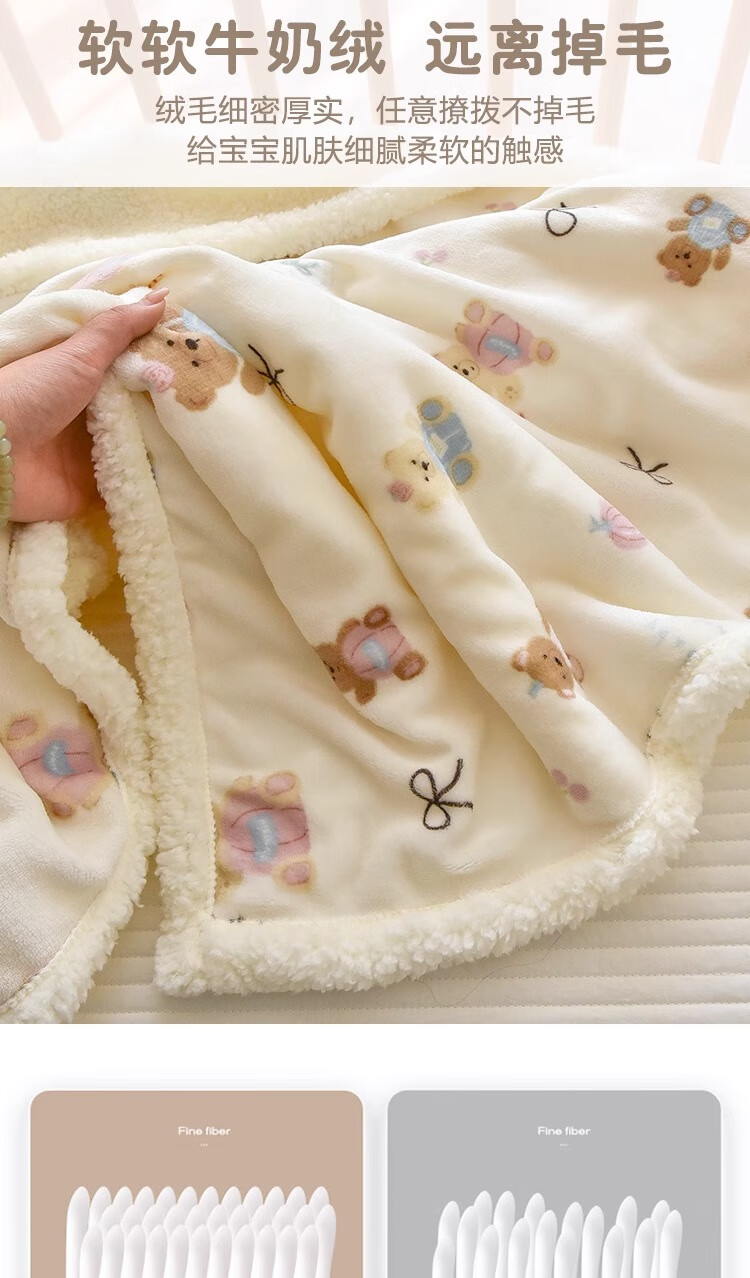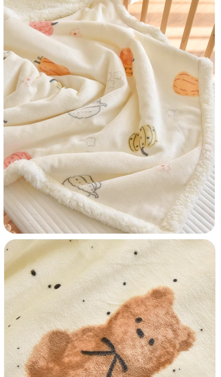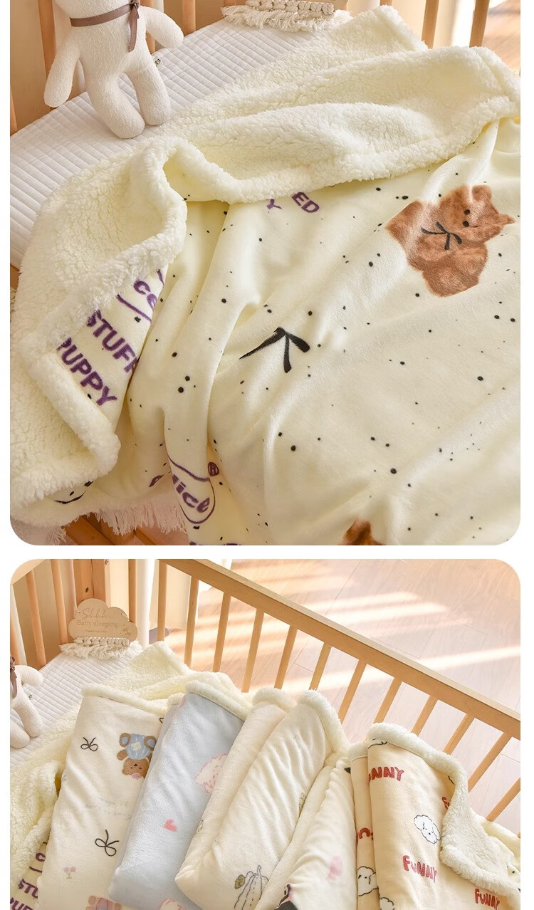 Ershan Jibaby Lamb Velvet Throw Newborn Baby All Seasons Milk Velvet Blanket Kindergarten Children's Quilt Nap Blanket Cherry Bear Milk Velvet Small Quilt 70*100cm