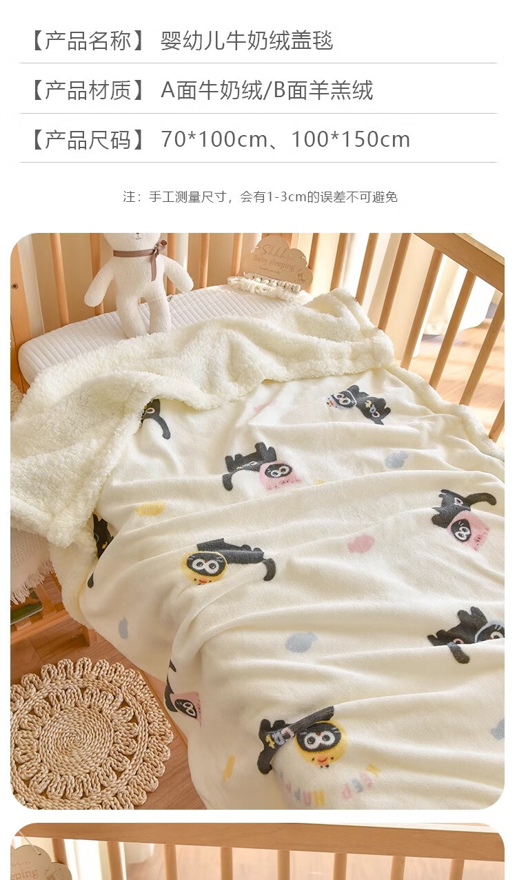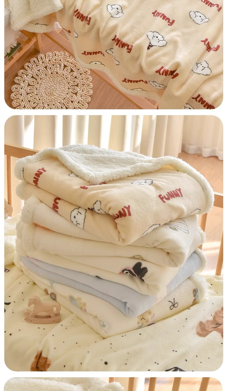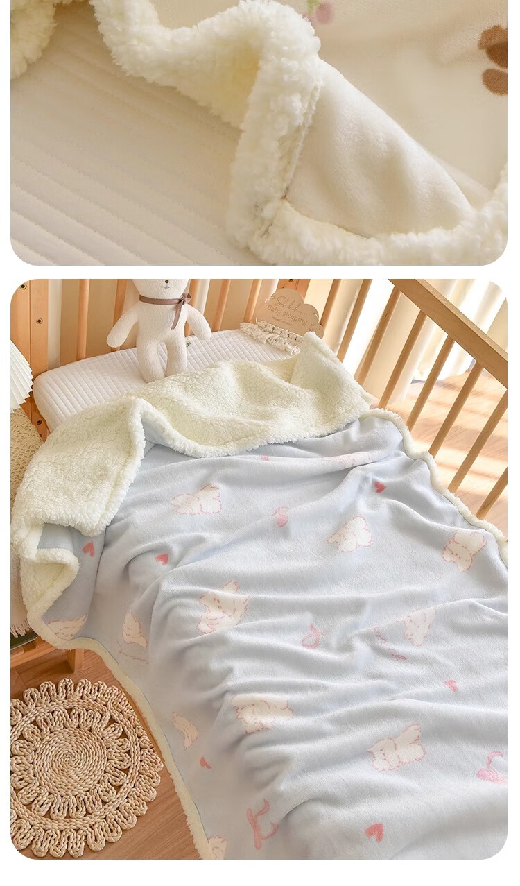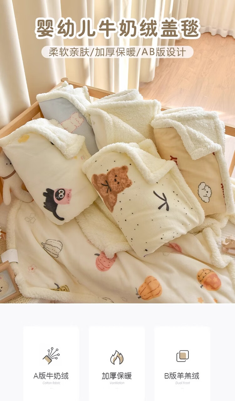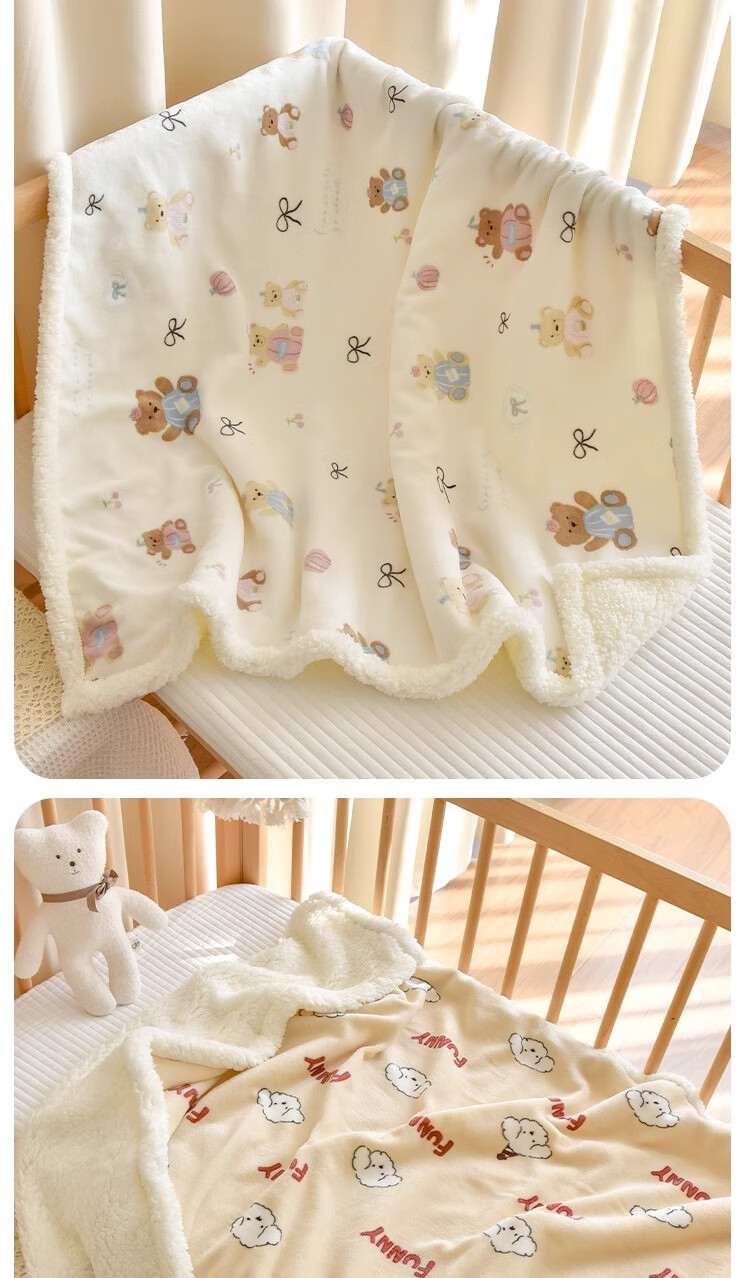 Ershan Jibaby Lamb Velvet Throw Newborn Baby All Seasons Milk Velvet Blanket Kindergarten Children's Quilt Nap Blanket Cherry Bear Milk Velvet Small Quilt 70*100cm