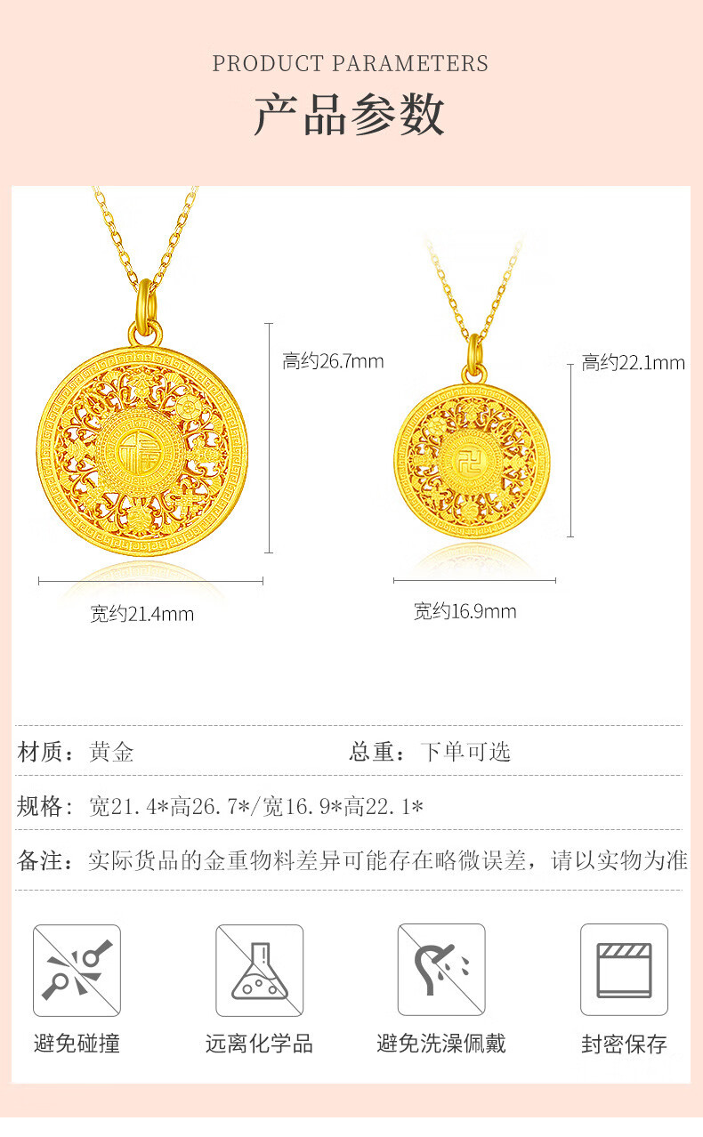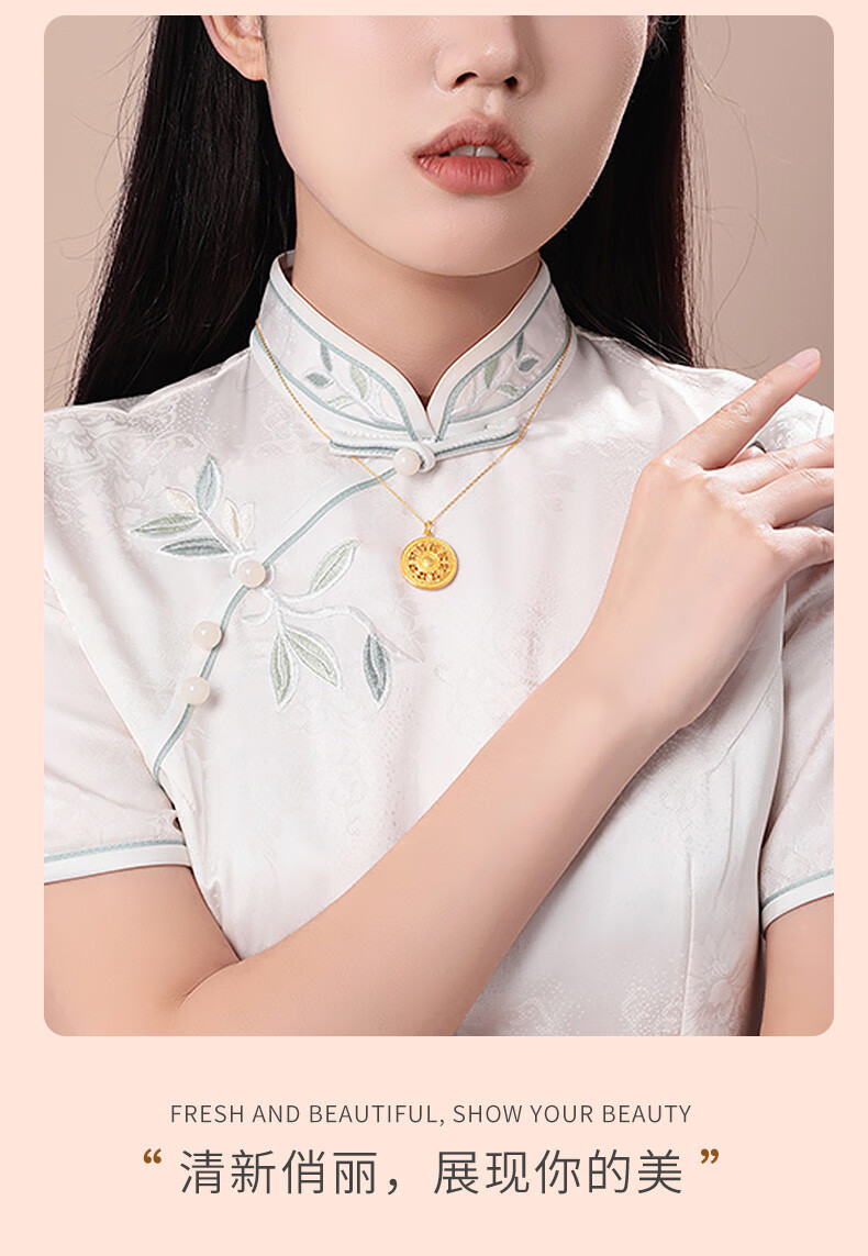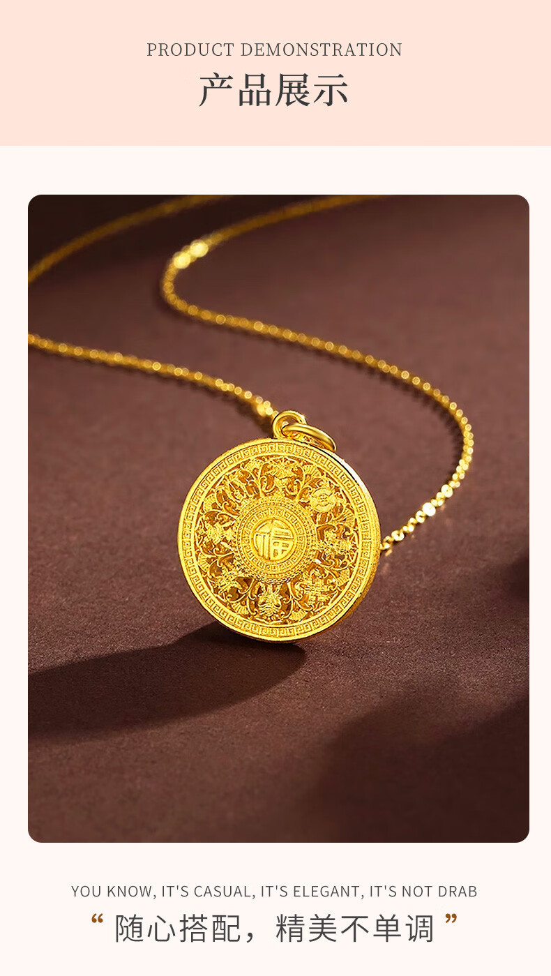 Shiyi Gold Pendant Eight Treasures of Good Luck Pendant Pure Gold 999 Eight Treasures Compass 5D Hard Gold Pendant for Mom 1g, Small Eight Treasures of Good Luck Pendant - More Gold Refunds