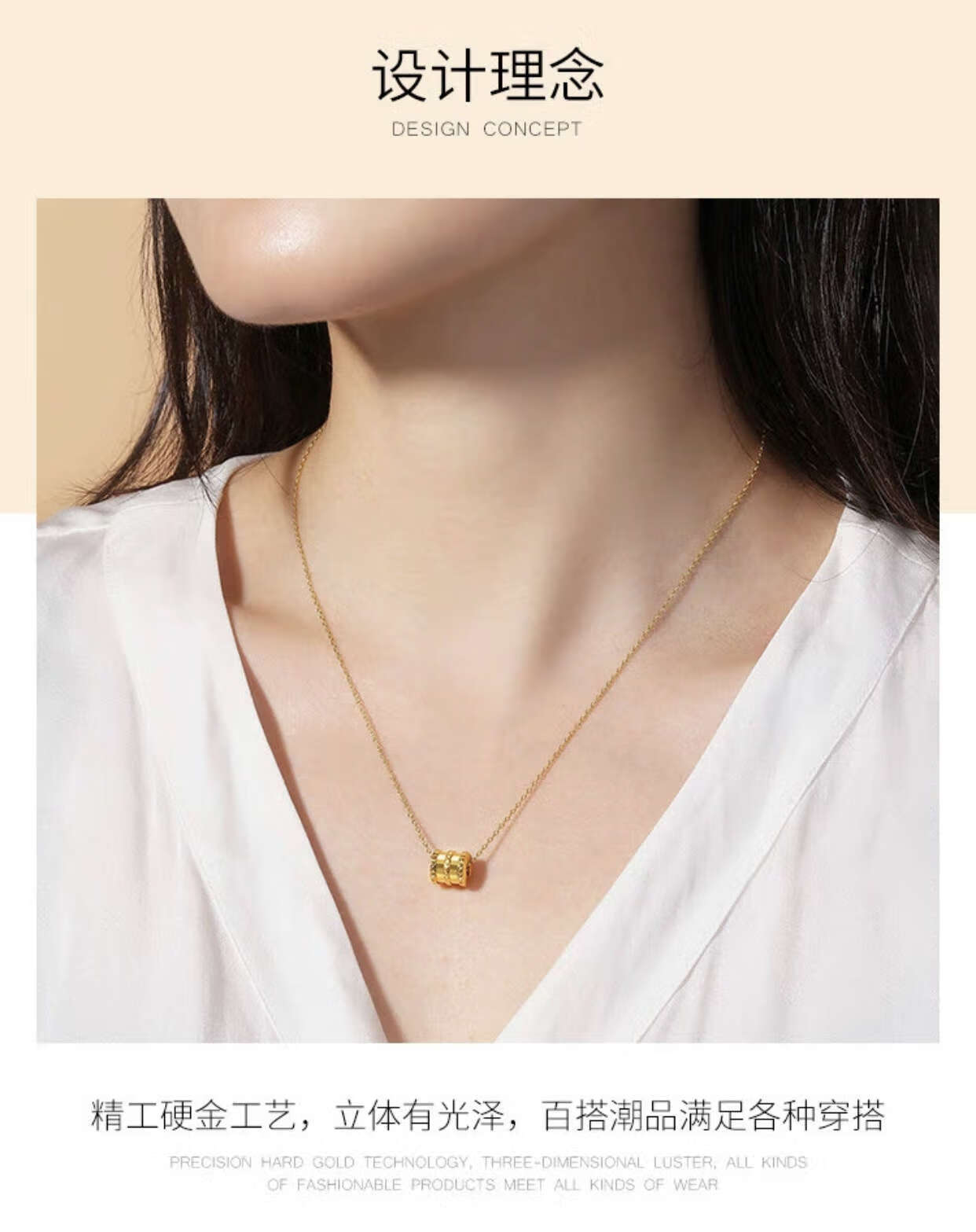 Shiyi Gold Necklace Women's Small Waist 999 Pure Gold Pendant Transfer Beads Clavicle Chain Plain Chain Pure 18K Jewelry Gold K Pendant + 18k Necklace