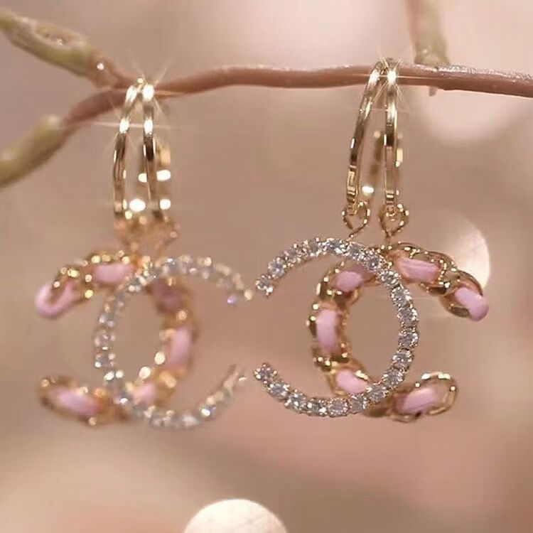 Mengke earrings Xiaoxiangfeng 2025 early spring new double C diamond earrings niche light luxury style fashion earrings gift pink-double C