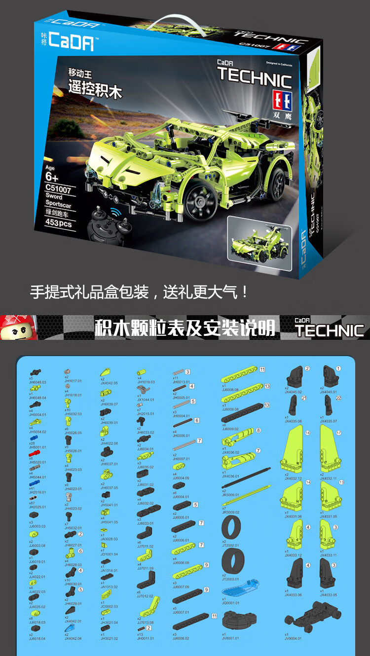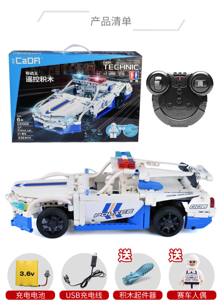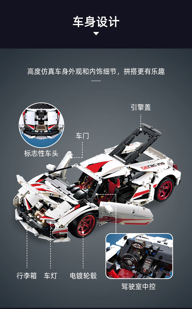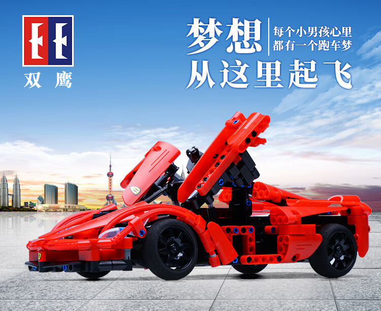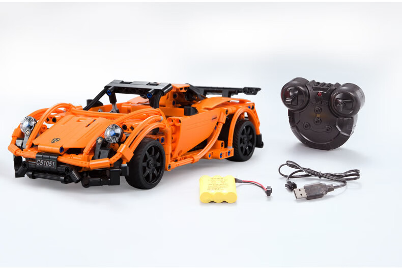 Double Eagle Double Eagle electric remote control car building blocks small particle sports car assembly model children's puzzle Qi C61018 (box) model version sports car