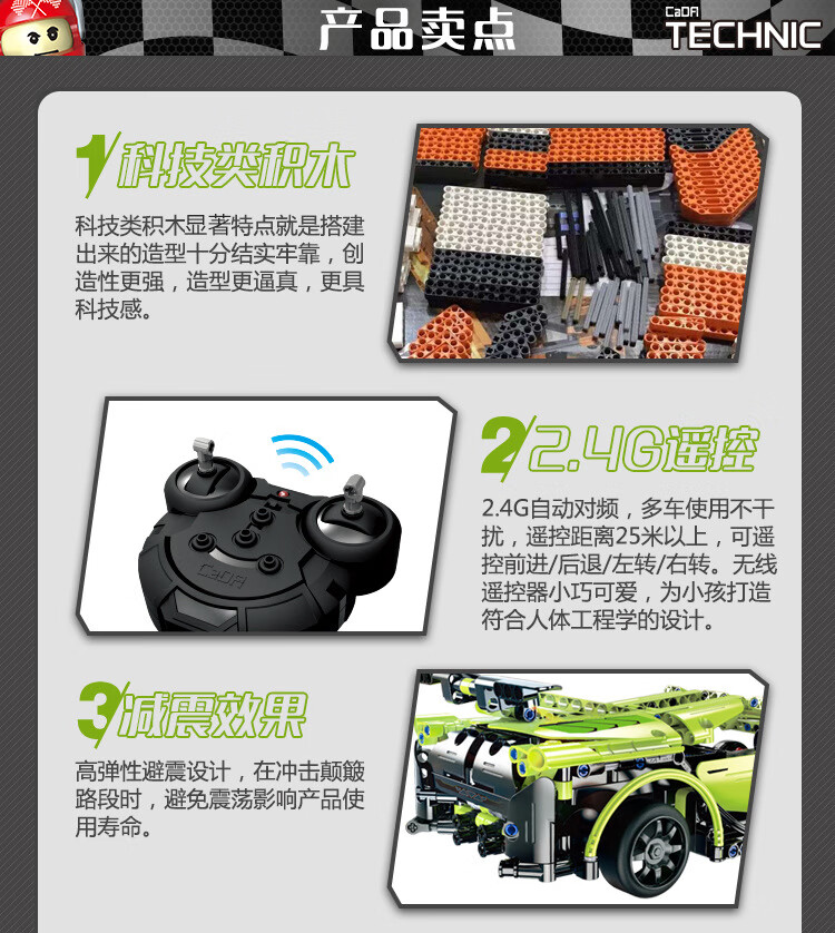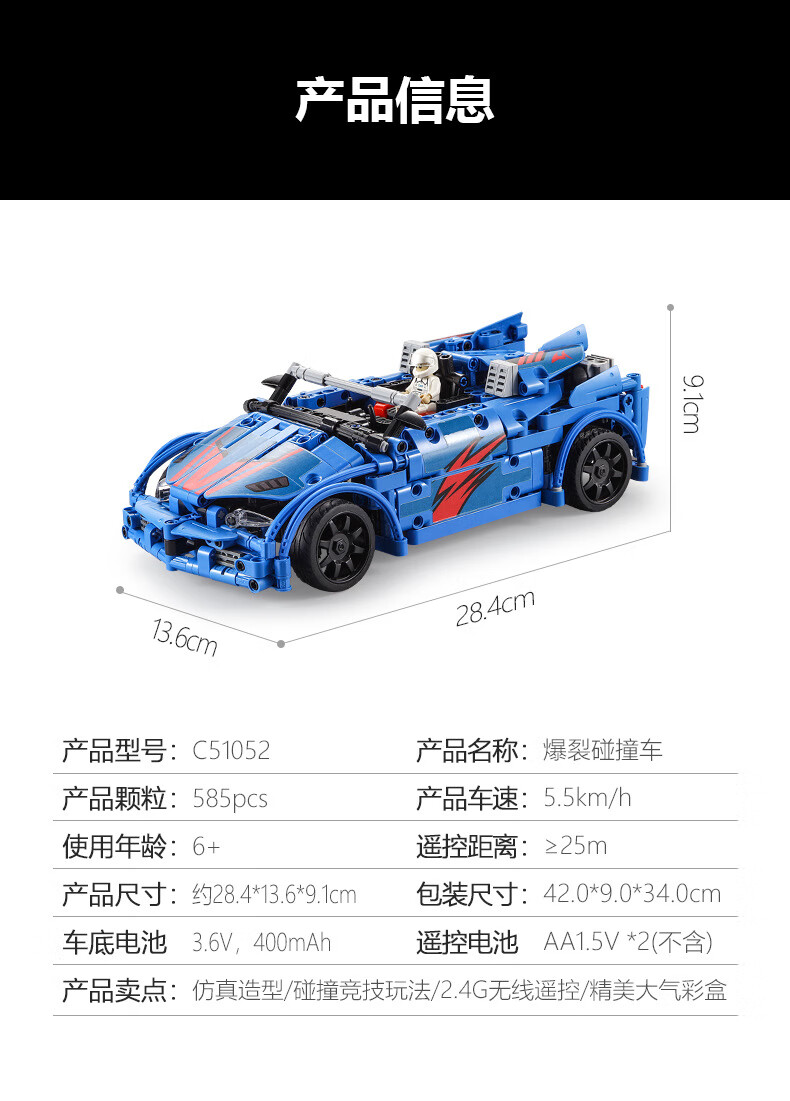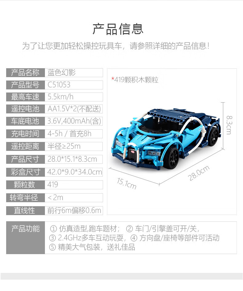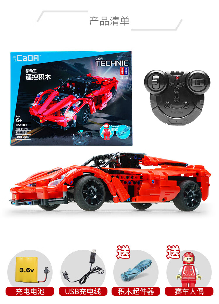 Double Eagle Double Eagle electric remote control car building blocks small particle sports car assembly model children's puzzle Qi C61018 (box) model version sports car