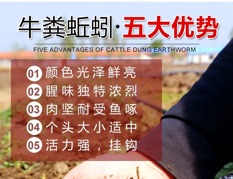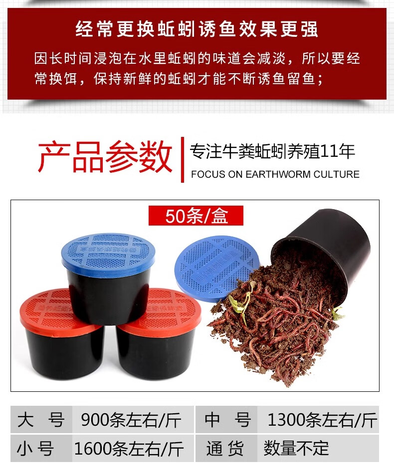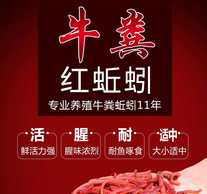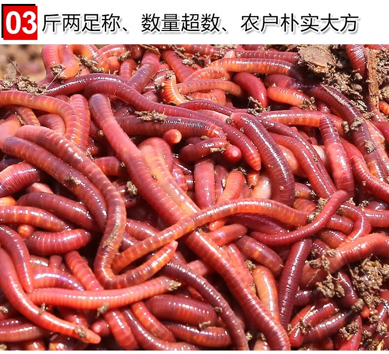 Live earthworm bait, fresh red worm fishing bait, crucian carp, wild fishing black pit fish material, nesting material, fish food, kill live earthworms, half Jin Jin equal to 0.5 kg (medium size), free nutritious soil