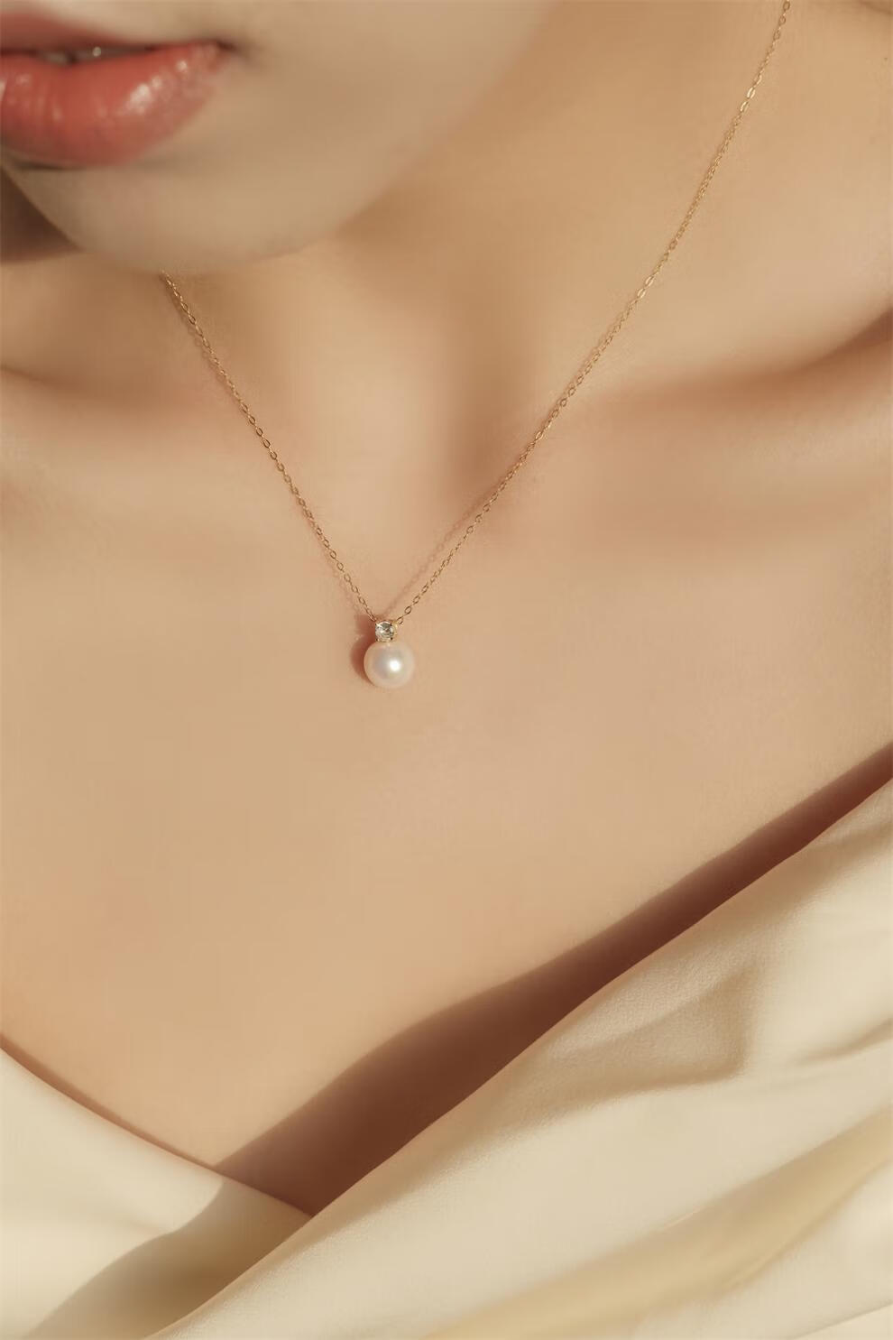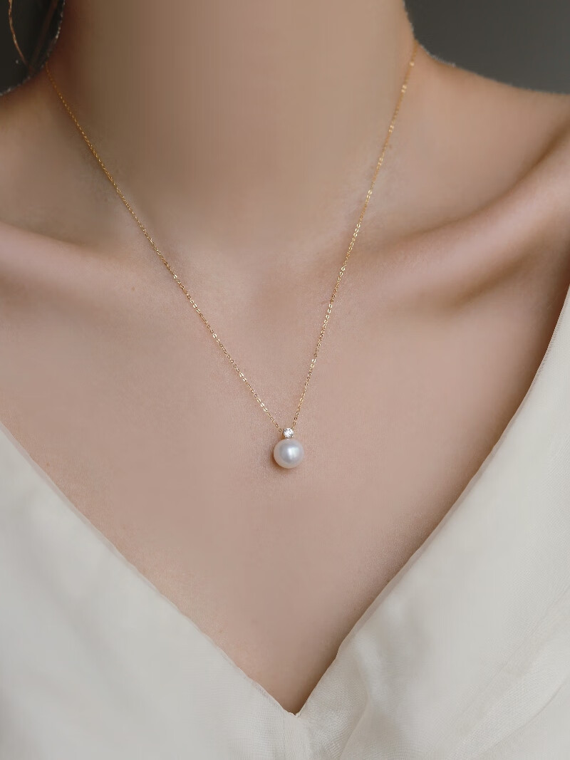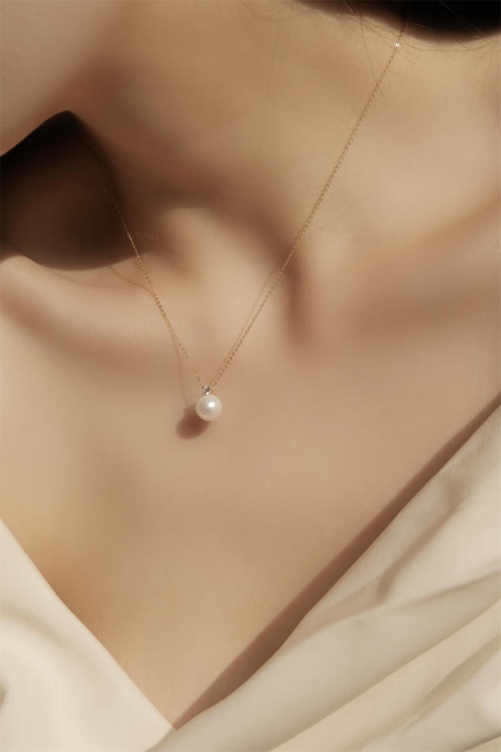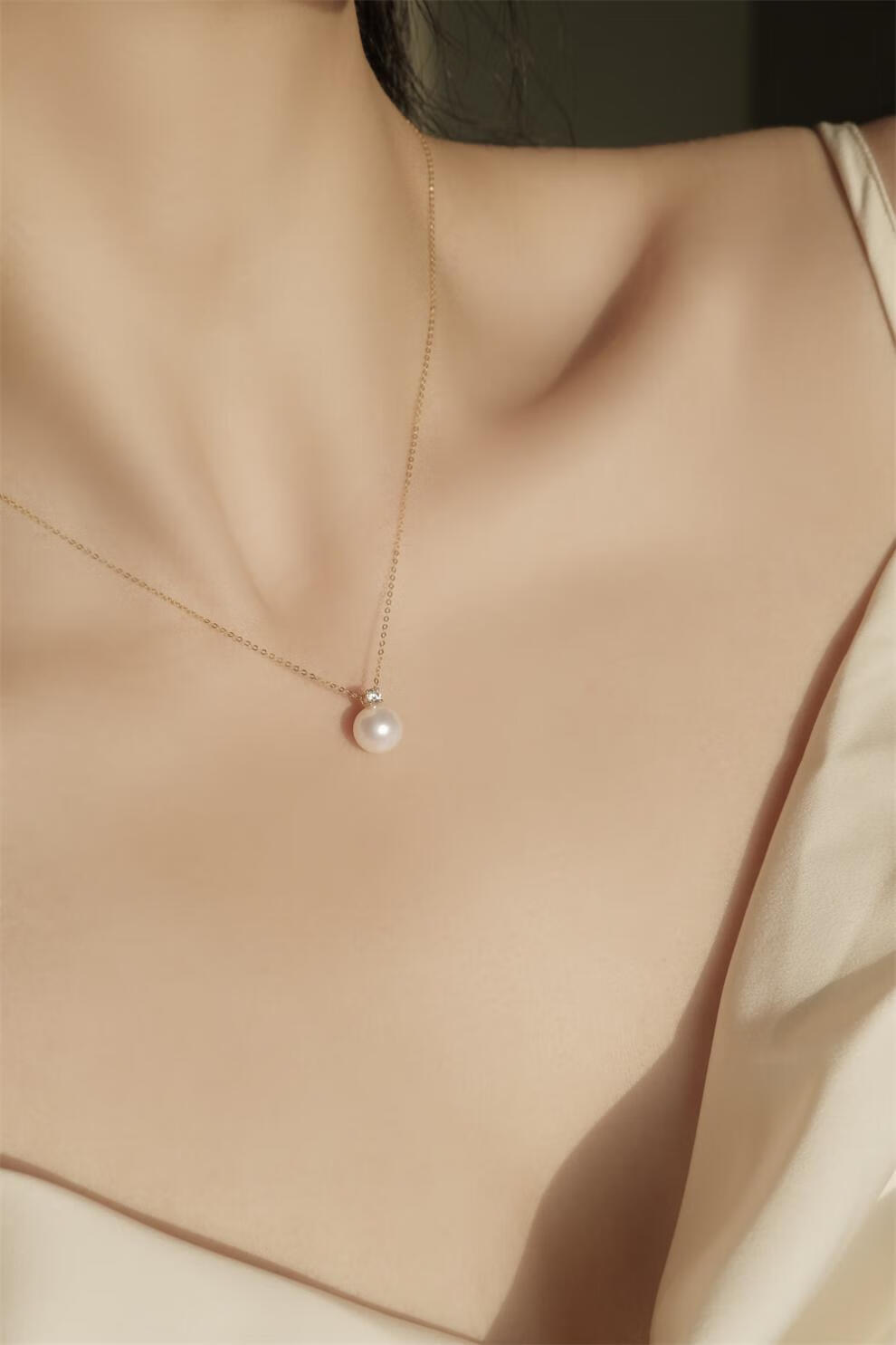 Fat Donglai same style pearl pendant 18k18k gold princess style freshwater pendant necklace round strong light single pearl Princess Diana k yellow with chain 9-10mm