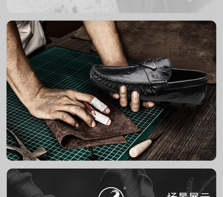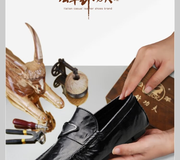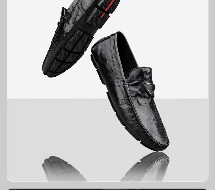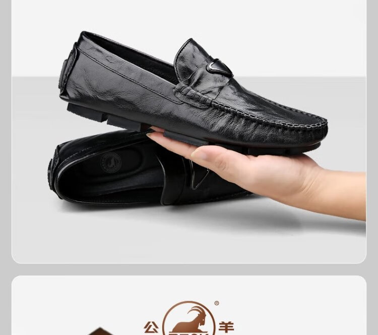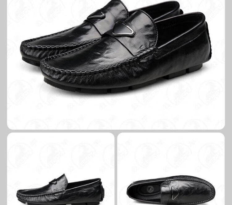 Ram Men's Slip-on Autumn Breathable First Layer Cowhide Peaches Men's Business Casual Shoes Soft Sole Soft Leather Shoes for Men Black 40