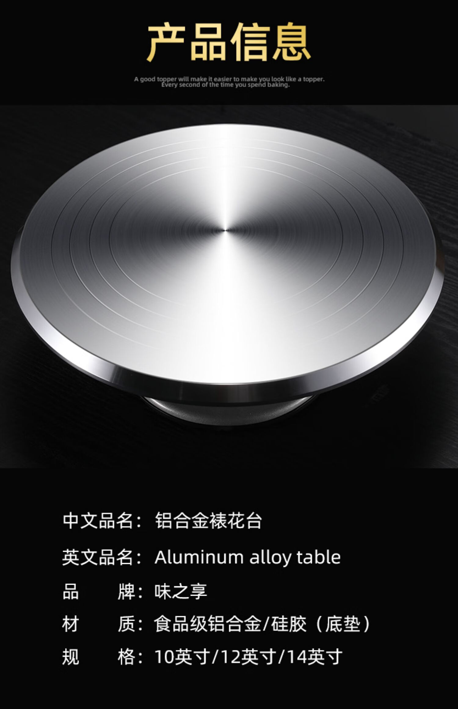 WeiZhiXiang Cake Turntable Decorating Turntable Decorating Table Household Tools Full Set Birthday Baking Professional Support Table Rotating Set Food Grade 10-inch Aluminum Alloy/Smooth Rotation No Specifications
