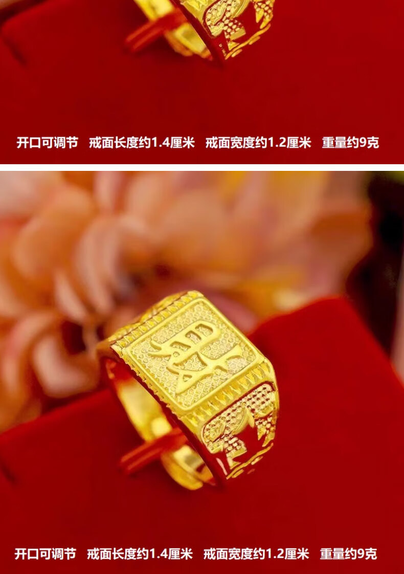 QMXD gold ring for men that lasts for a long time and does not fade. The domineering imitation sand gold fashion ring is a birthday gift for husband and dad. Fu-big men's ring