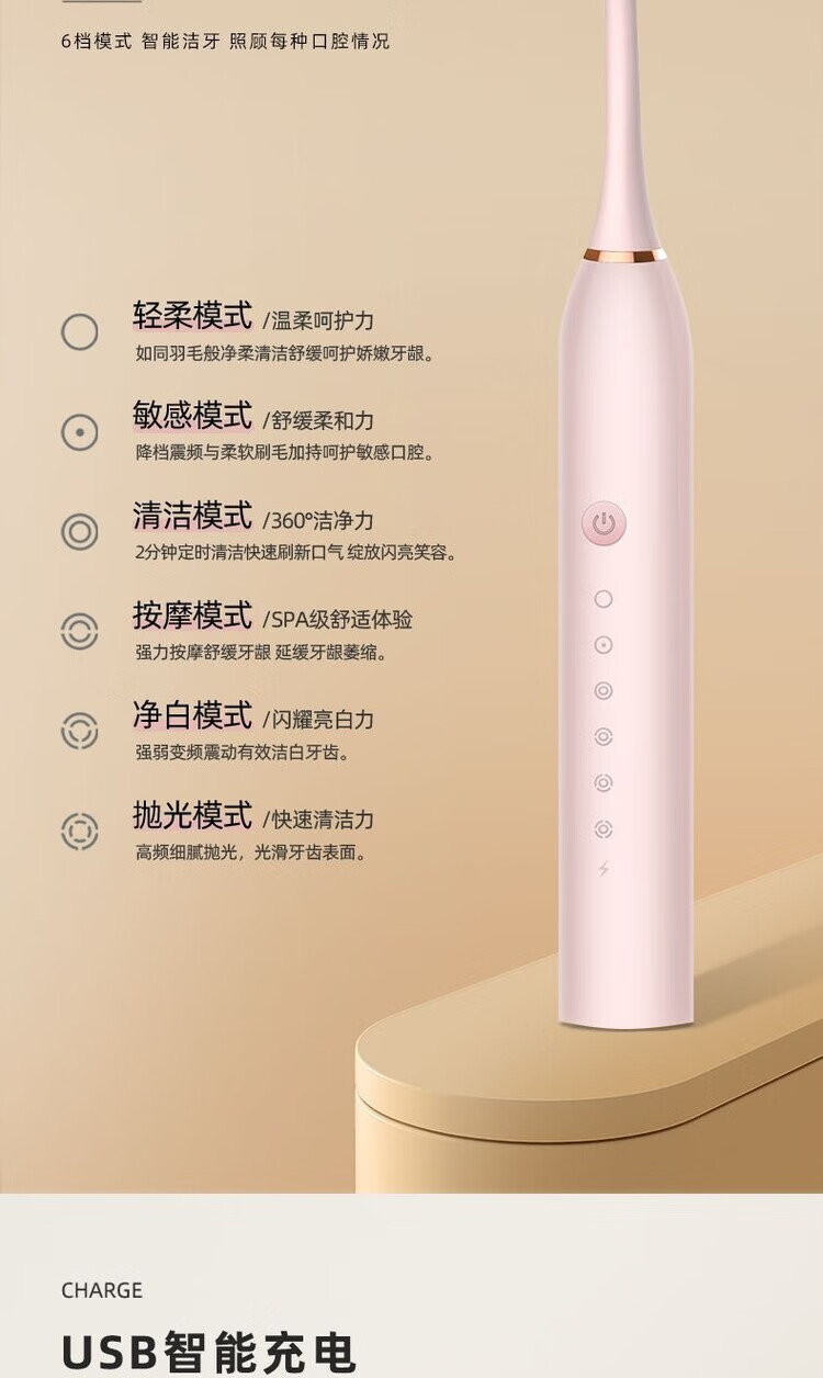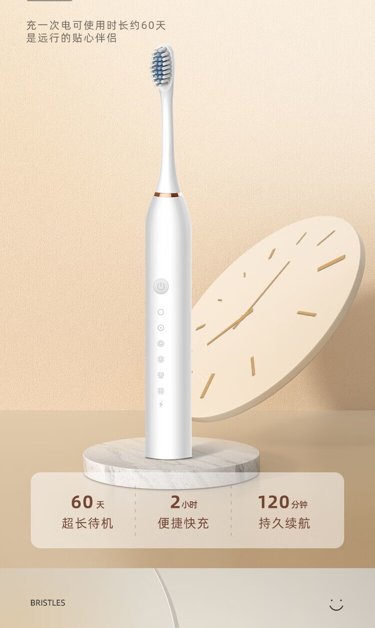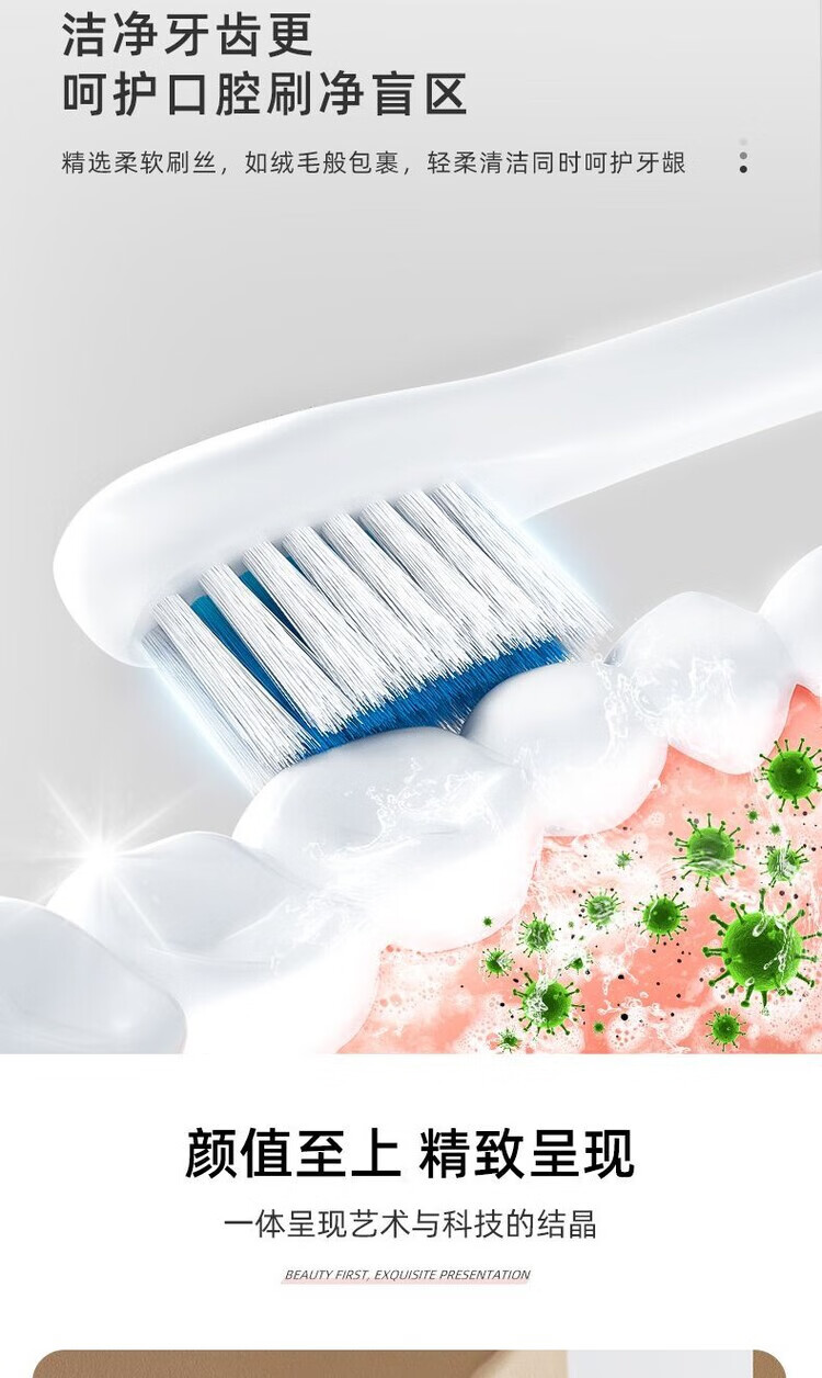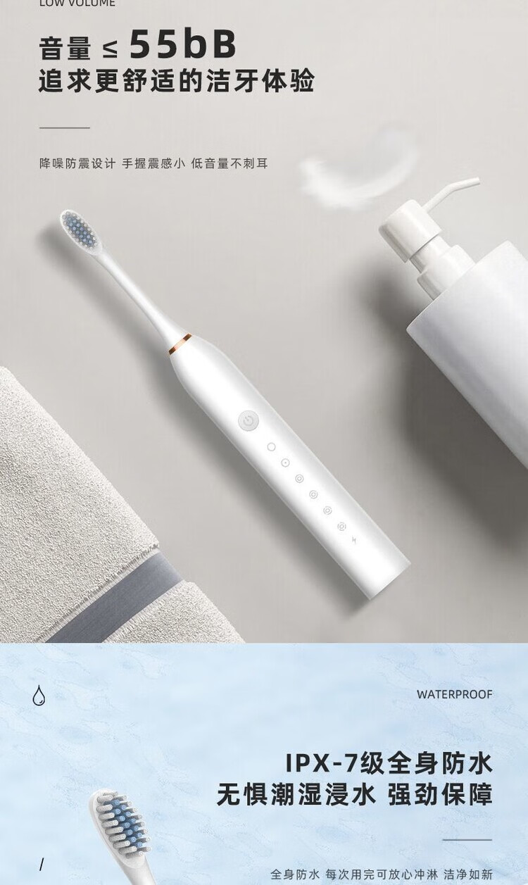 A&D Electric Toothbrush Fully Automatic Children Adult Rechargeable Soft-Bristled Waterproof Student Men's and Women's Home Simple White USB Cable Charger 8 Brush Heads Half-Year Replacement