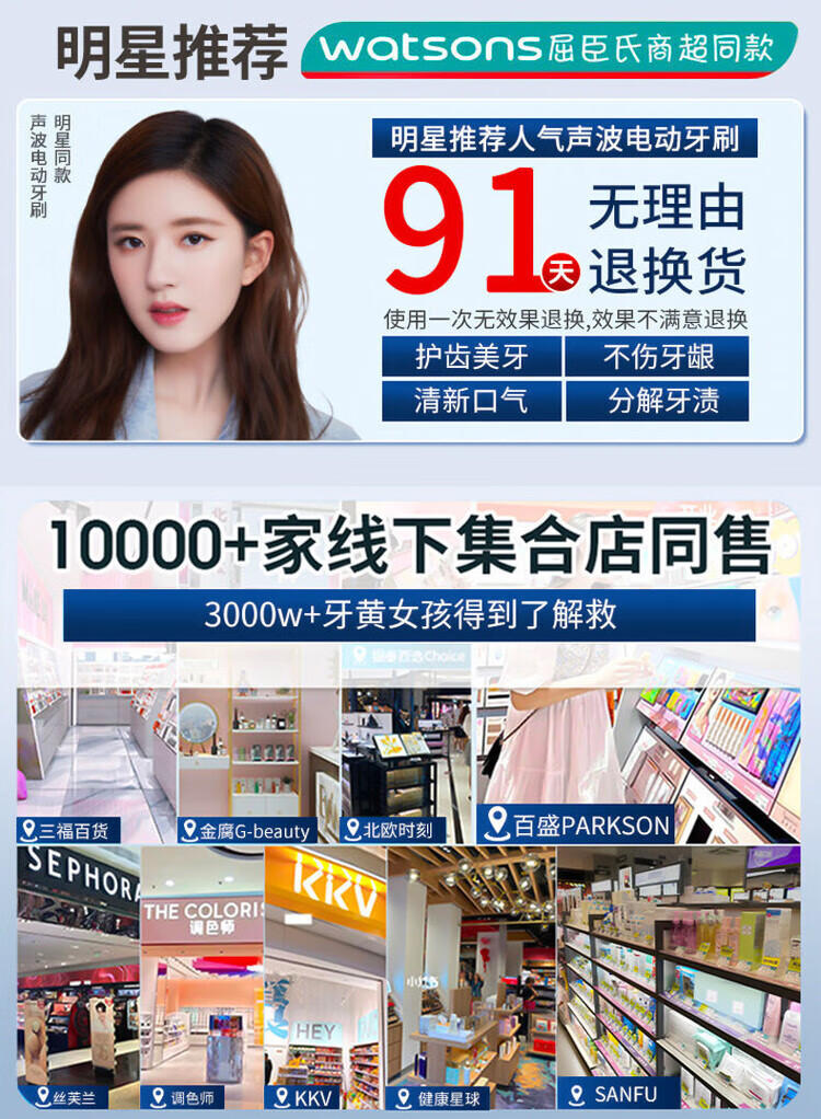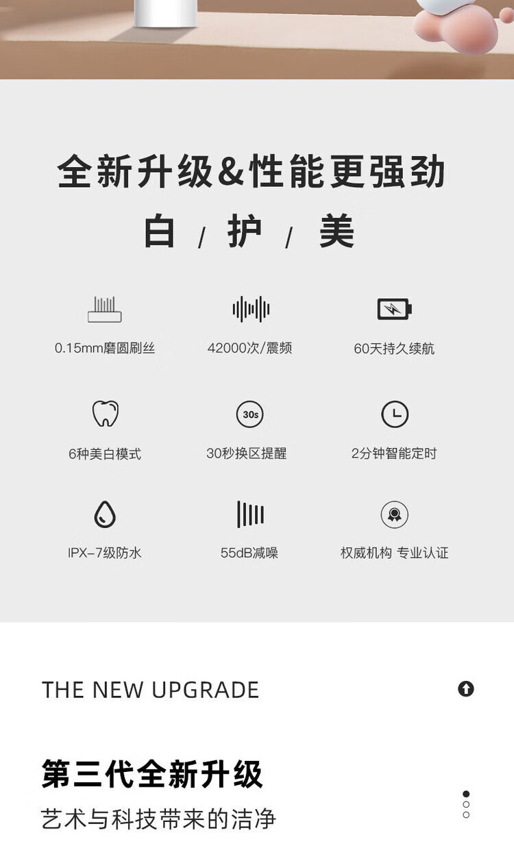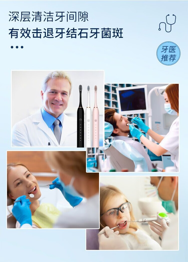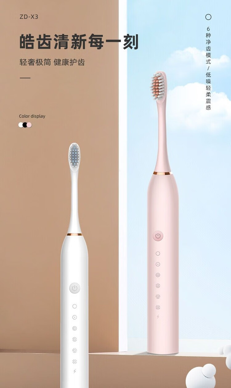 A&D Electric Toothbrush Fully Automatic Children Adult Rechargeable Soft-Bristled Waterproof Student Men's and Women's Home Simple White USB Cable Charger 8 Brush Heads Half-Year Replacement