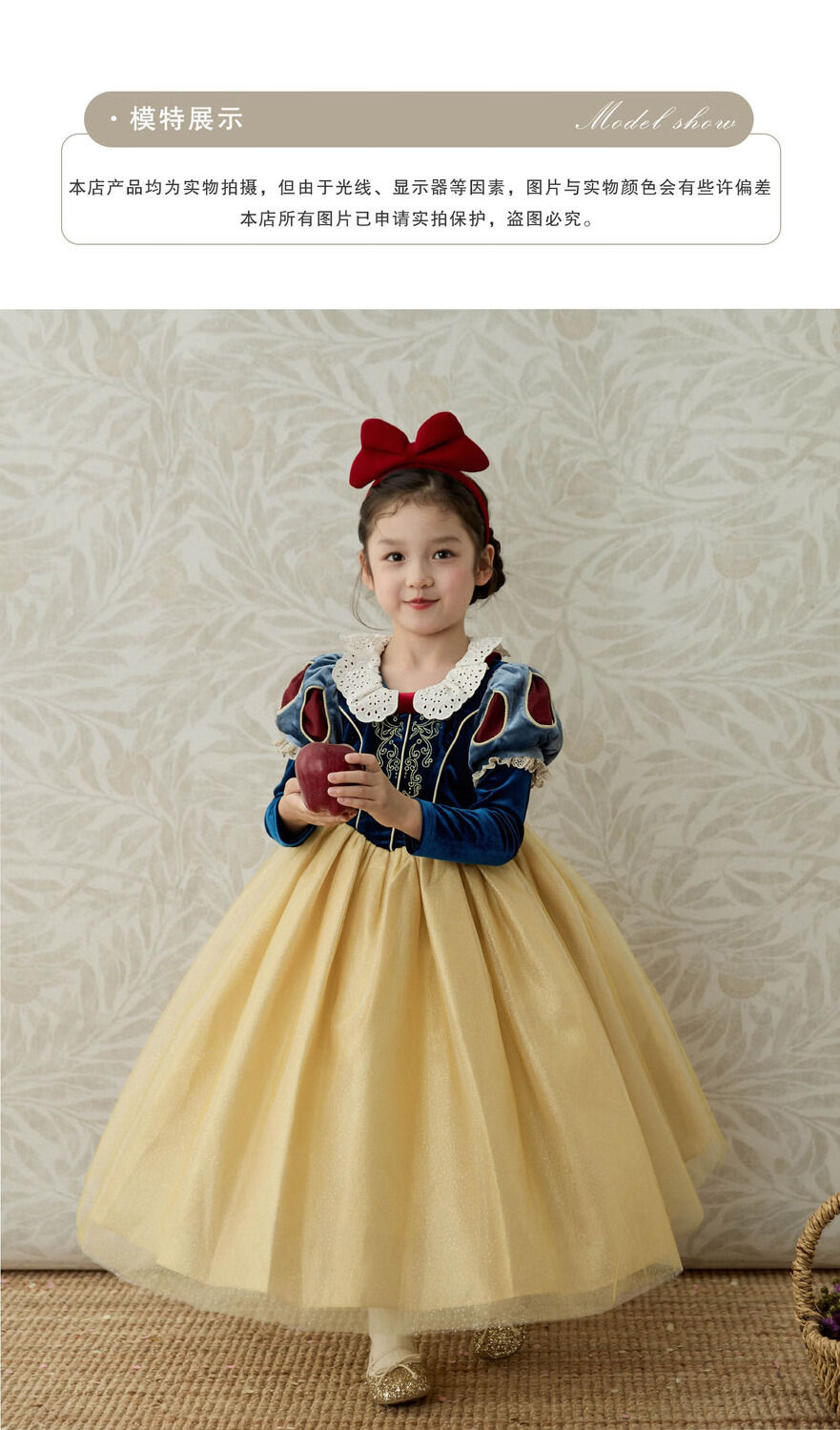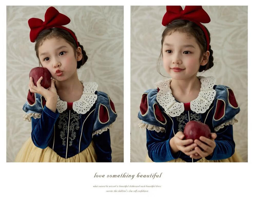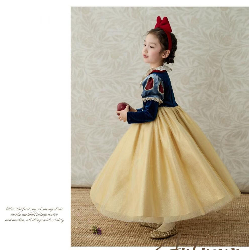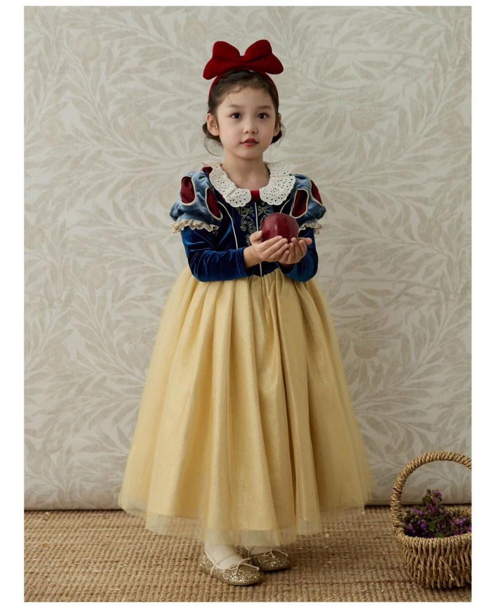 G.duck girls dress autumn and winter Snow White fashionable children's Lolita princess dress baby birthday dress tutu skirt Snow White fake two pieces 100 cm