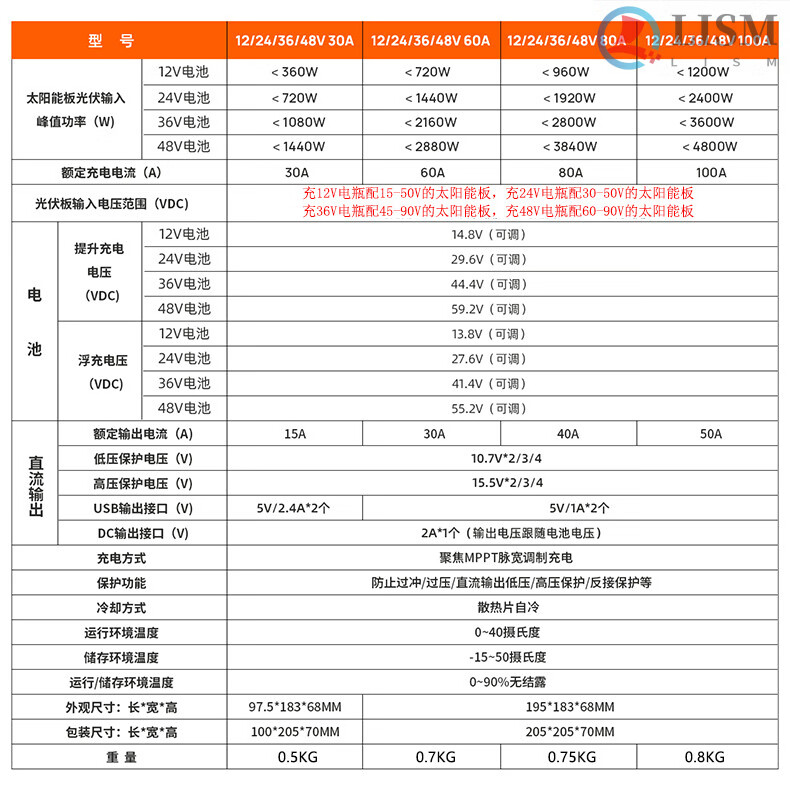 Solar controller fully automatic universal 12V24V36V48V lithium battery photovoltaic panel charger MPPT controller 30A