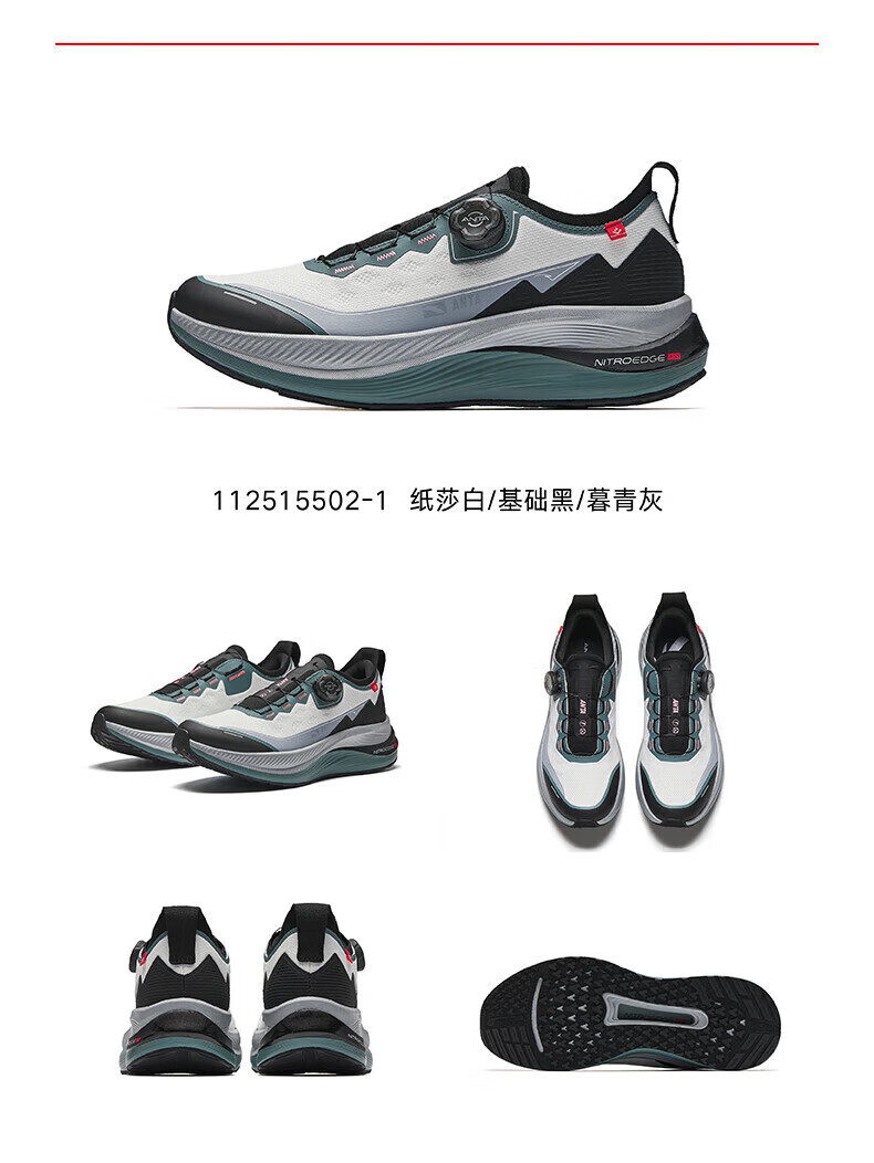 ANTA's outstanding non-slip support shock-absorbing knob running shoes men's new spring running shoes Papery White/Basic Black/Twilight Gray-1 40.5