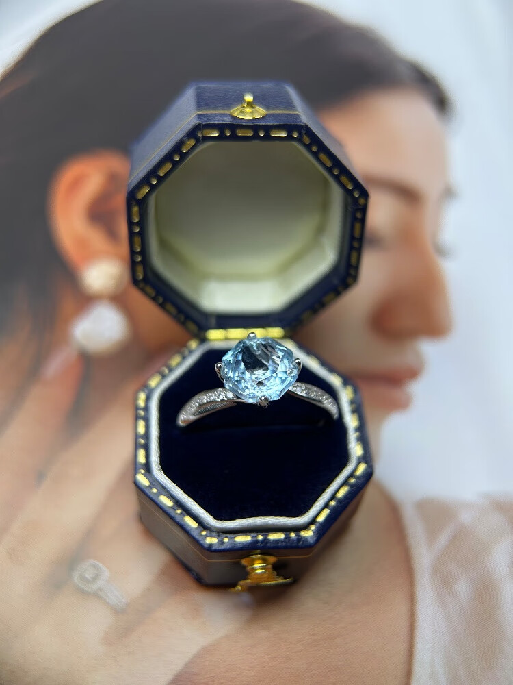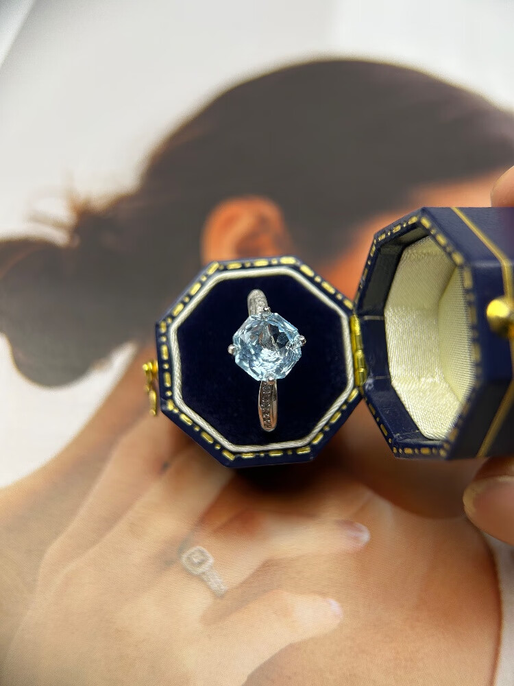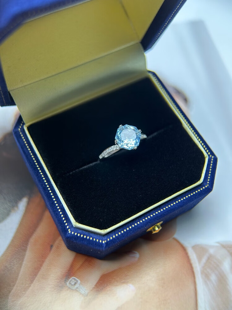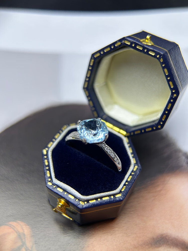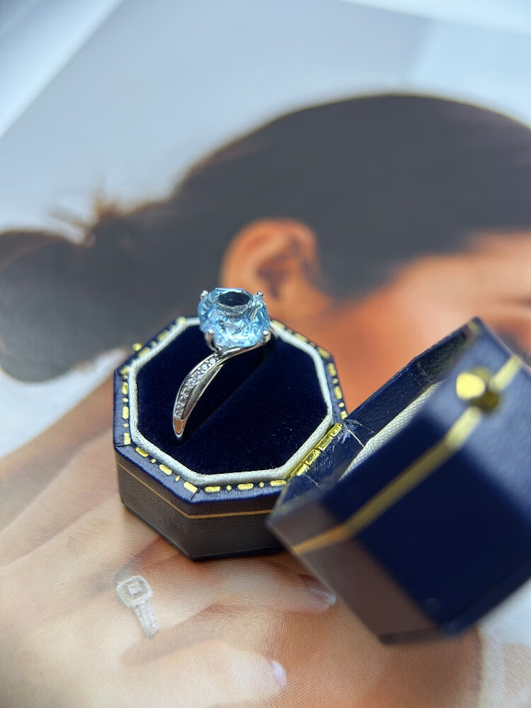 University of Geosciences jewelry natural sea blue topaz ring, S925 silver plated with 18K gold, one item, one certificate