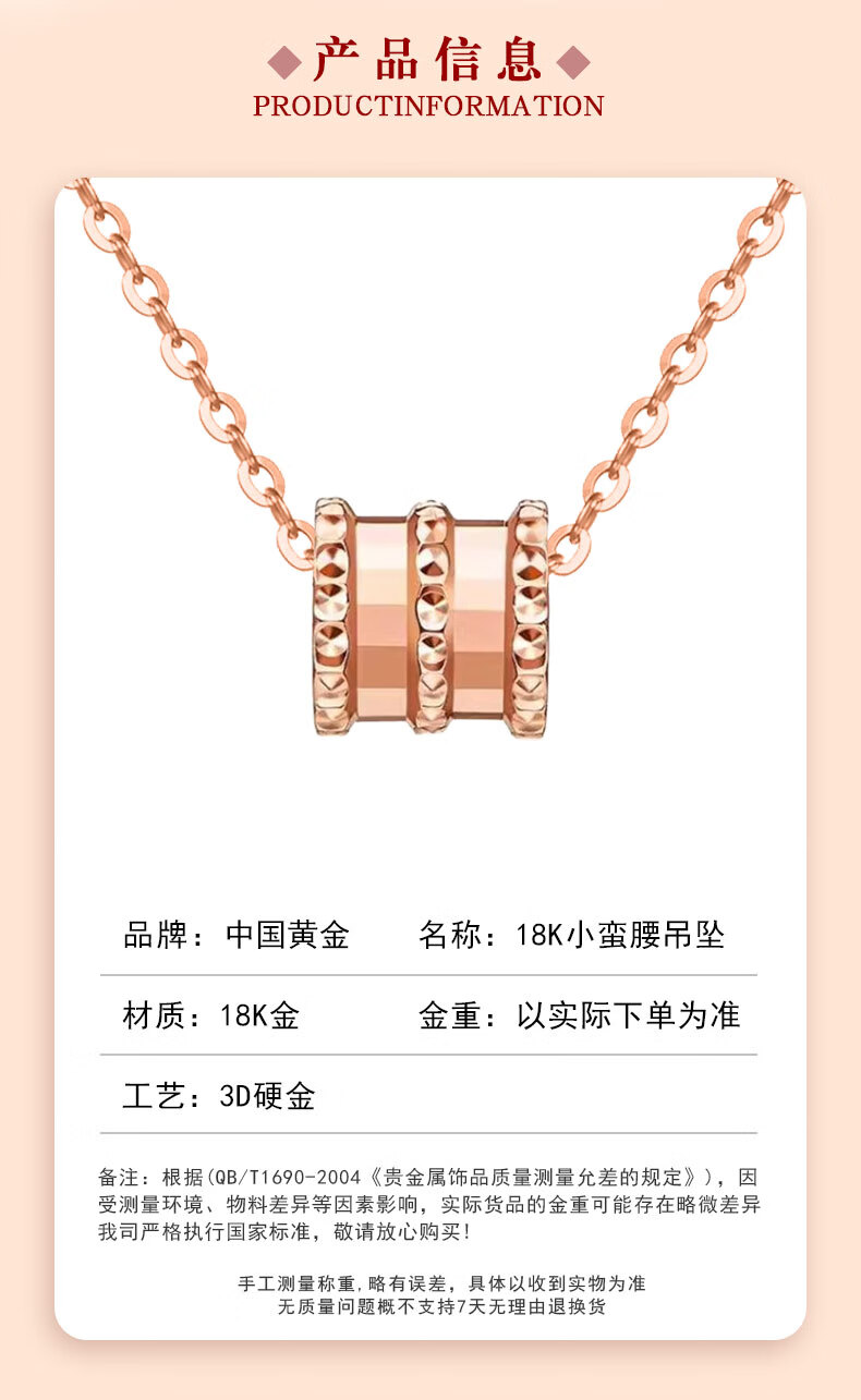 CHINA GOLD 18K gold small waist pendant women's Passepartout transfer bead necklace Valentine's Day birthday gift for girlfriend 18K gold small waist pendant + S925 silver chain