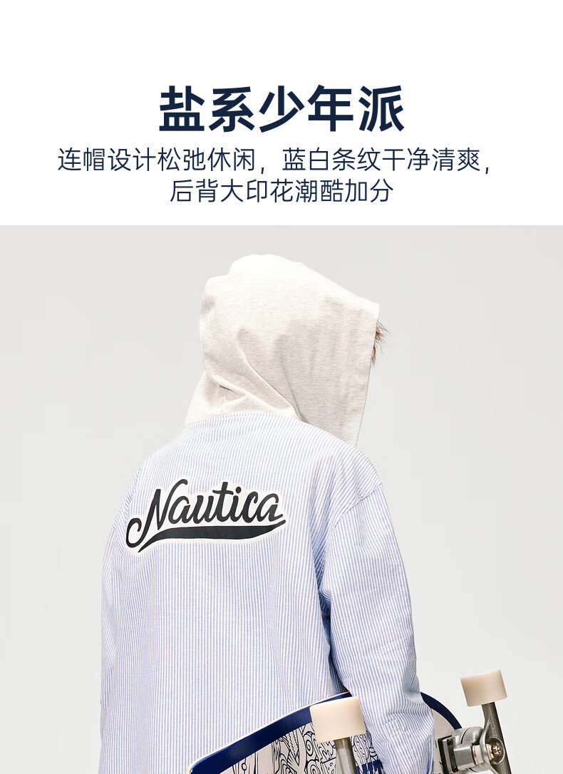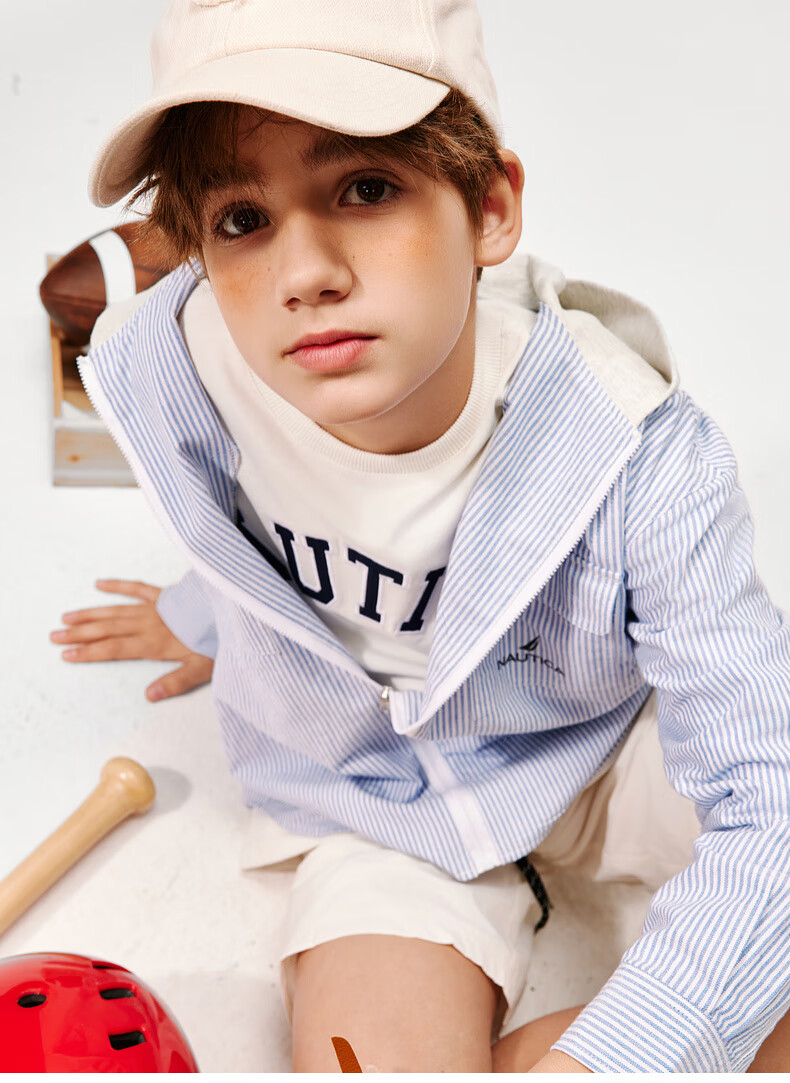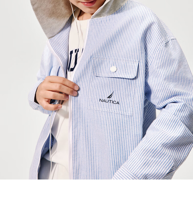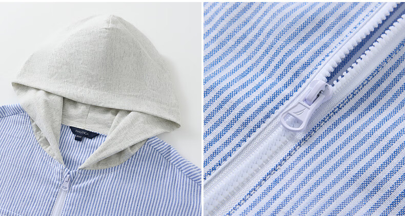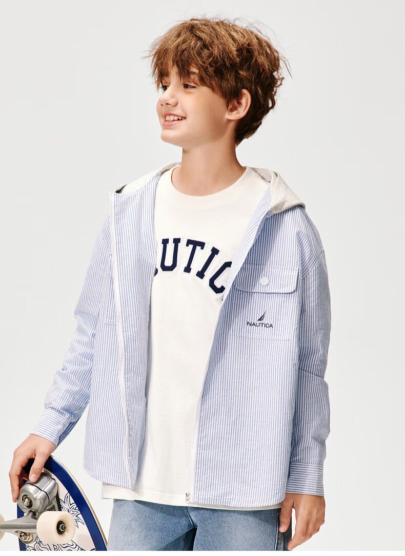 NAUTICA children's clothing boys and girls thin coat spring and autumn spliced hooded vertical striped shirt big children's clothes blue strip 170