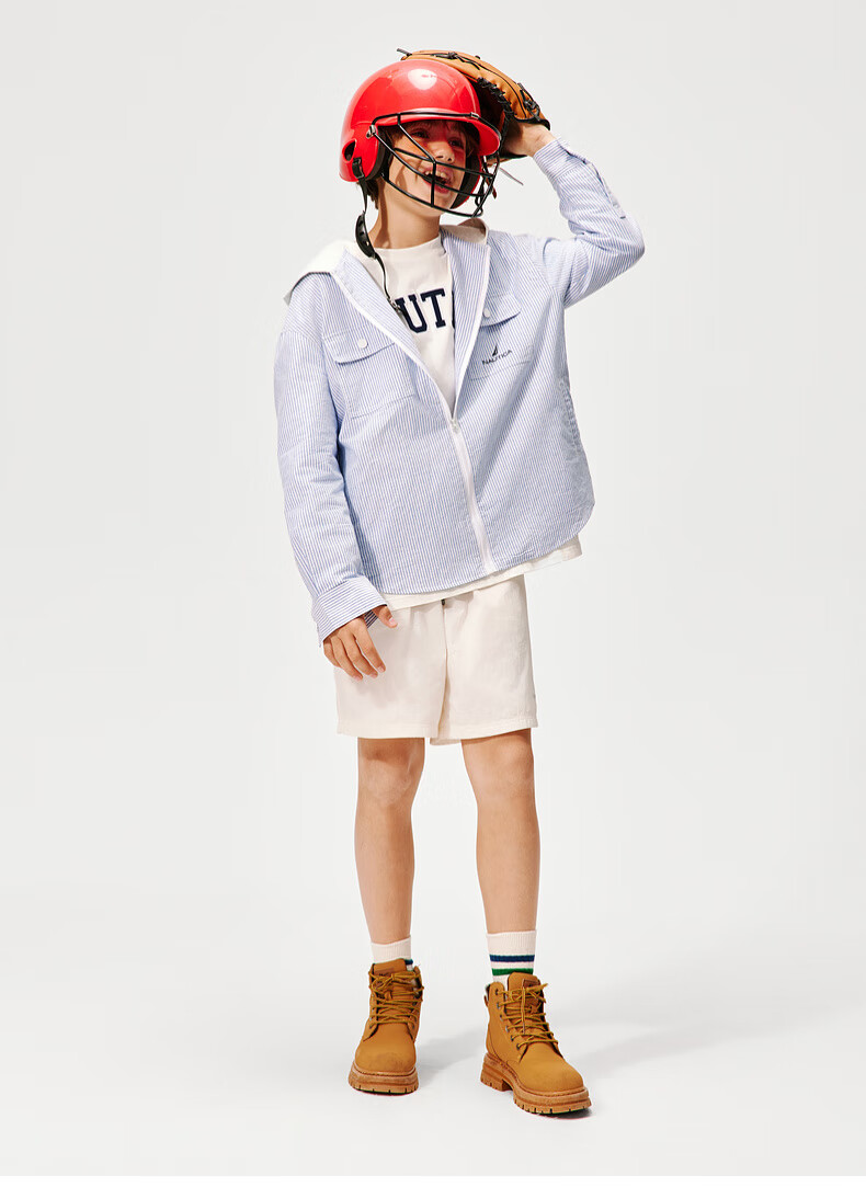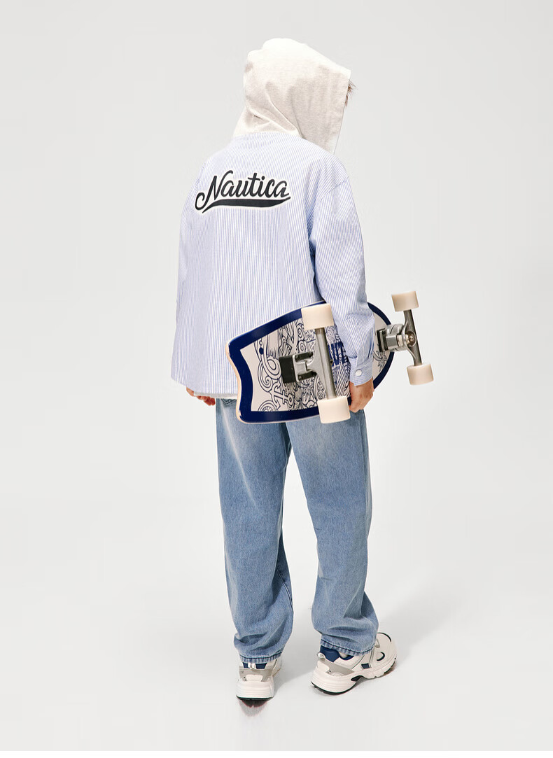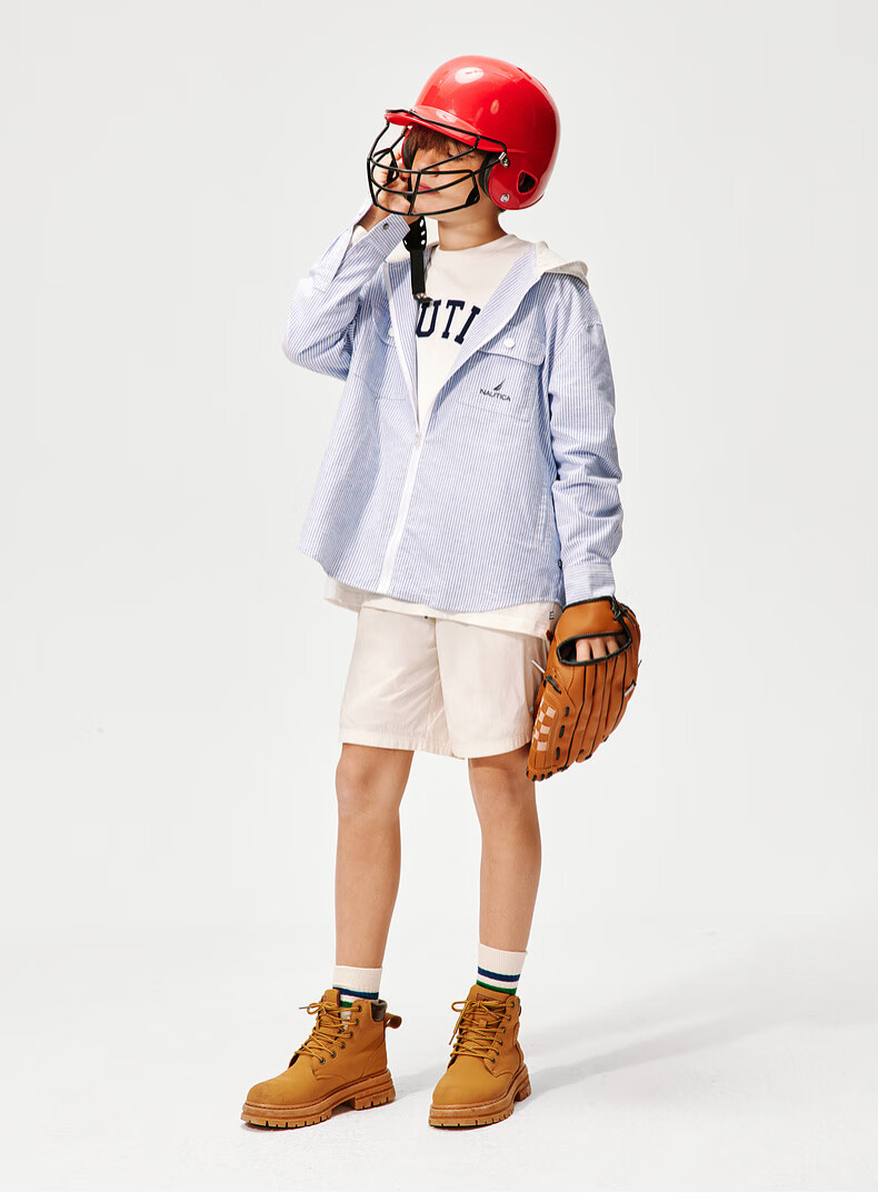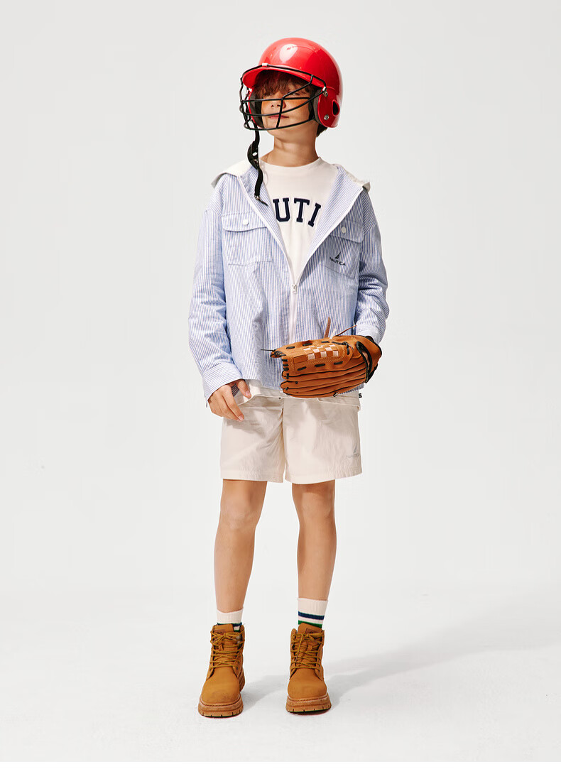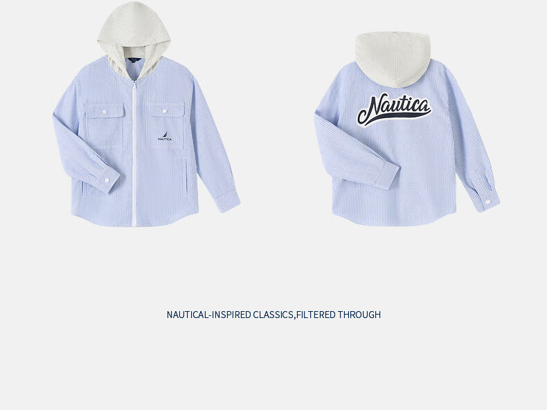 NAUTICA children's clothing boys and girls thin coat spring and autumn spliced hooded vertical striped shirt big children's clothes blue strip 170