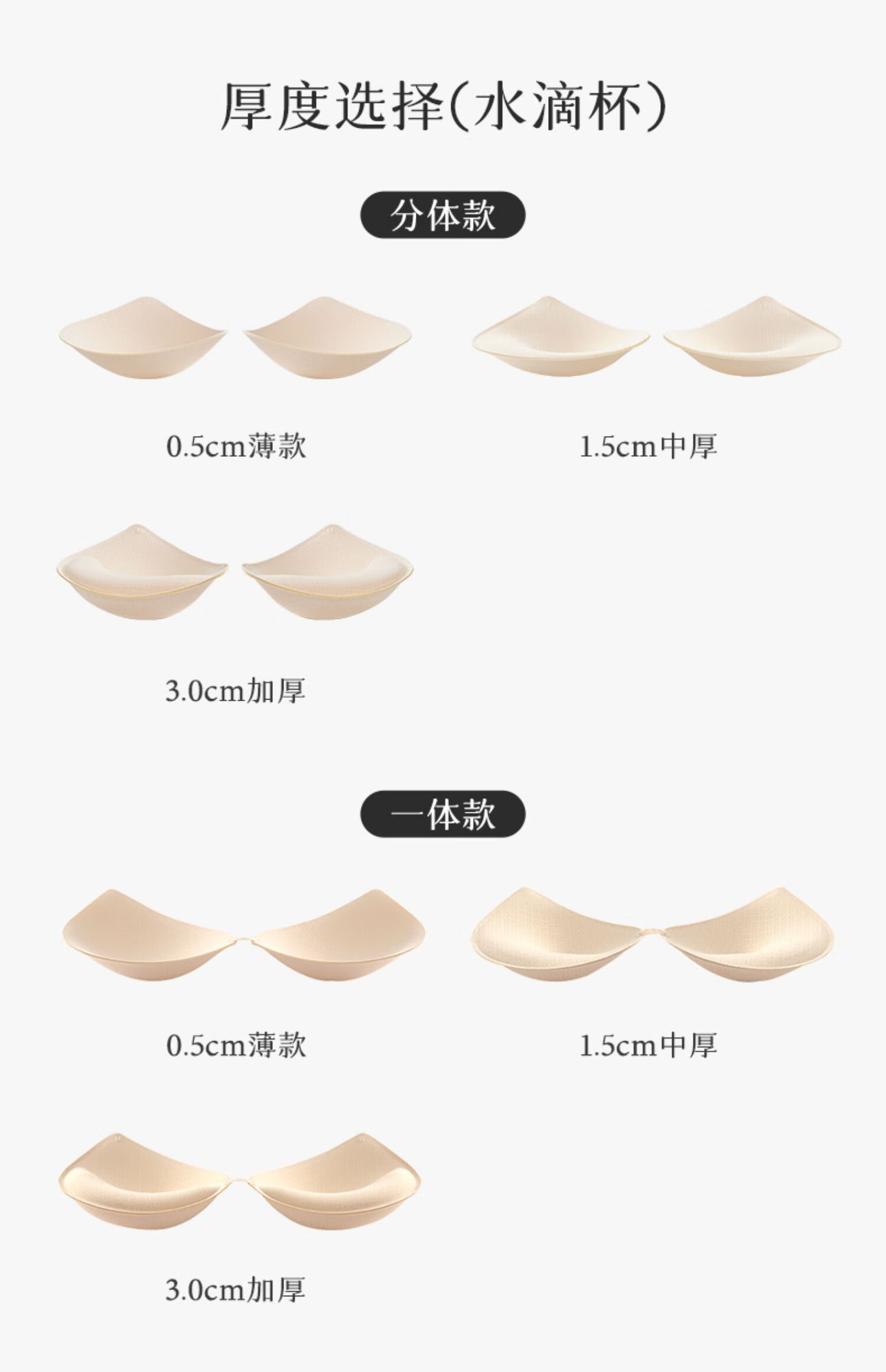 Tiancan Latex Breast Pad Insert Replacement Thin Small Breast Flat Chest Special Bra Underwear Beautiful Back Swimsuit Anchor Gathered Fake Breast Skin Color Split Water Drop Cup Ultra Thin 0.5cm XL