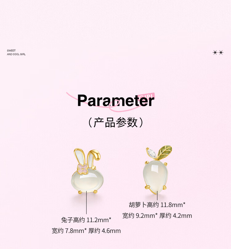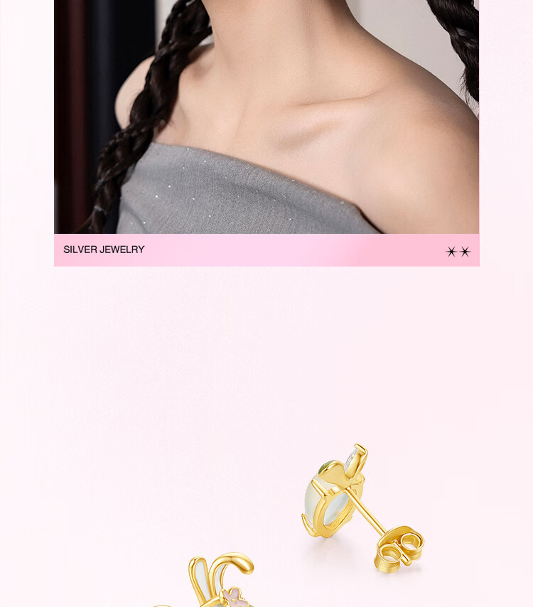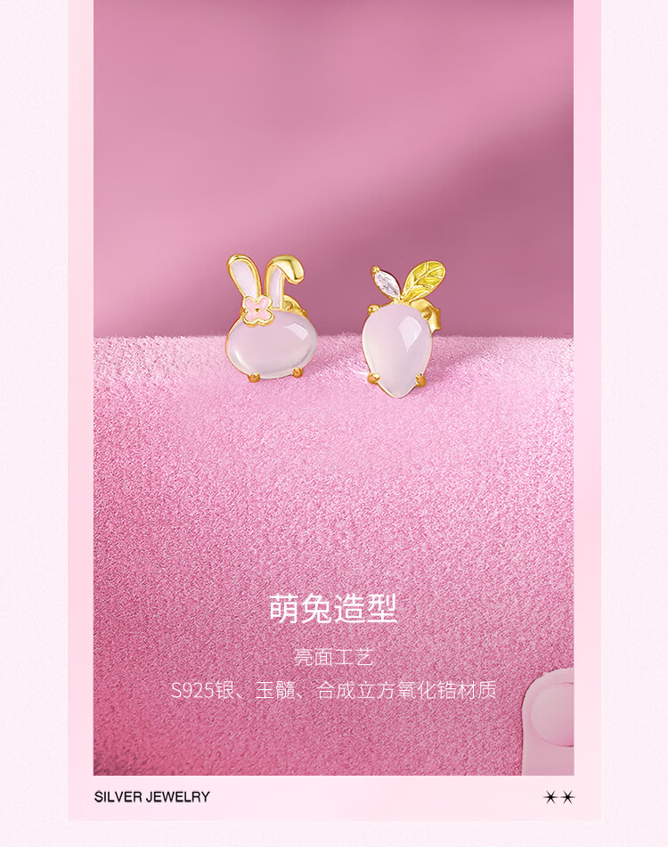 Saturday Fortune (ZLF) S925 silver chalcedony earrings for girls, cute rabbit earrings, gift for girlfriend, a pair of earrings