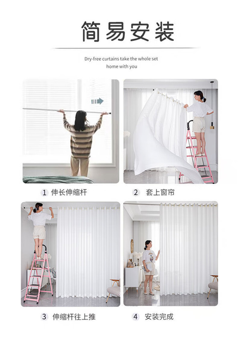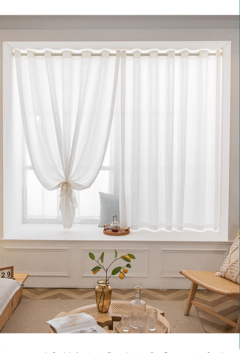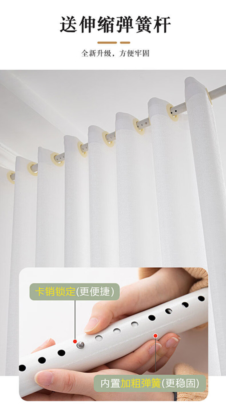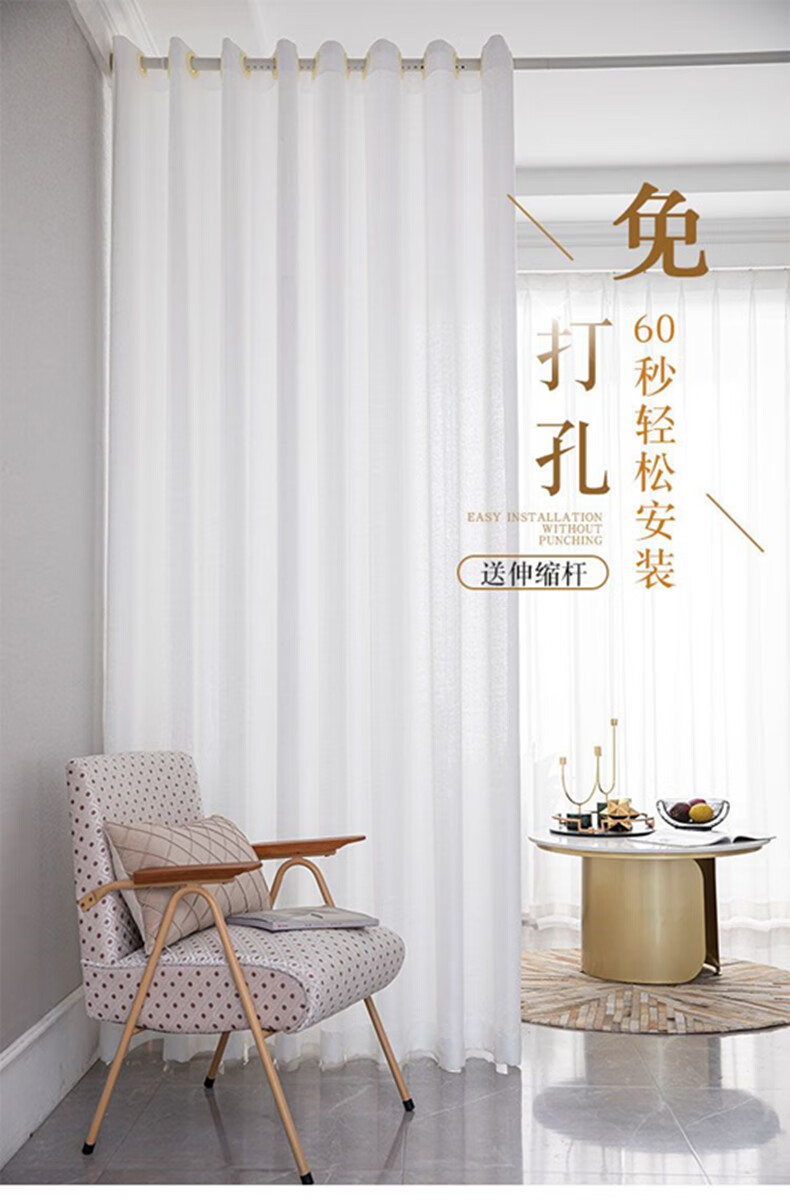 Yilian Youpin Phantom Window Screen without punching and installing light-transmitting opaque curtain yarn blackout curtain bedroom bay window partition curtain door curtain pearl white with telescopic rod rod 1.6 to 2.1 meters curtain height 2.5 meters two pieces
