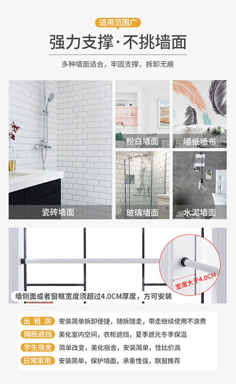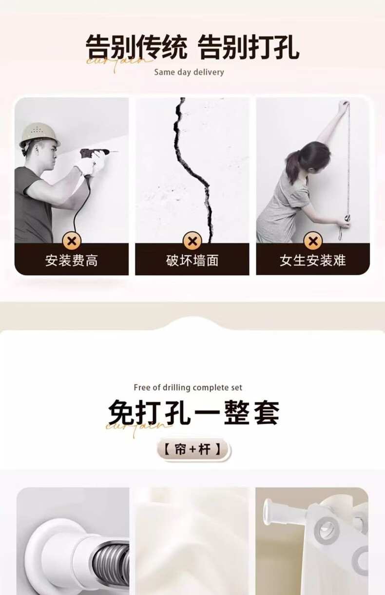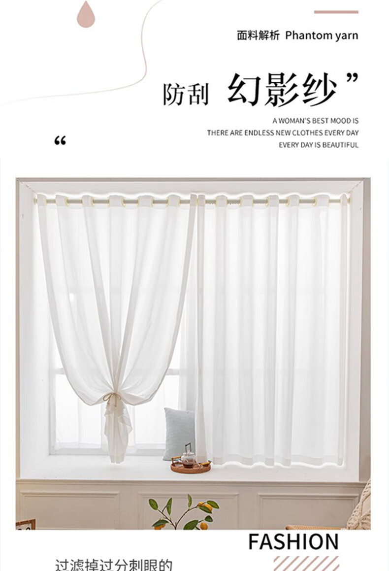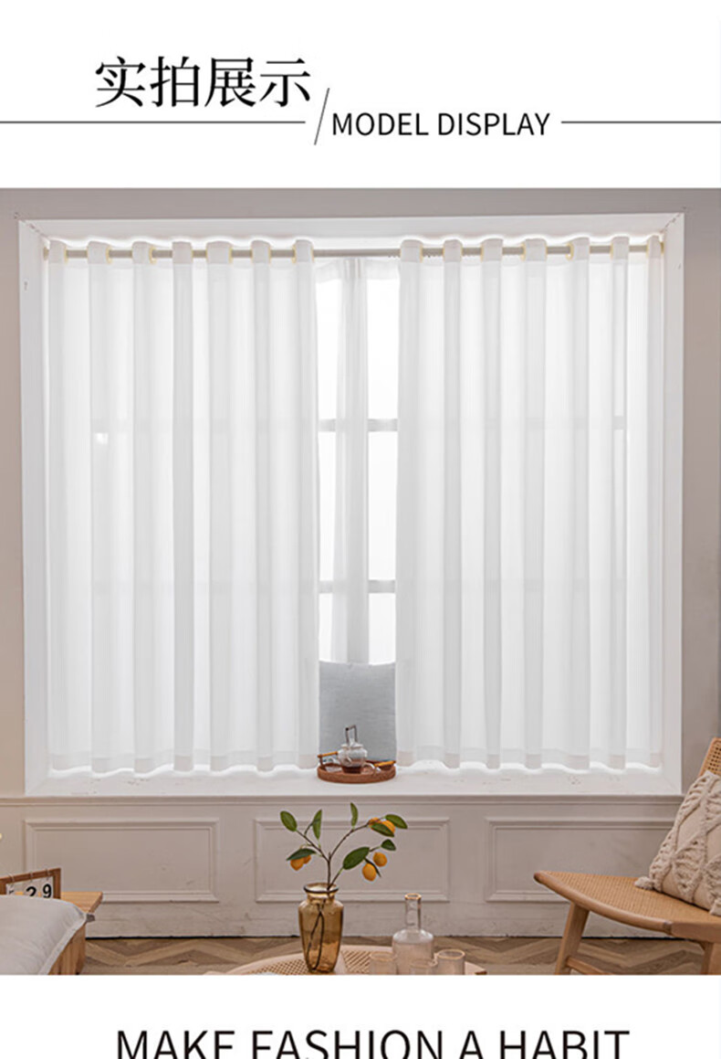Yilian Youpin Phantom Window Screen without punching and installing light-transmitting opaque curtain yarn blackout curtain bedroom bay window partition curtain door curtain pearl white with telescopic rod rod 1.6 to 2.1 meters curtain height 2.5 meters two pieces