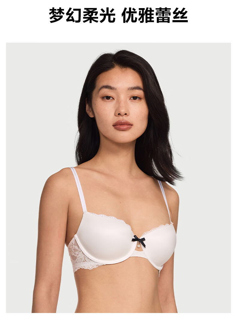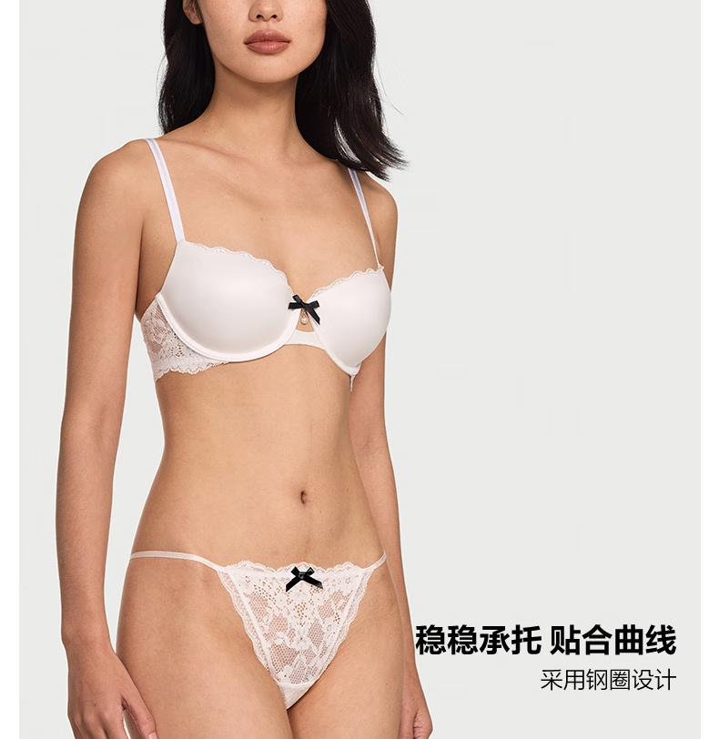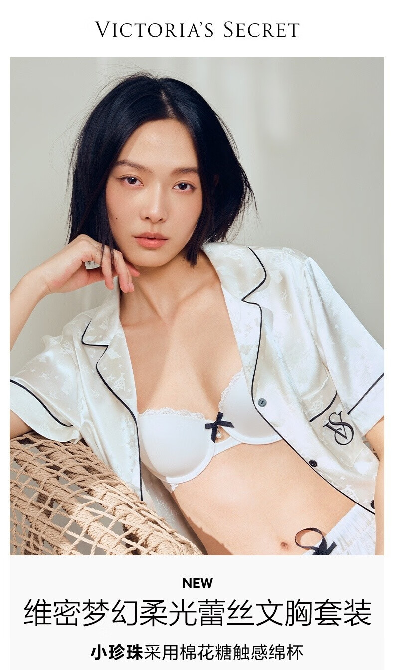 Victoria's Secret Fantasy Soft Light Lace Little Pearl Bra and Panties Set Women's Underwear 54A2 Black 75C (34C)+S