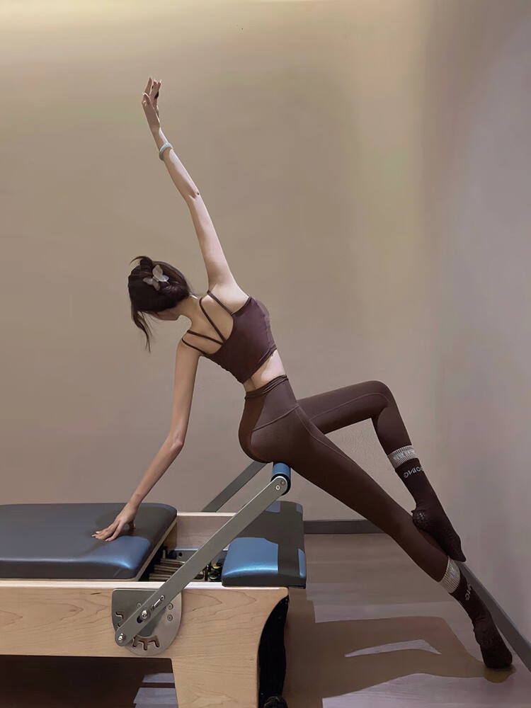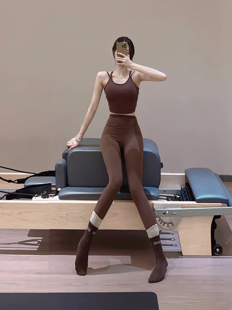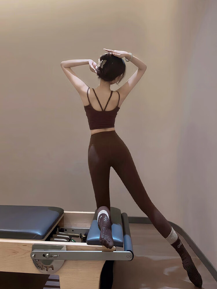 Kangaroo (DAISHU) Yoga Wear Suit High-end Three-piece Set 2025 New Gym Sports Top Women's Pilates Training Wear Summer Three-piece Set A Blouse + Chestnut Brown Top + L (108-118Jin Jin equals 0.5 kg)