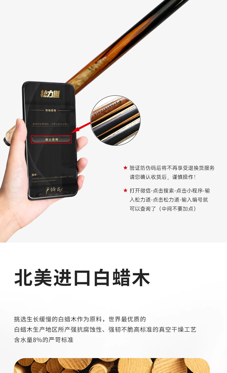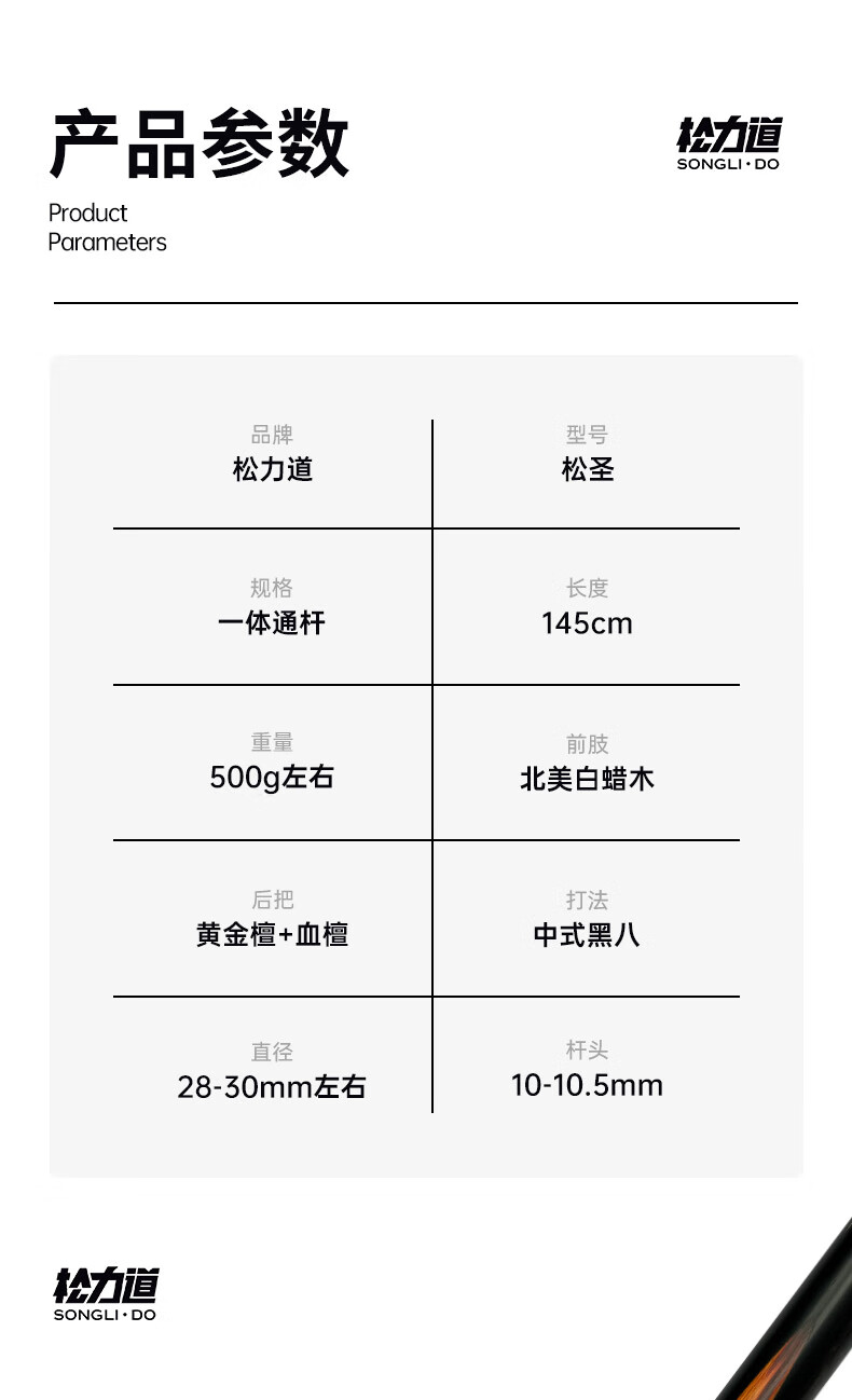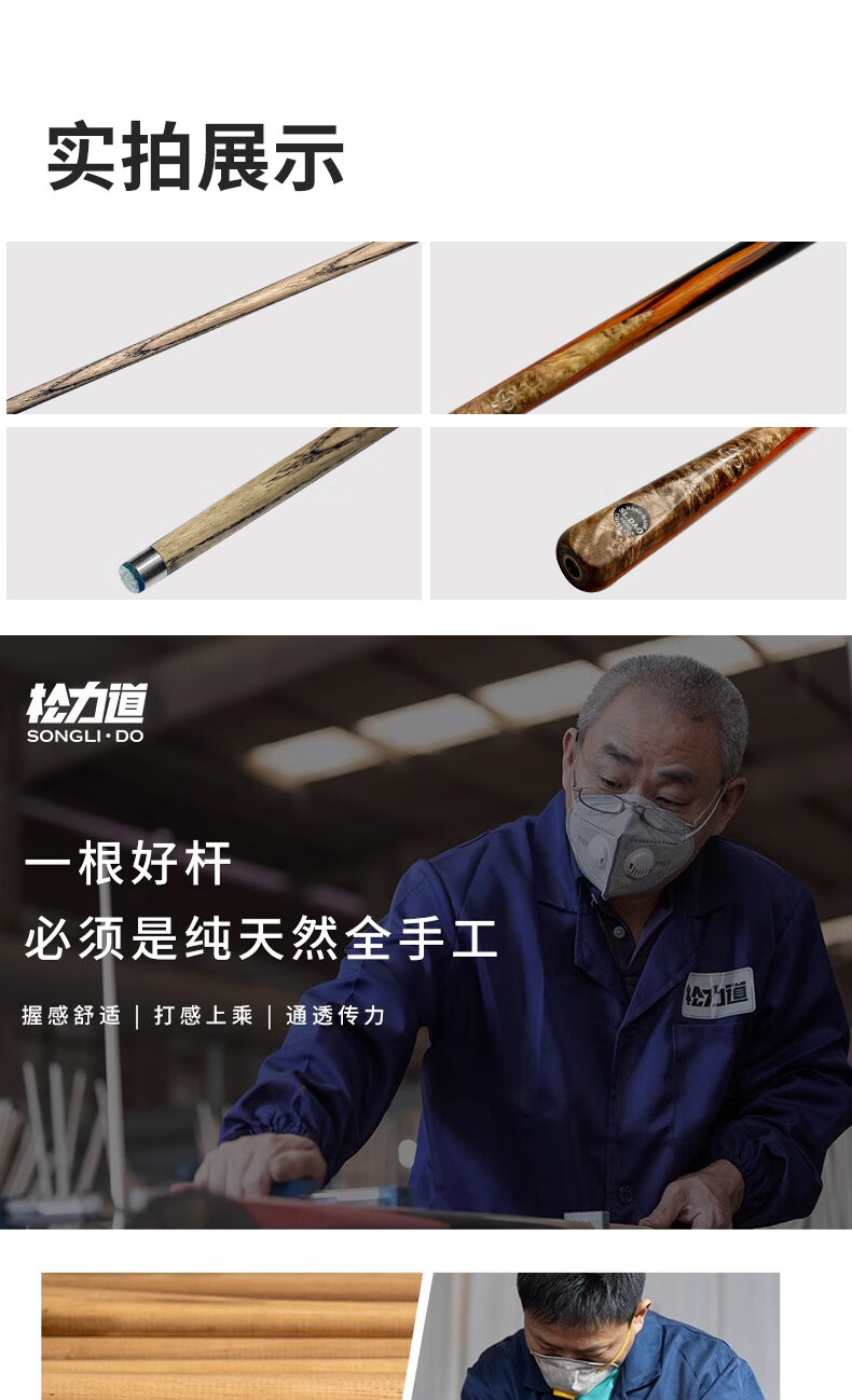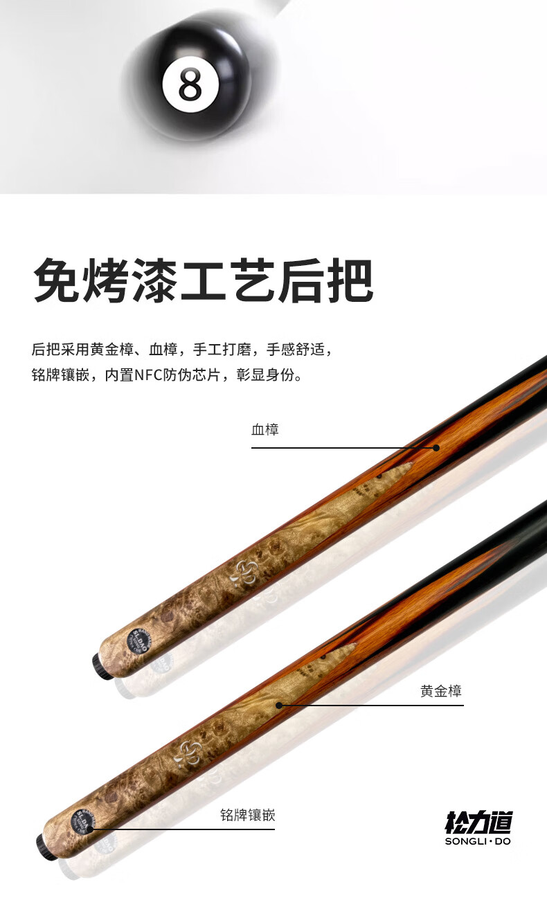 Songlidao Songsheng billiard cue free of paint black eight snooker all-in-one billiard cue small head Chinese style paint-free handmade cue Songsheng leather wood cue box + luxury accessories