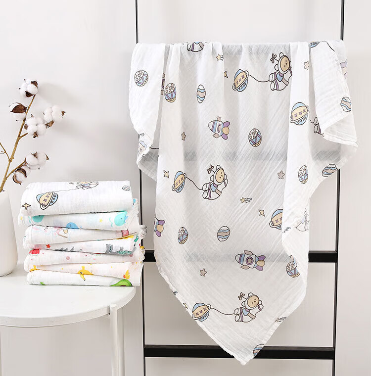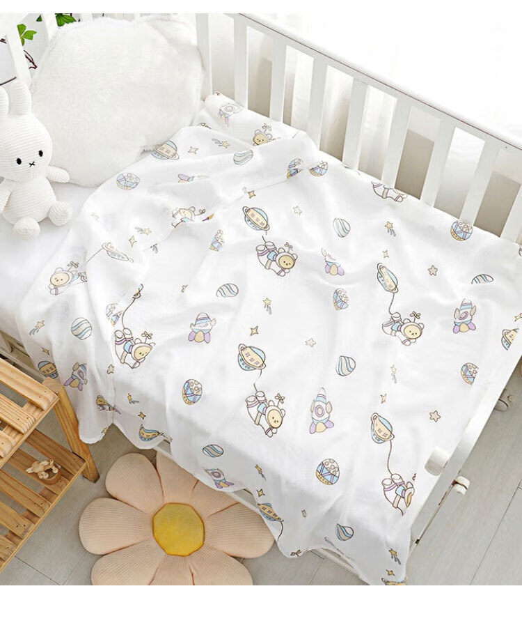First conception of baby gauze swaddling blanket single newborn thin summer double-layer gauze delivery room air-conditioned quilt blanket gauze blanket space bear 110*110cm happy children's fun