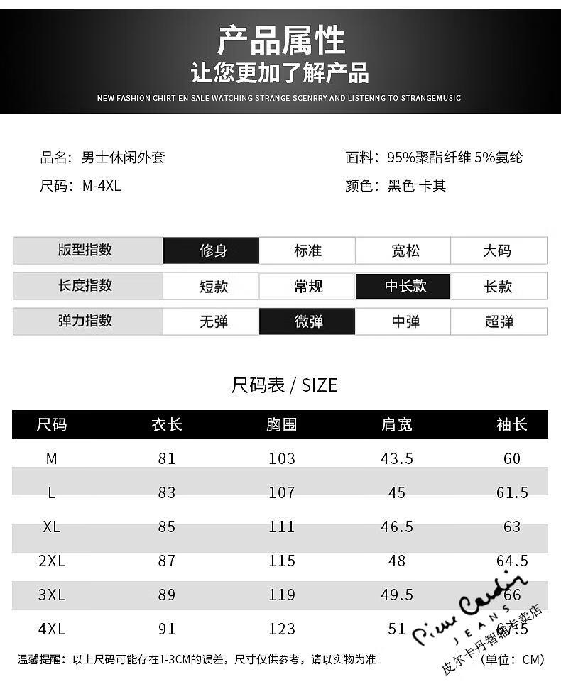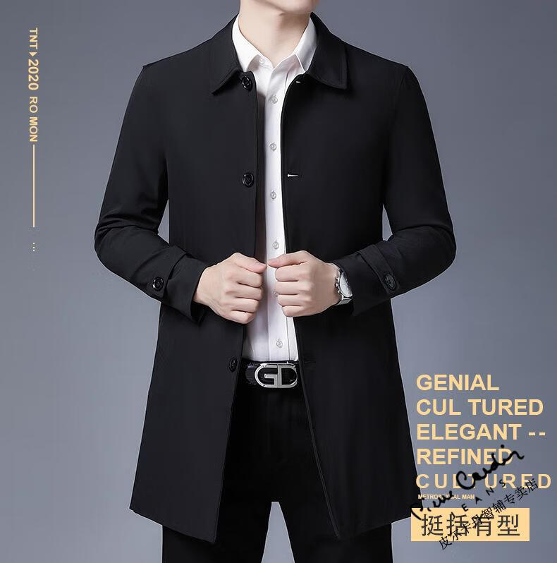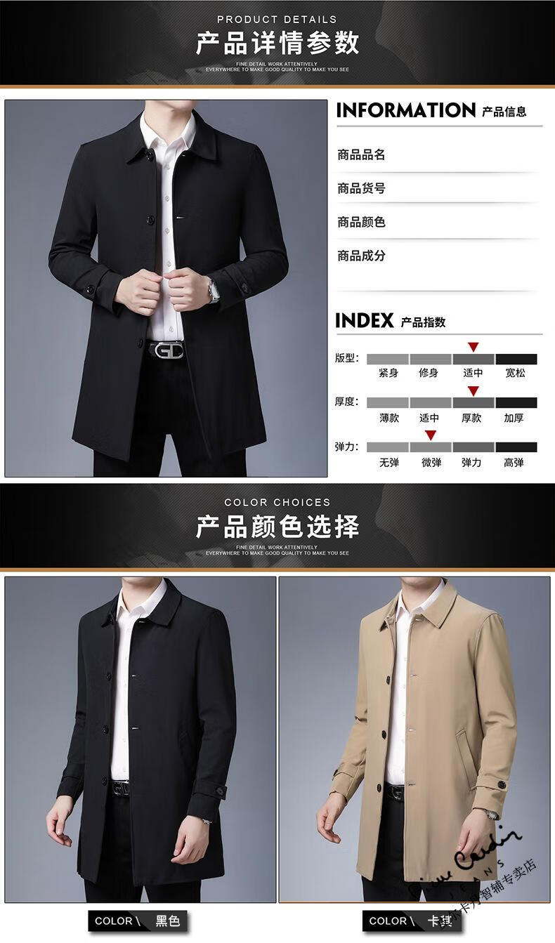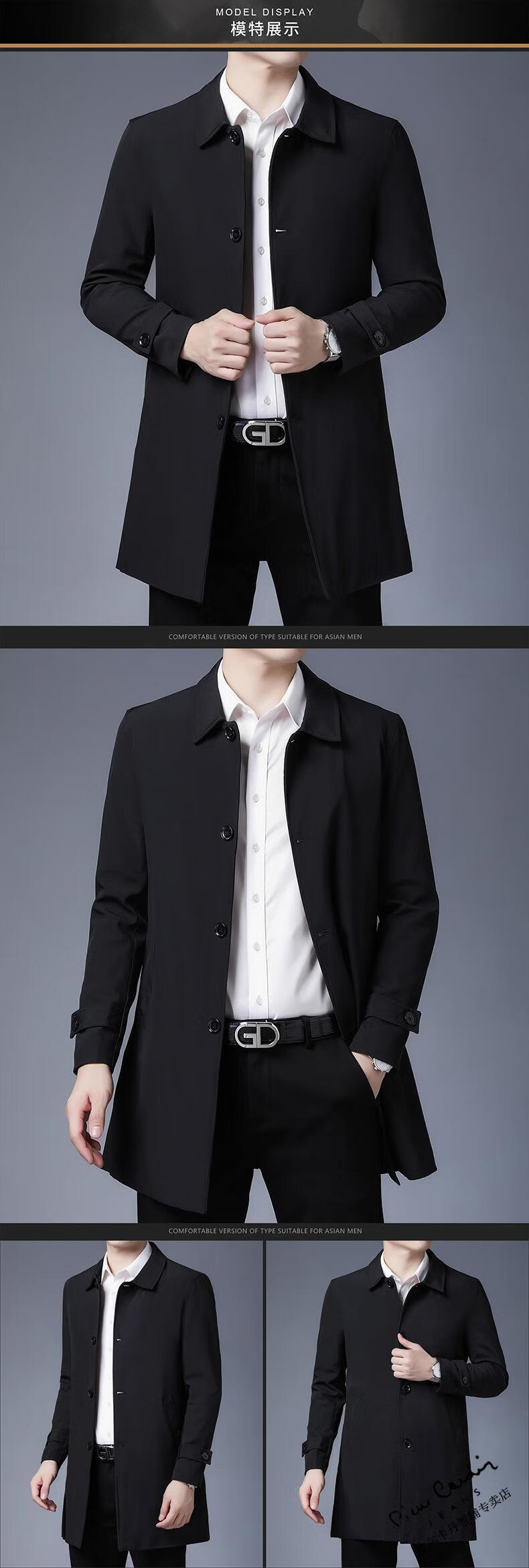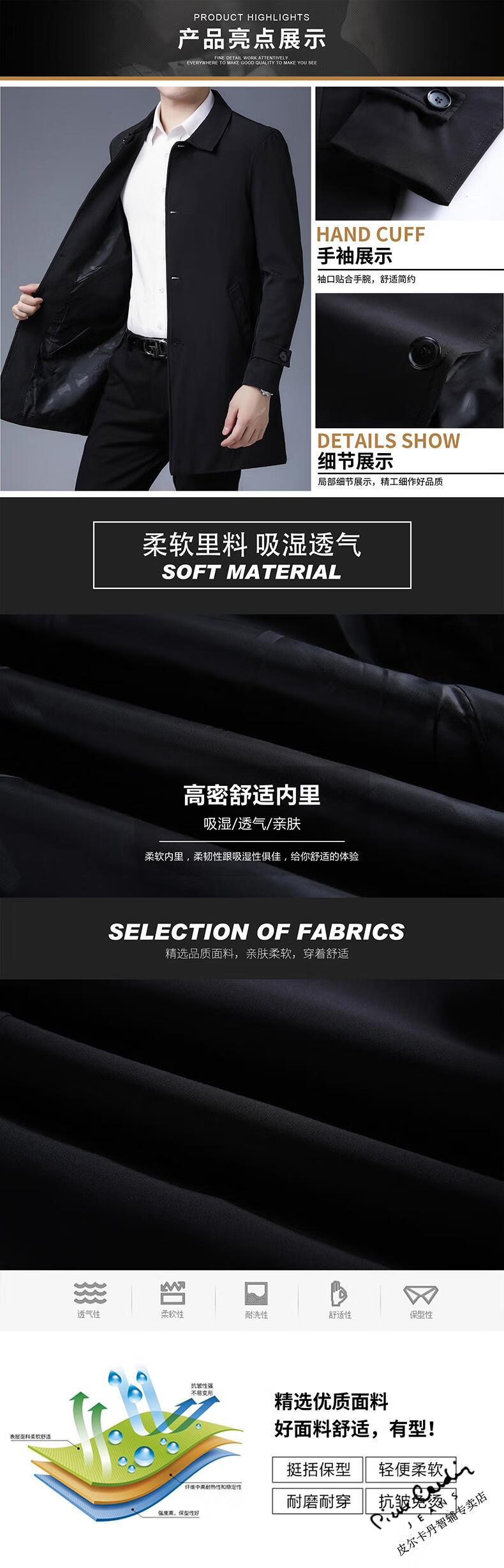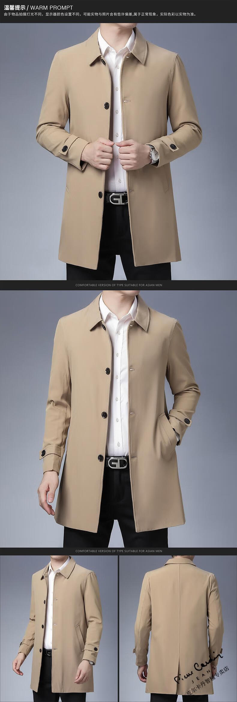 Pierre Cardin Business Windbreaker Men's 2026 Spring and Autumn Casual Men's Windbreaker Non-ironing Processed Mid-Length Fashion Coat Jacket Khaki XL