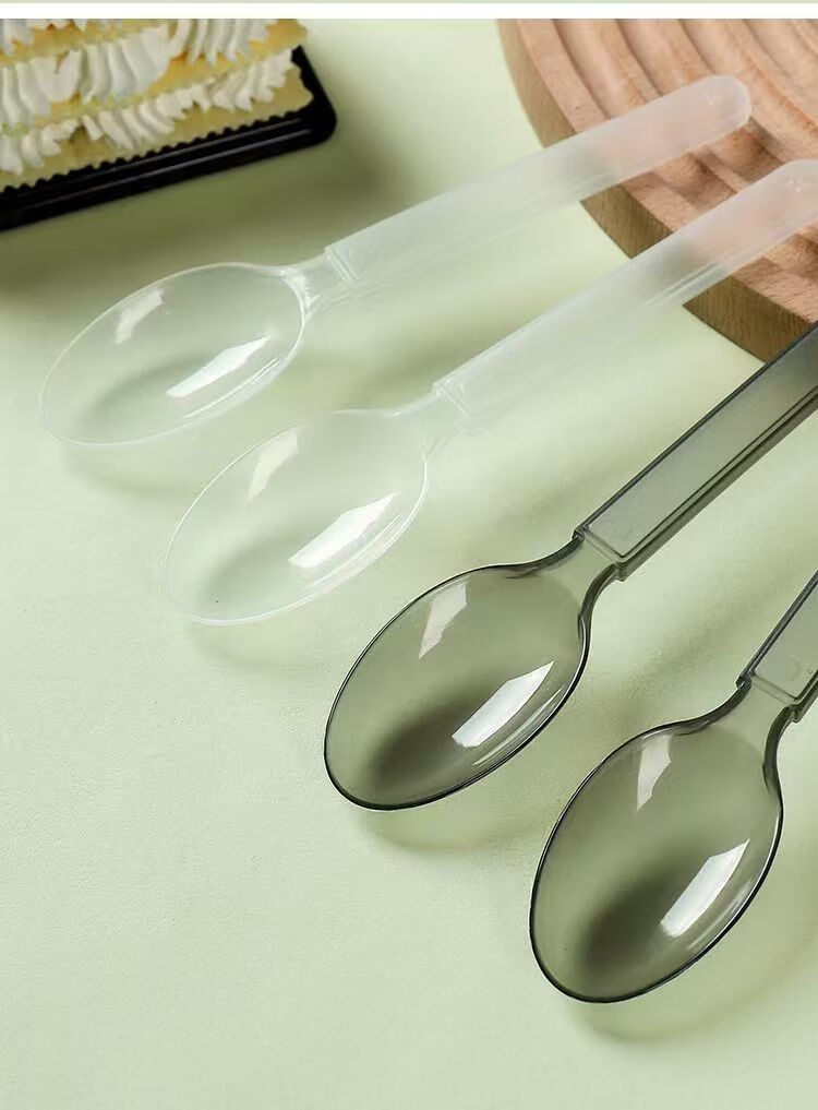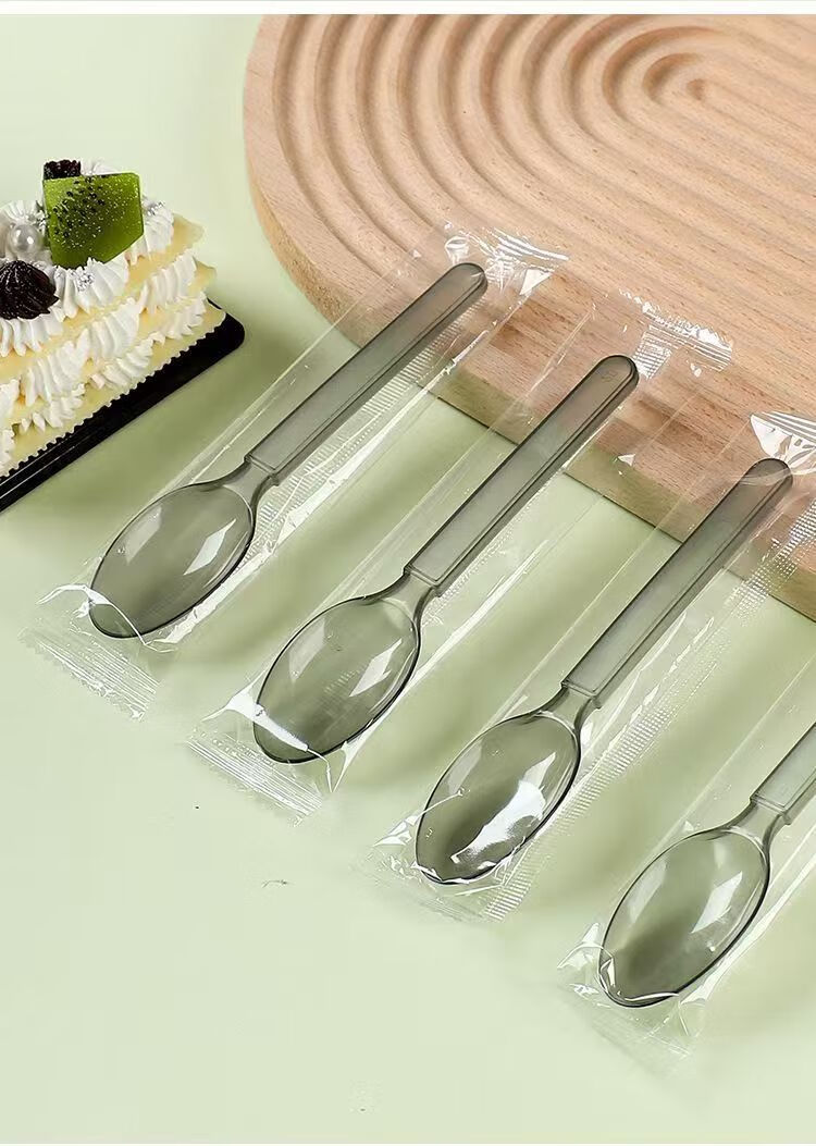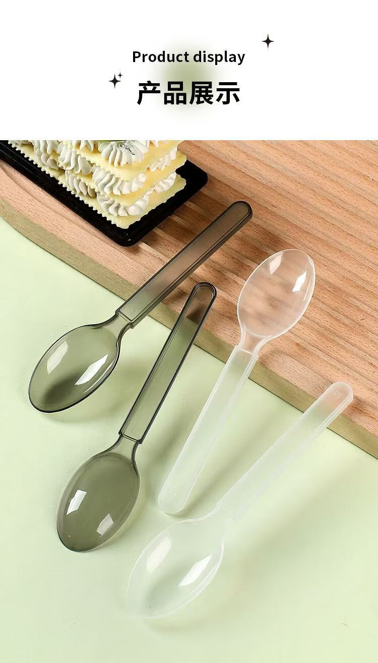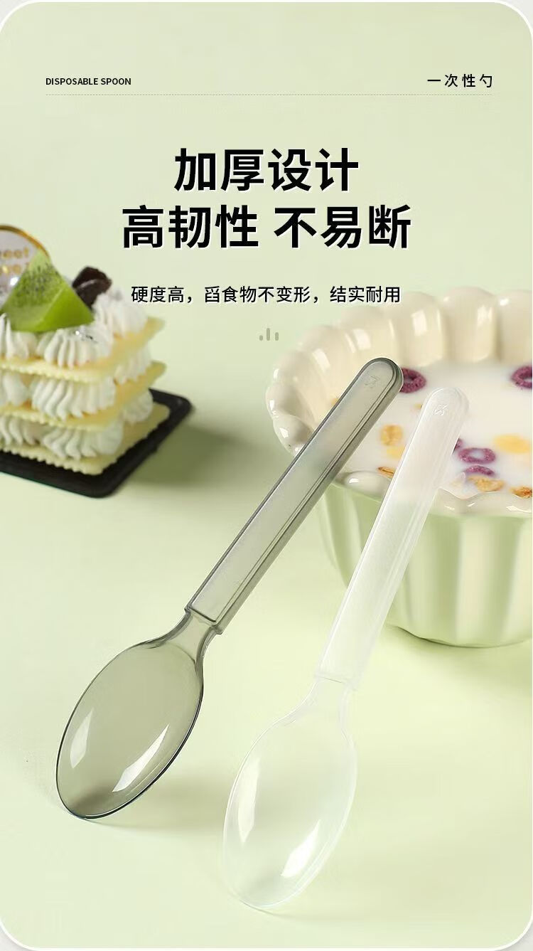 Disposable spoon plastic commercial fast food packaging American style independent packaging special thickened dessert tableware spoon transparent simple packaging continuous folding American style extra thick 50 pieces