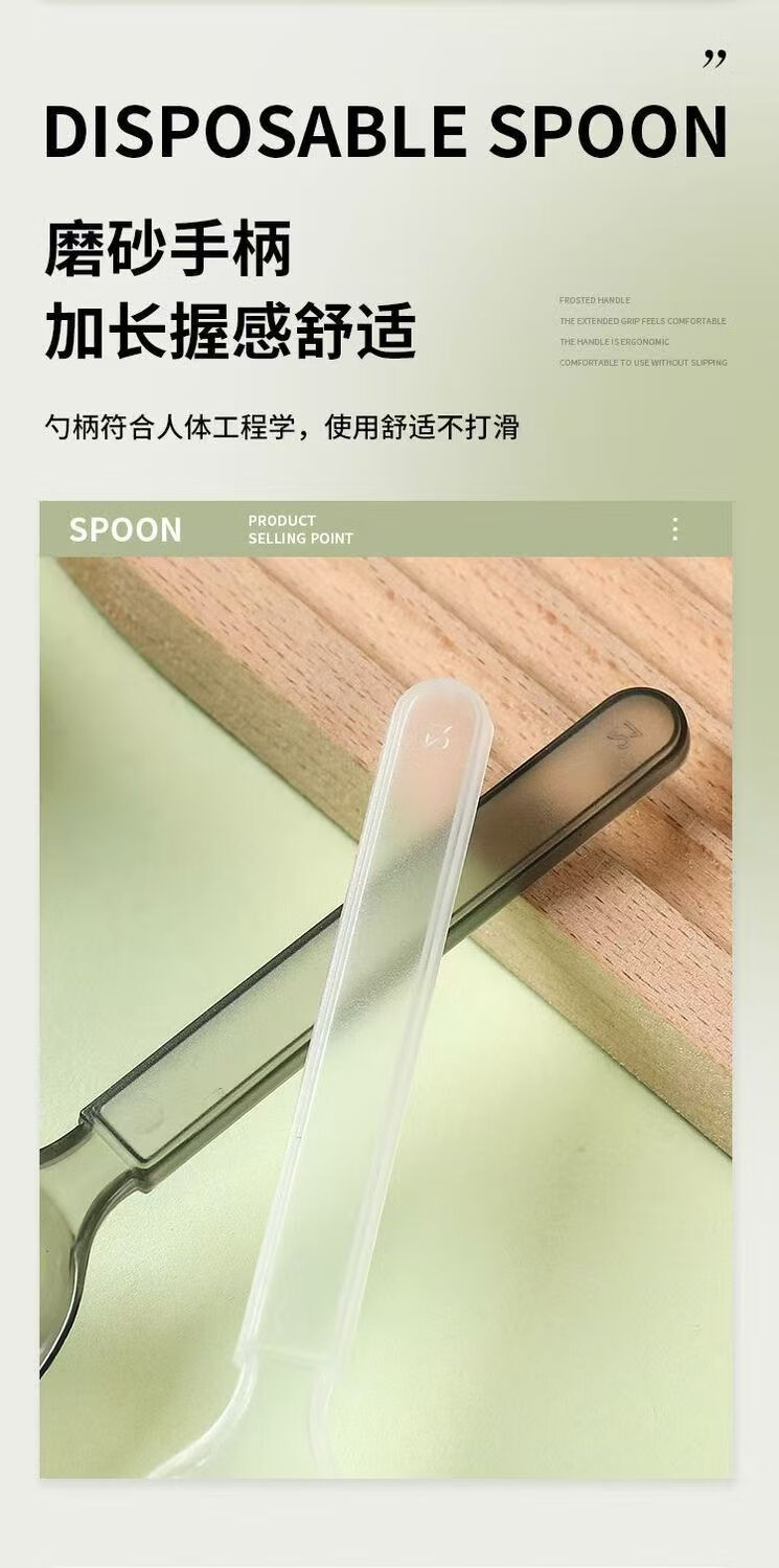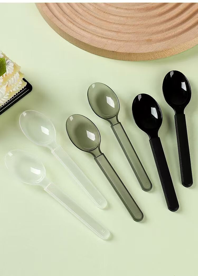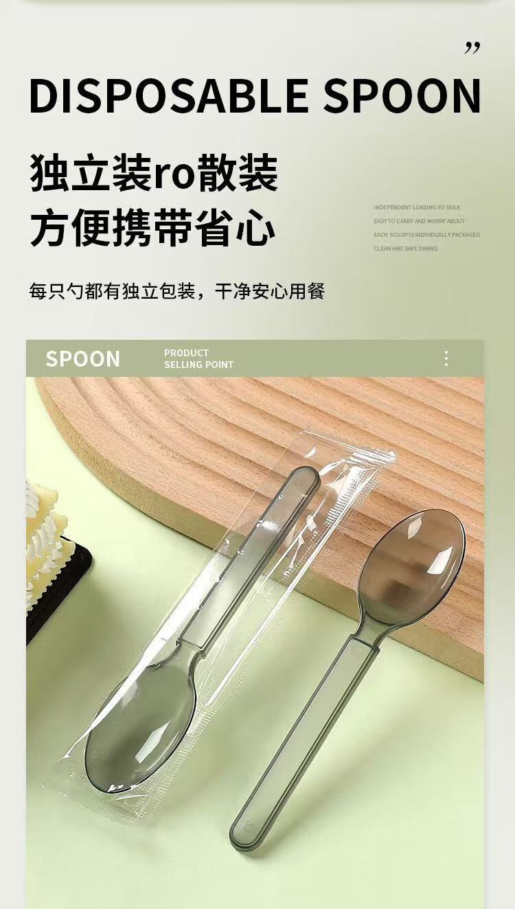 Disposable spoon plastic commercial fast food packaging American style independent packaging special thickened dessert tableware spoon transparent simple packaging continuous folding American style extra thick 50 pieces