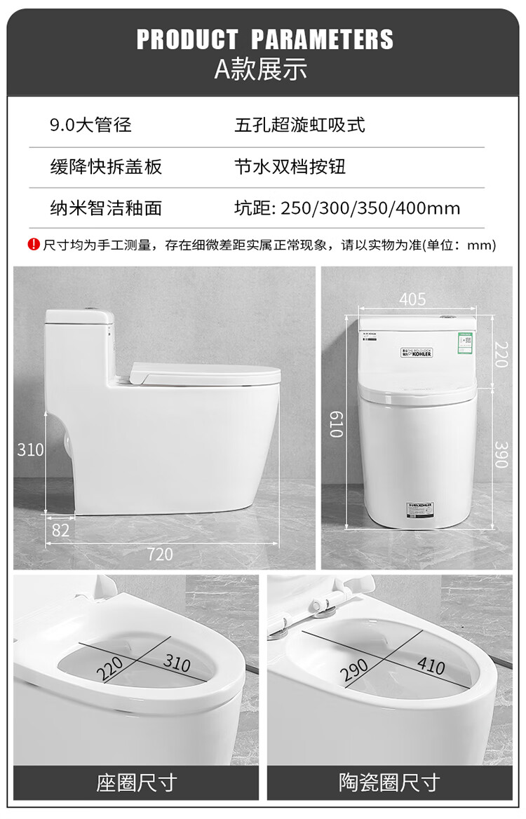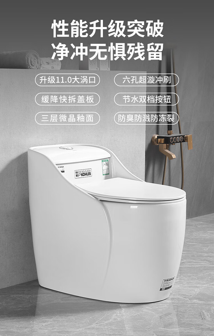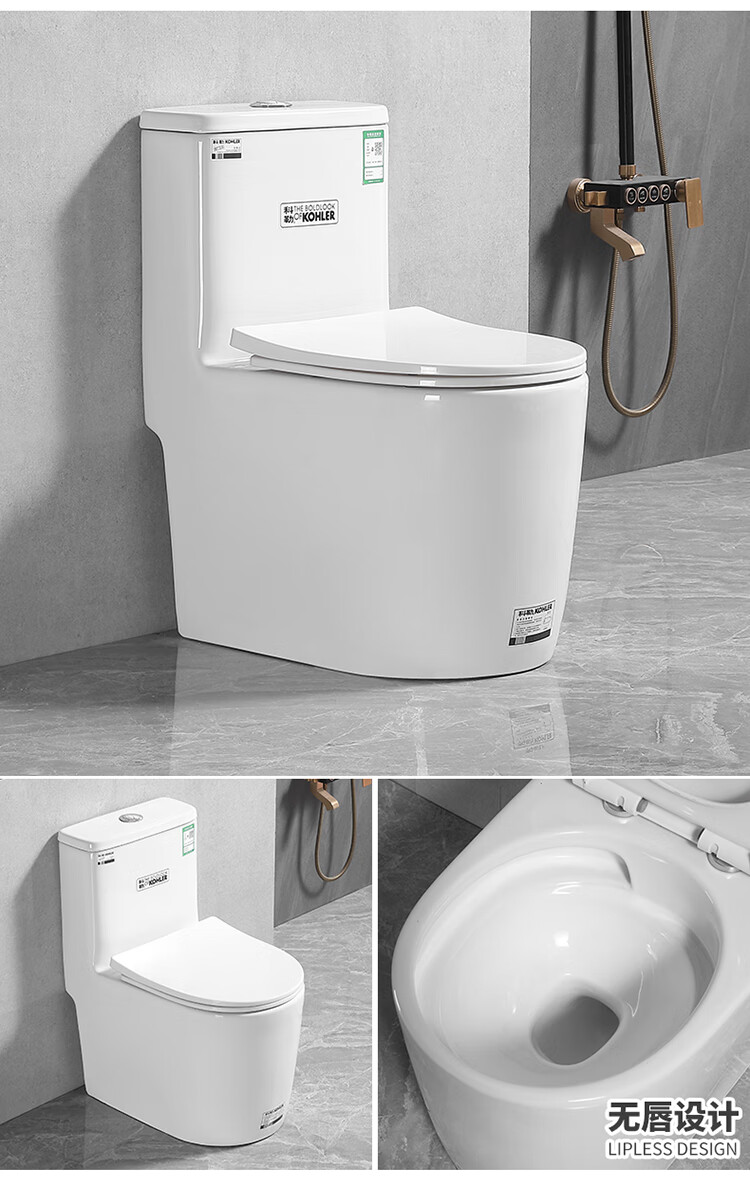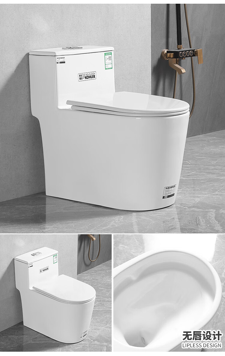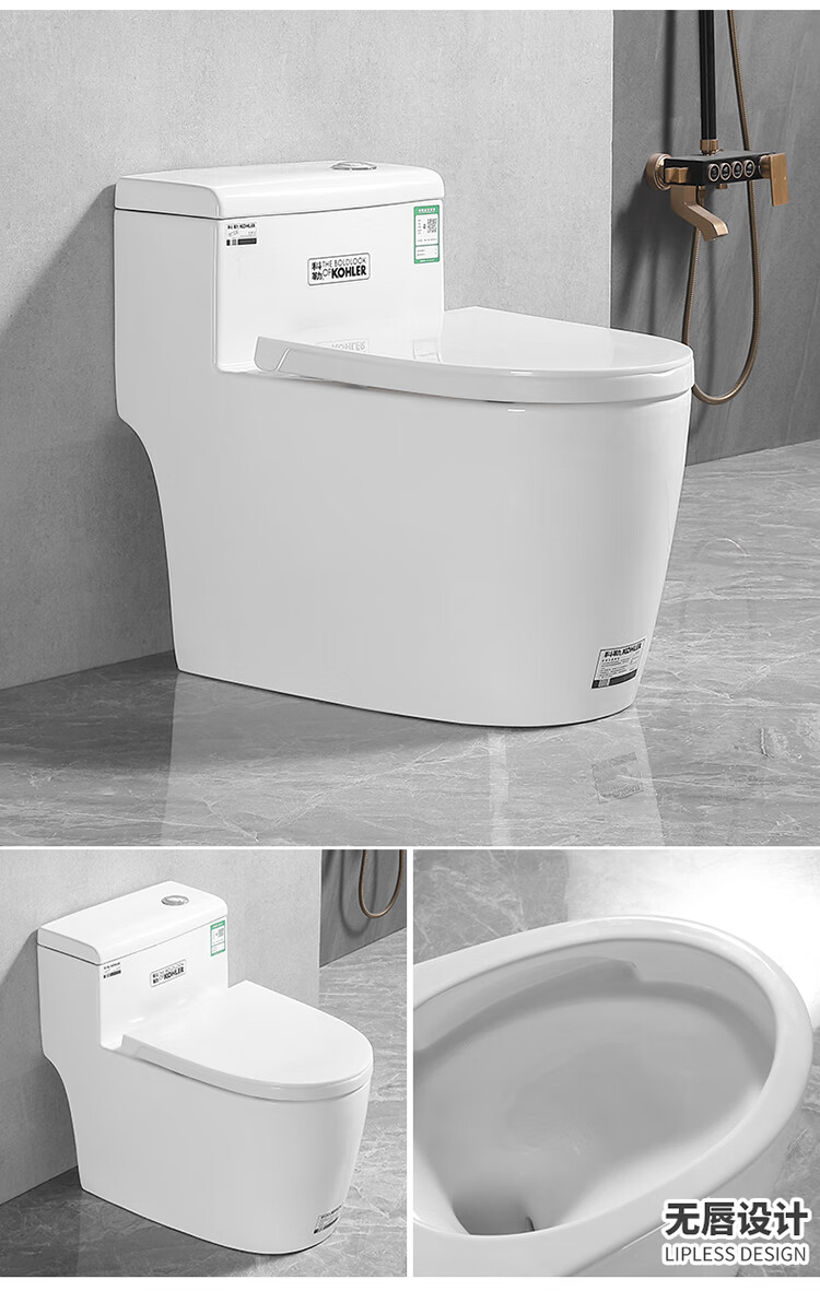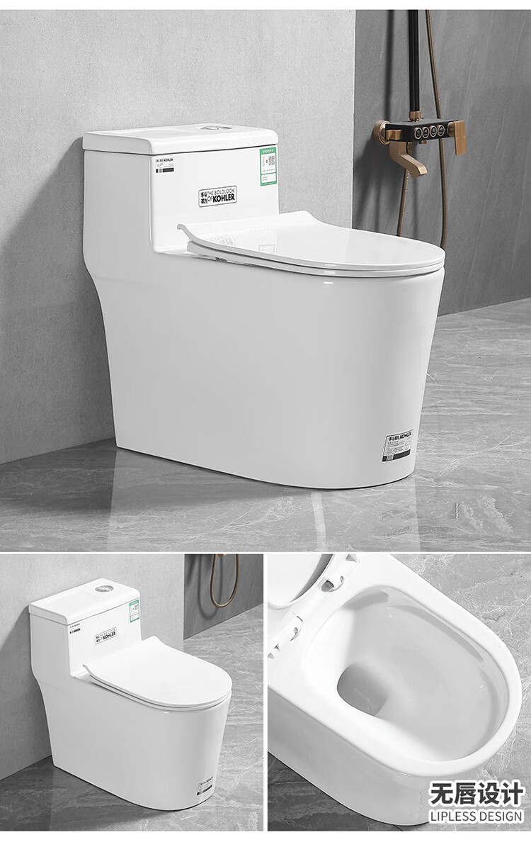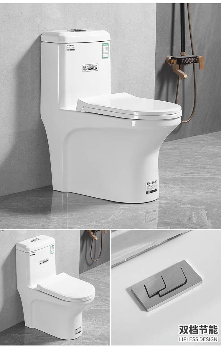 Kohler's 2025 new toilet household siphon-type large-impact large-caliber anti-clogging super-whirlpool siphon-type small-sized toilet supreme six-hole super-swivel (household package installation) 250mm