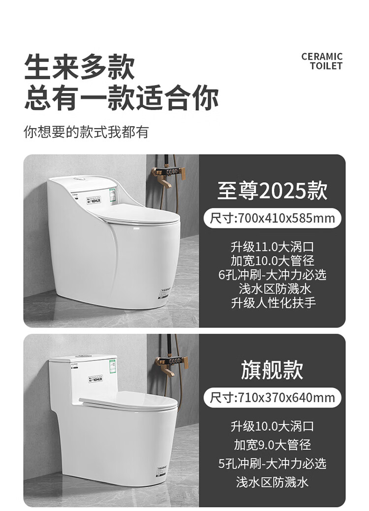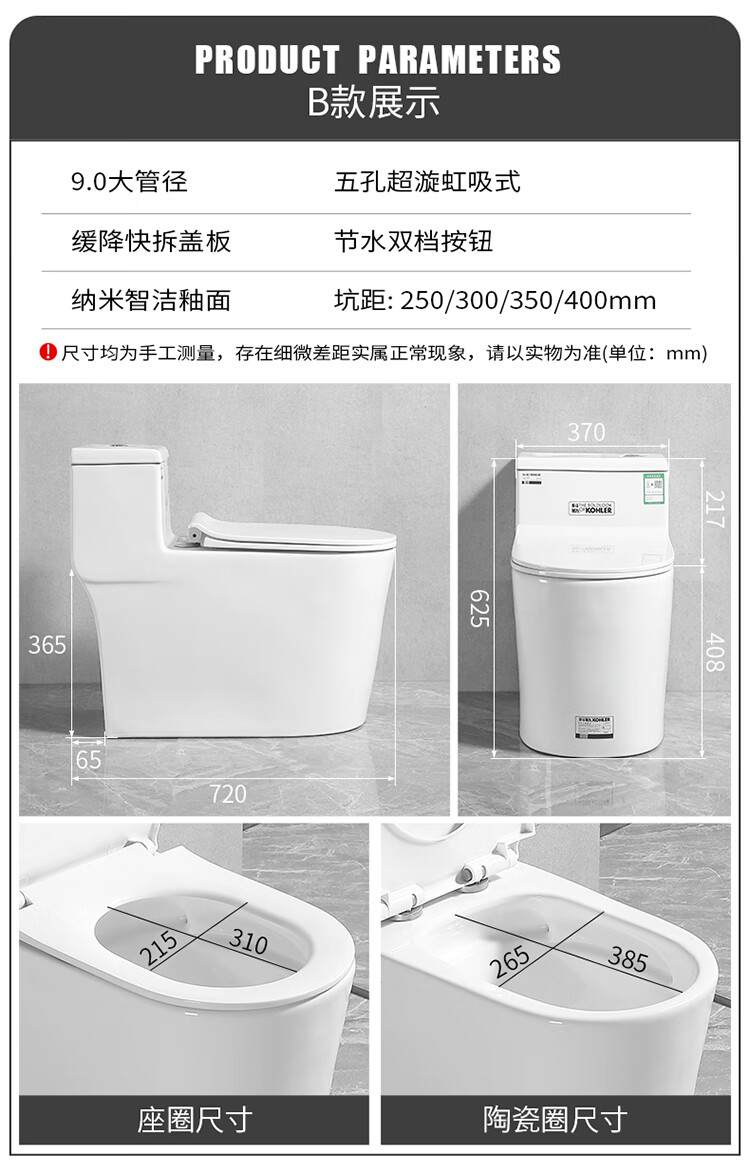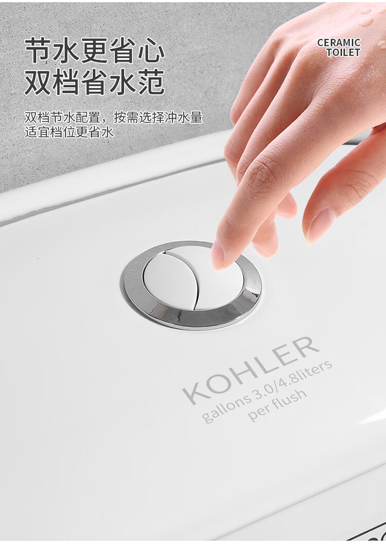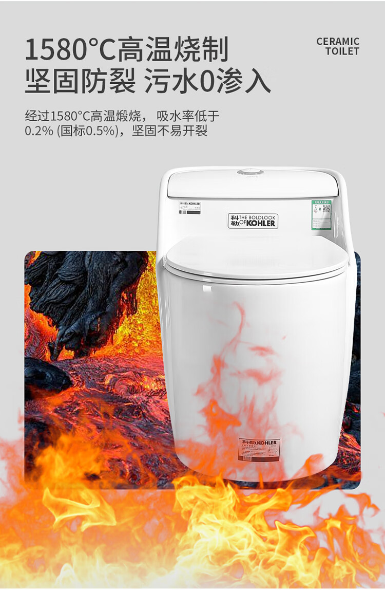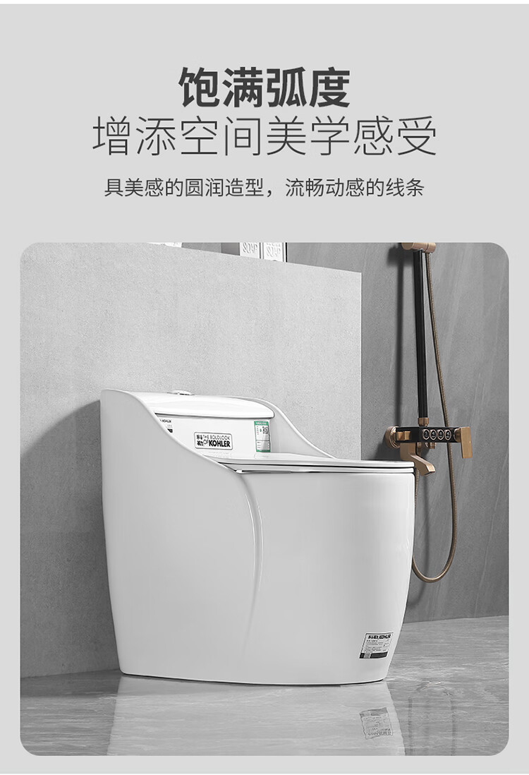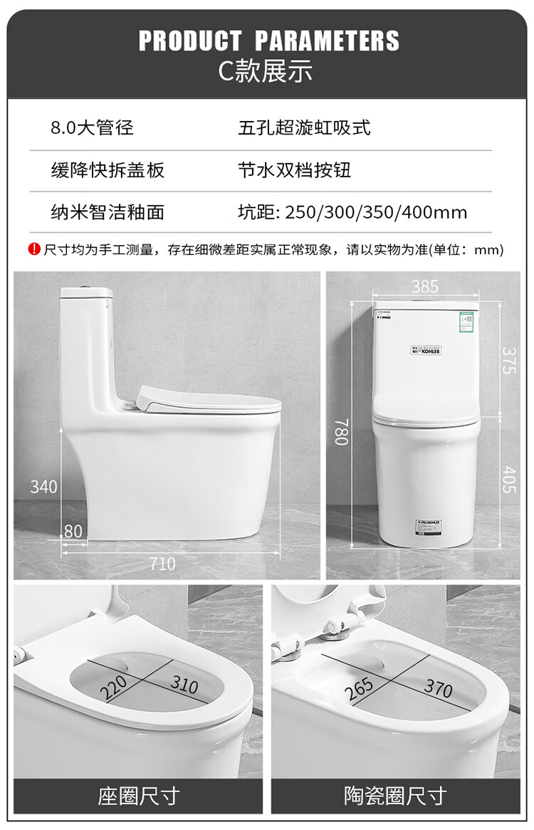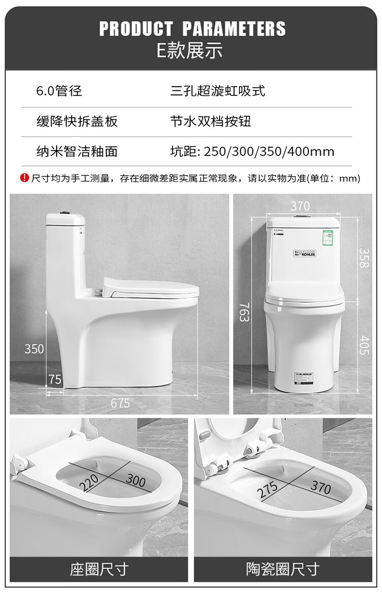 Kohler's 2025 new toilet household siphon-type large-impact large-caliber anti-clogging super-whirlpool siphon-type small-sized toilet supreme six-hole super-swivel (household package installation) 250mm