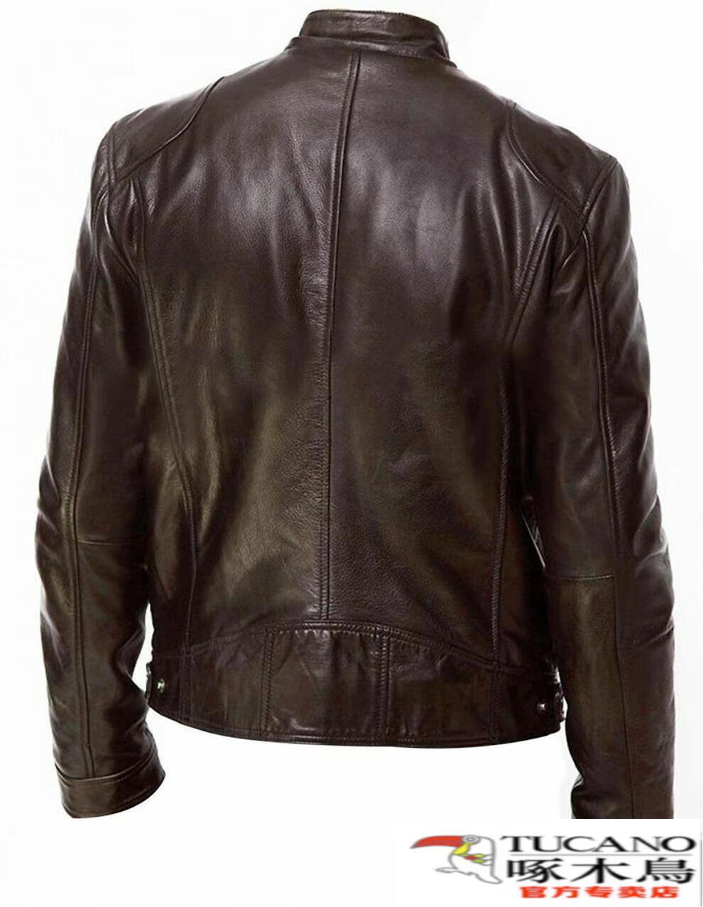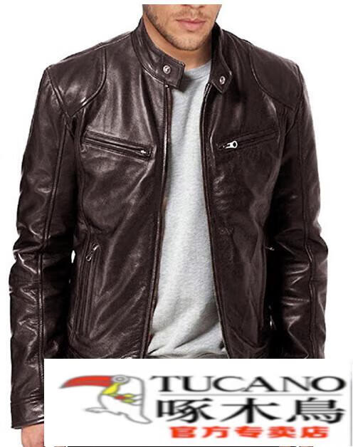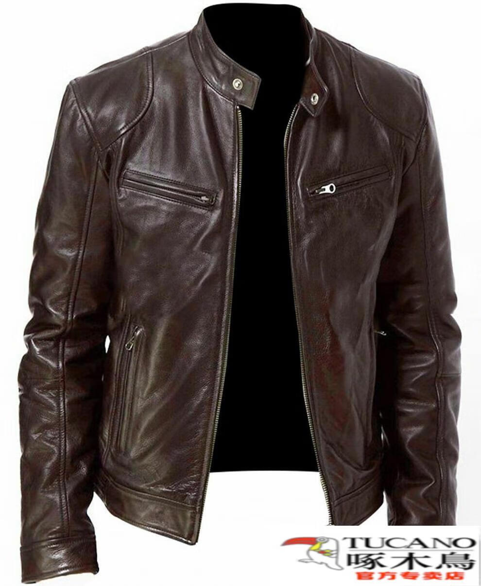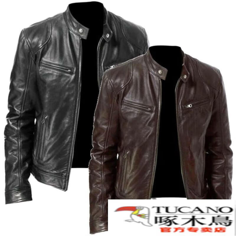Woodpecker (TUCANO) 2026 Men's Leather Jacket Men's Teen Stand Collar Punk Men's Motorcycle Leather Jacket Plus Brown M