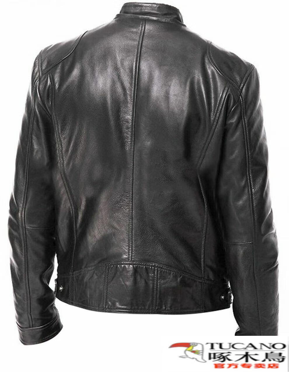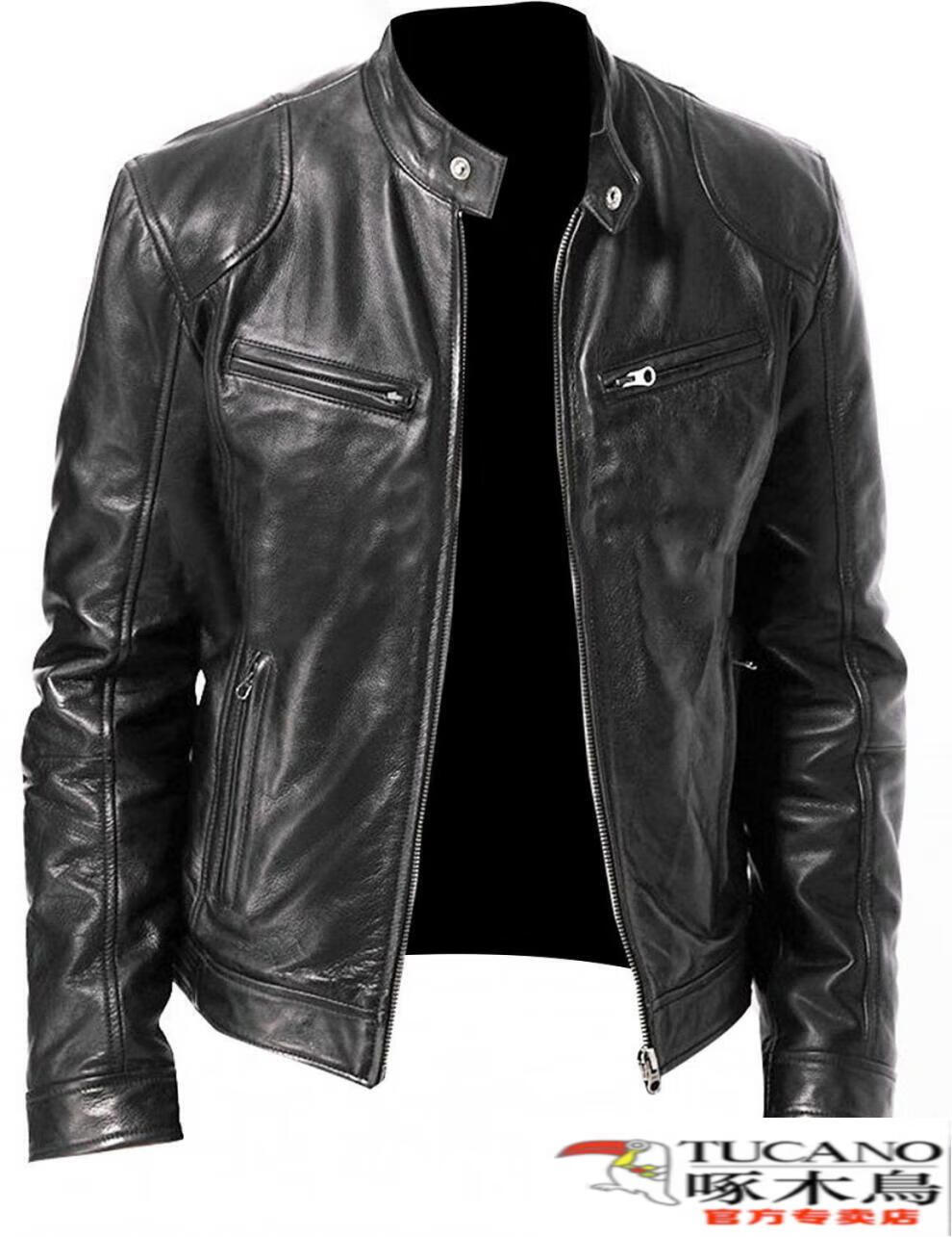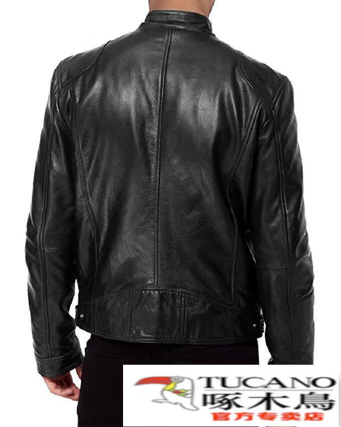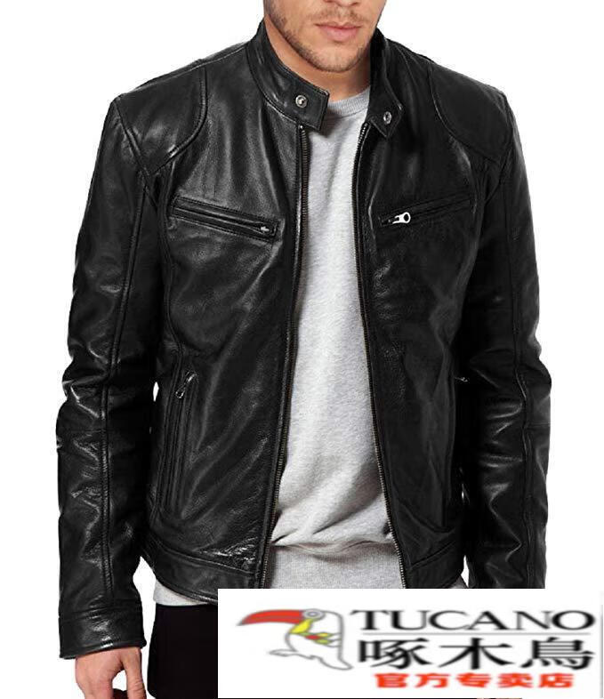 Woodpecker (TUCANO) 2026 Men's Leather Jacket Men's Teen Stand Collar Punk Men's Motorcycle Leather Jacket Plus Brown M