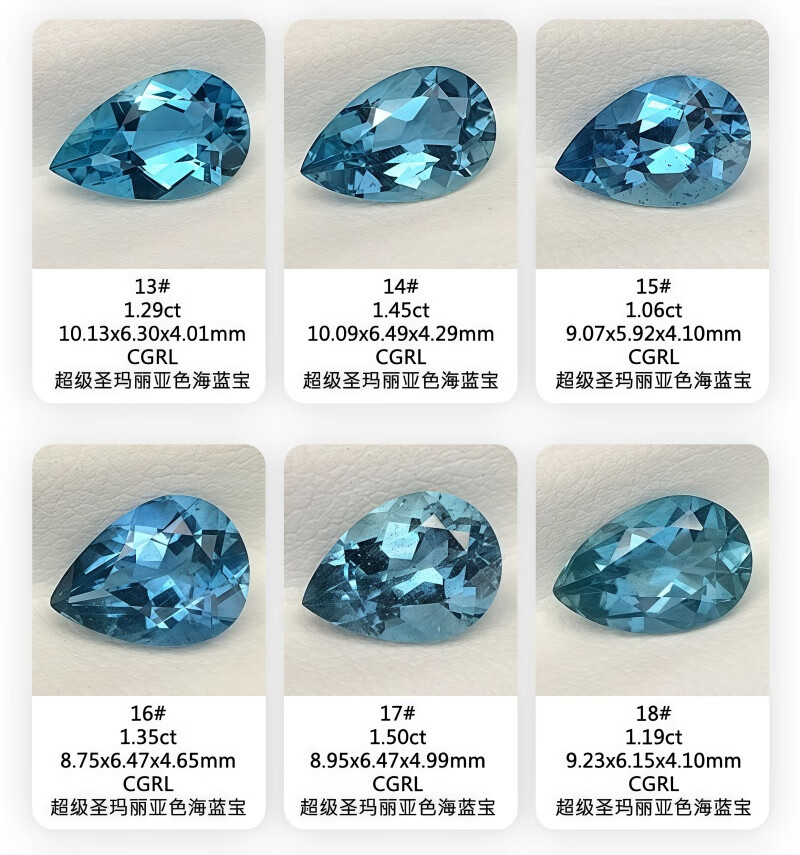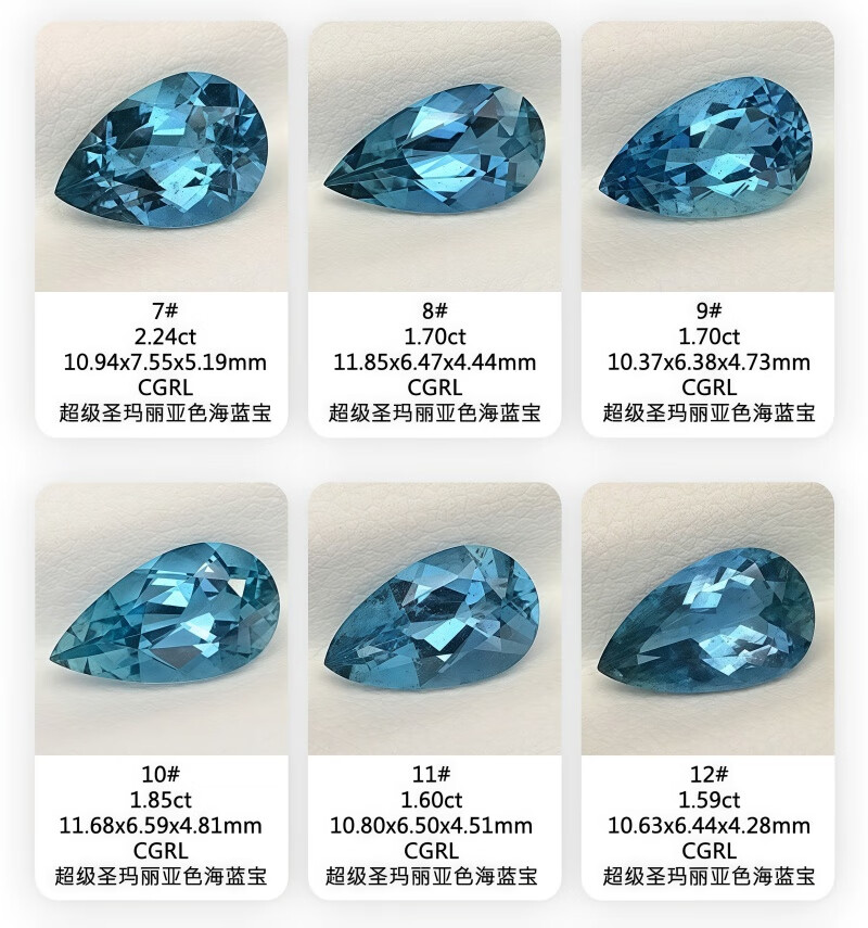 Blue and peaceful 12 super Santa Maria aquamarine loose stone ring facet drop-shaped 18k gold men and women ring pendant earrings 2.24 carats 7#