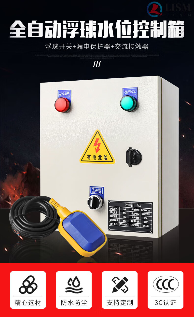 Fully automatic water tower water level pump control box 380V intelligent drainage float switch control box 220V single-phase 220V within 2.5KW (free 3-meter float version)